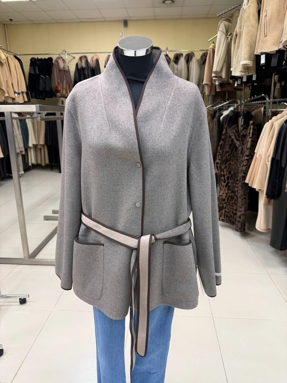 Товар серо-коричневое полупальто кашемировое женское 1131-70, размер 46, артикул 92600.