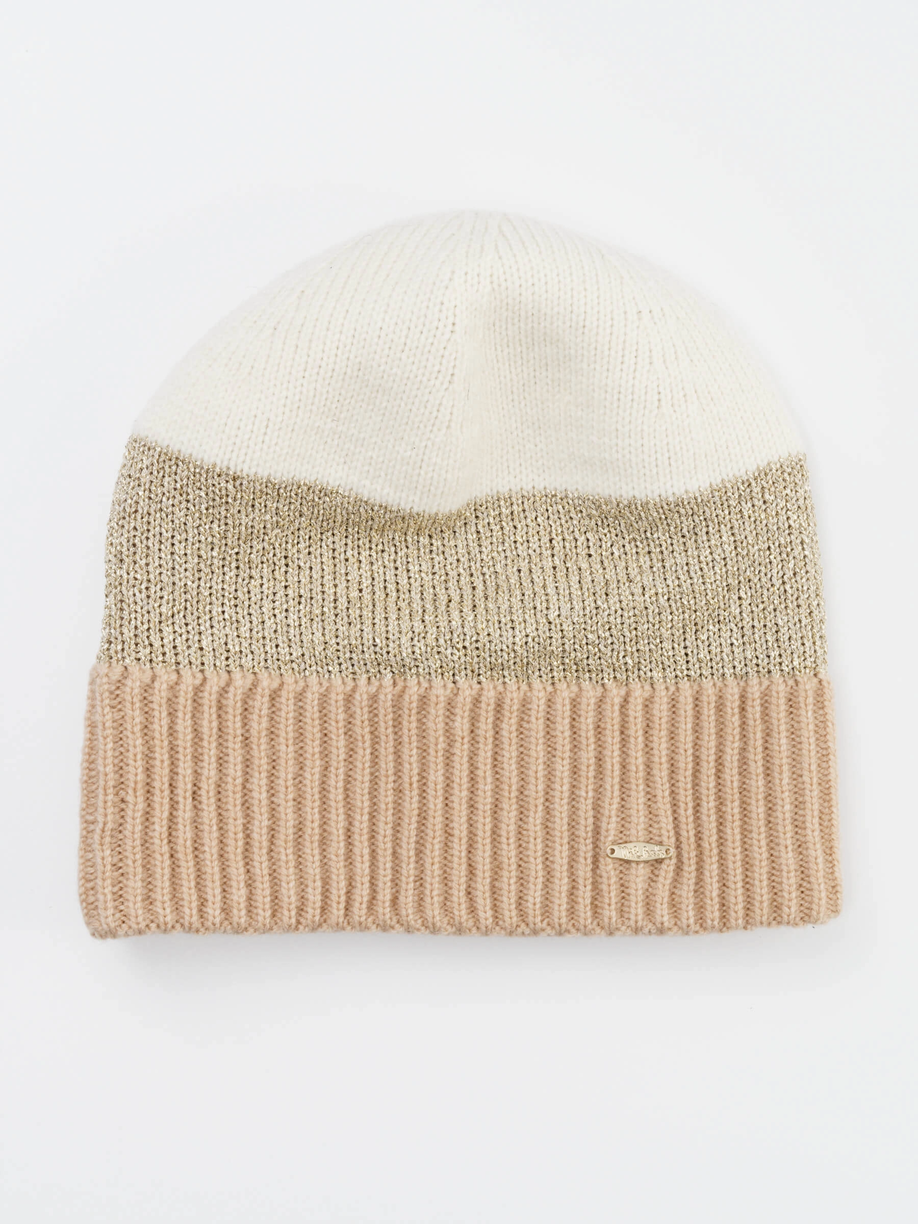 Классическая, свободная шапка выполнена из итальянской полушерстяной пряжи с добавлением люрекса.