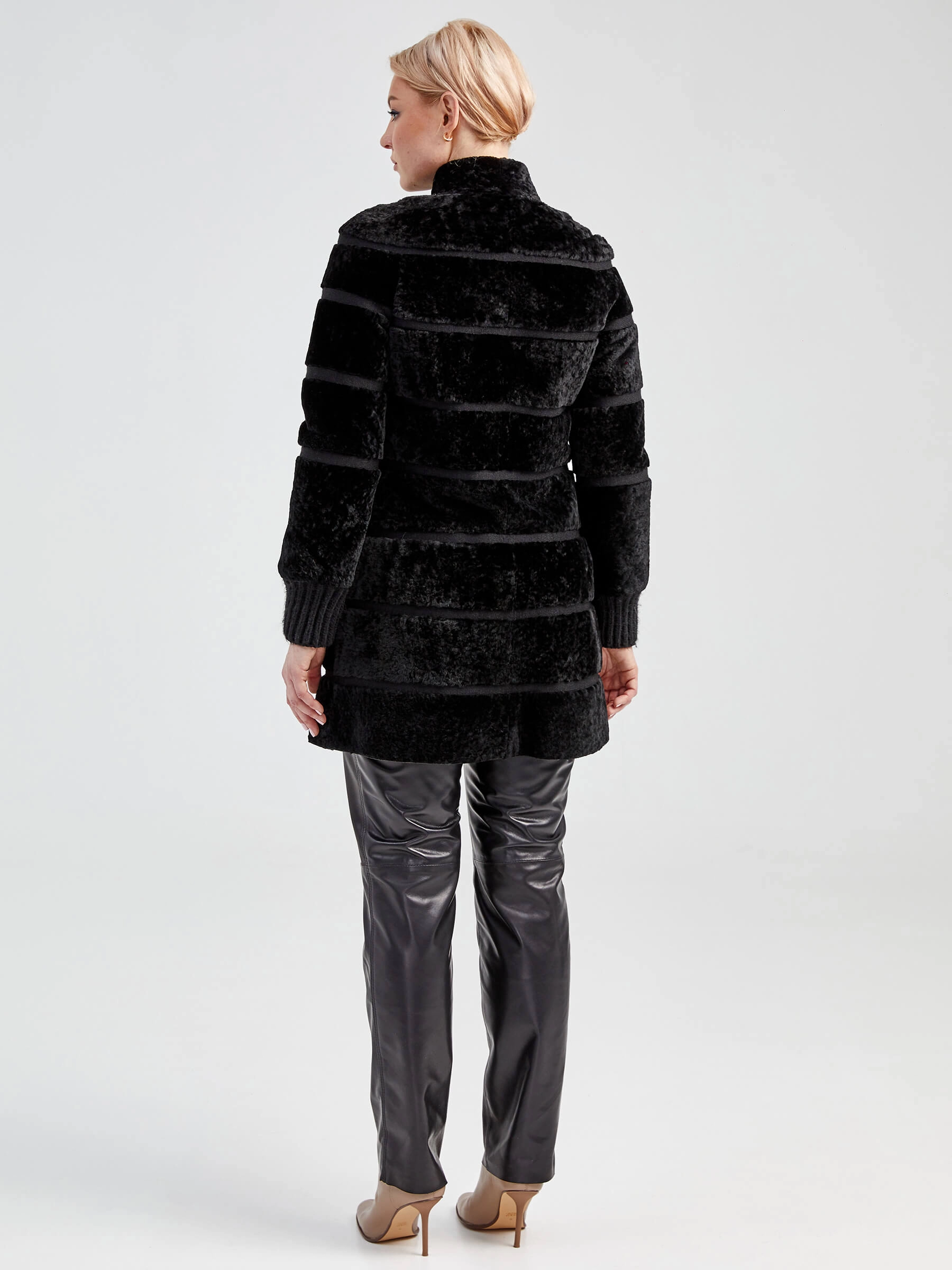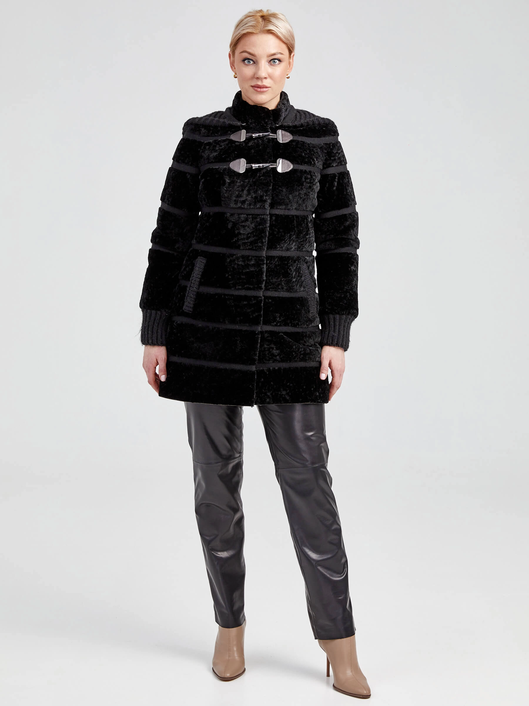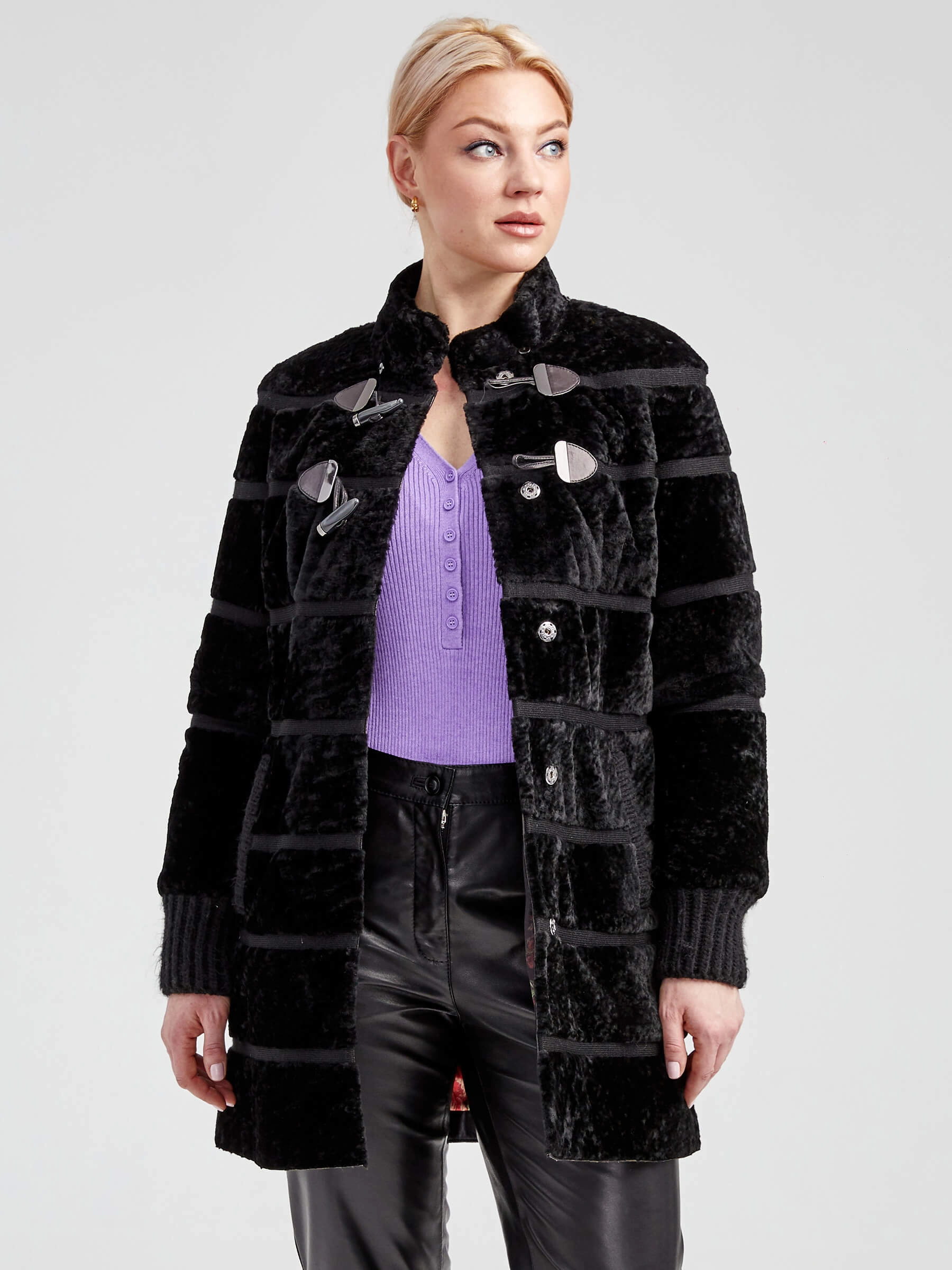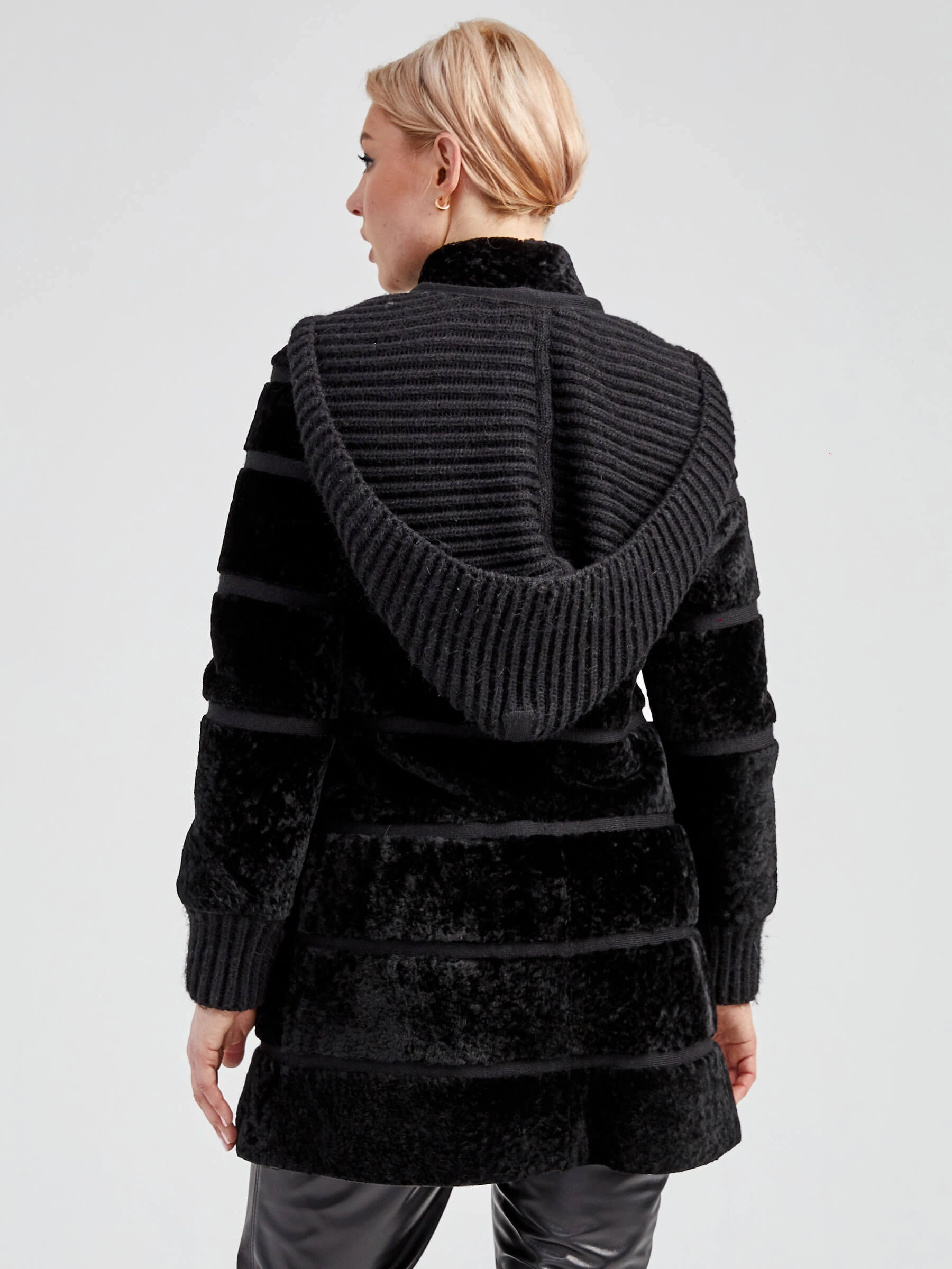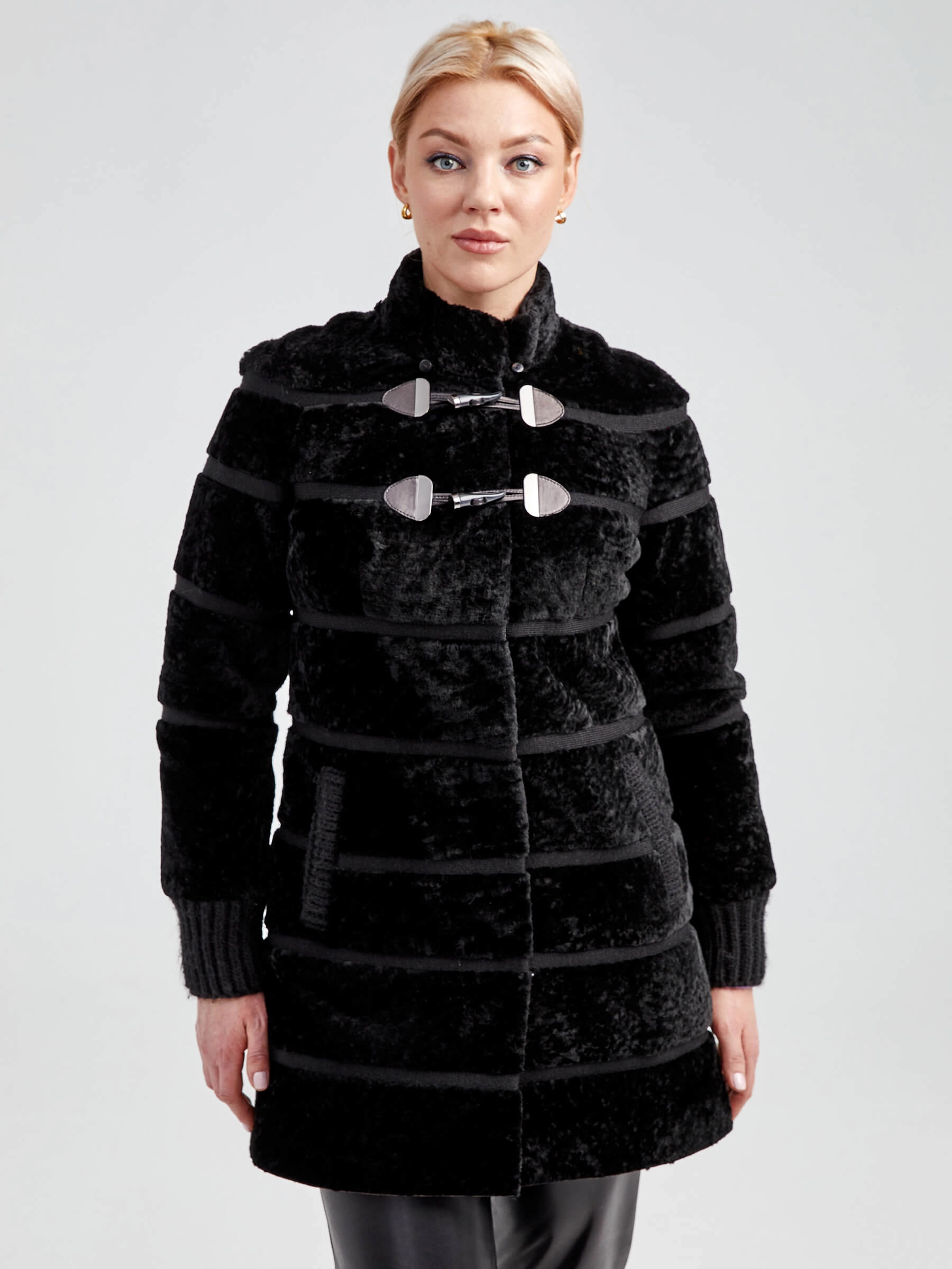 Шуба из астрагана поперечная с капюшоном женская 20мех, черная, размер 42, артикул 13660