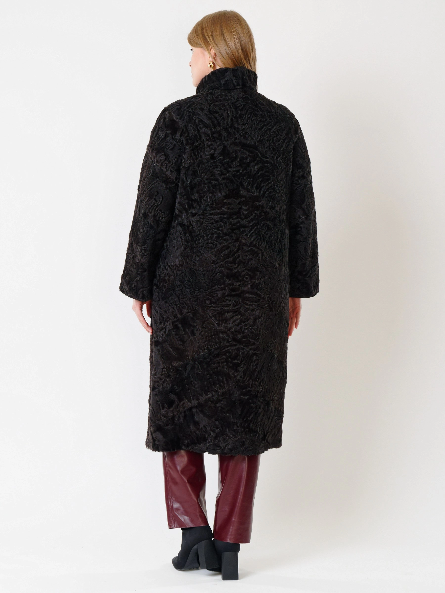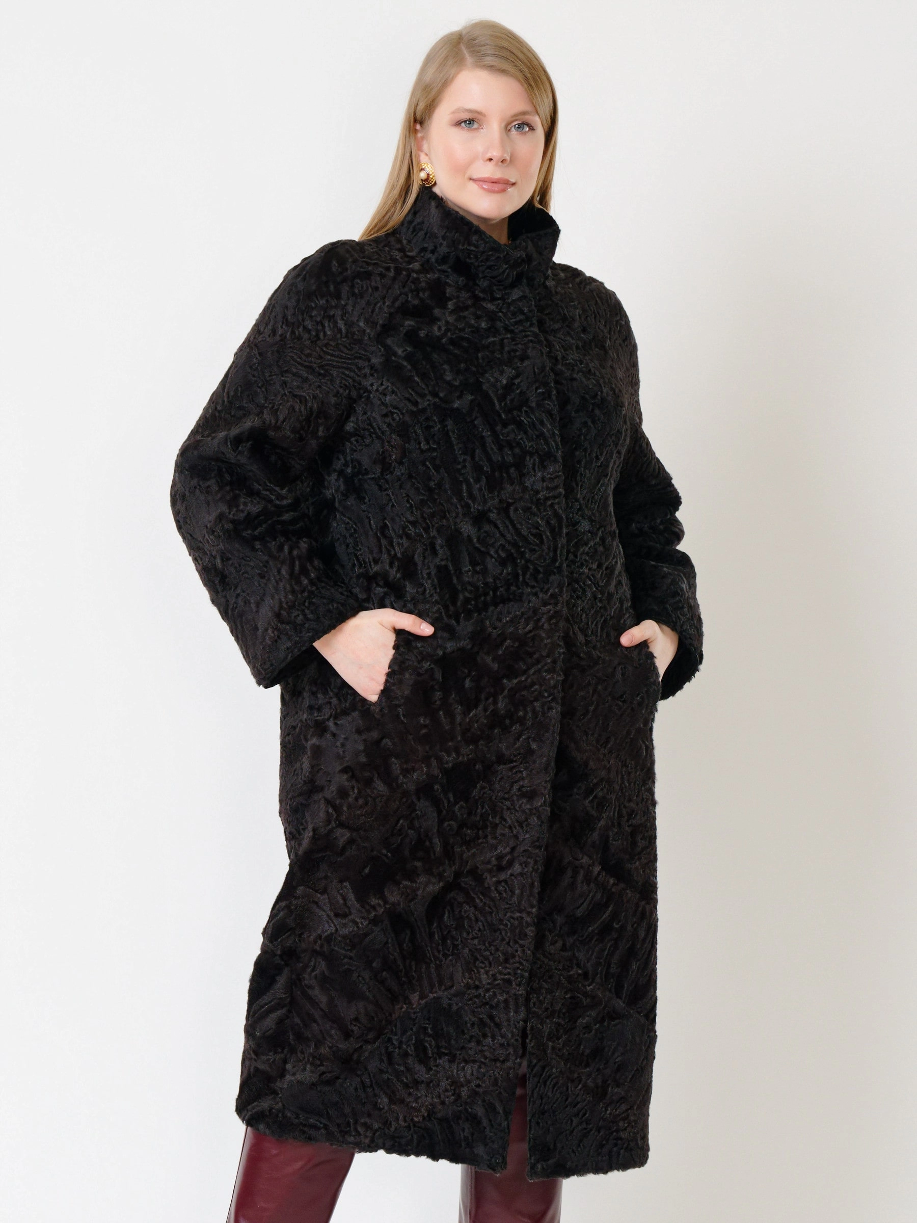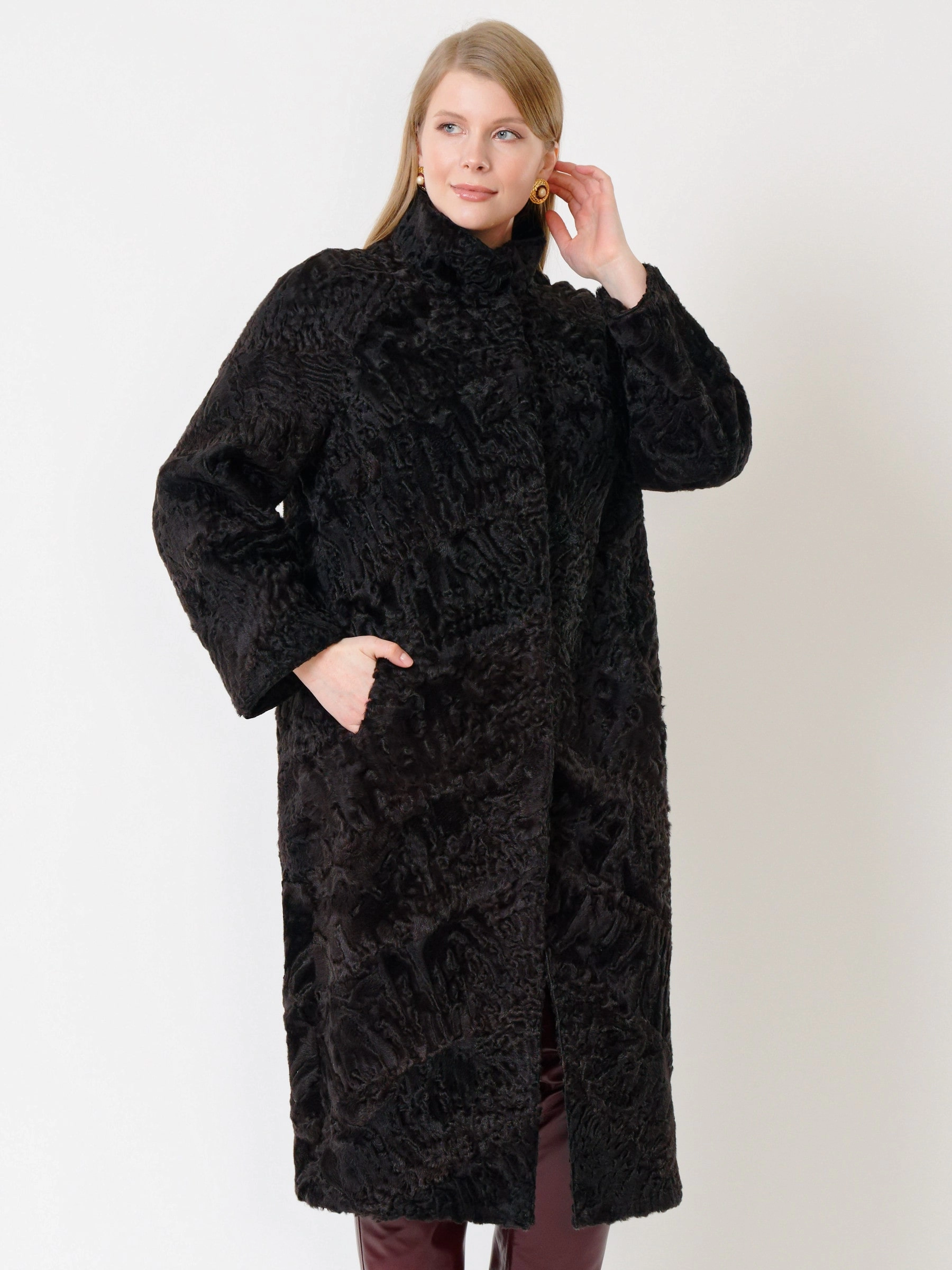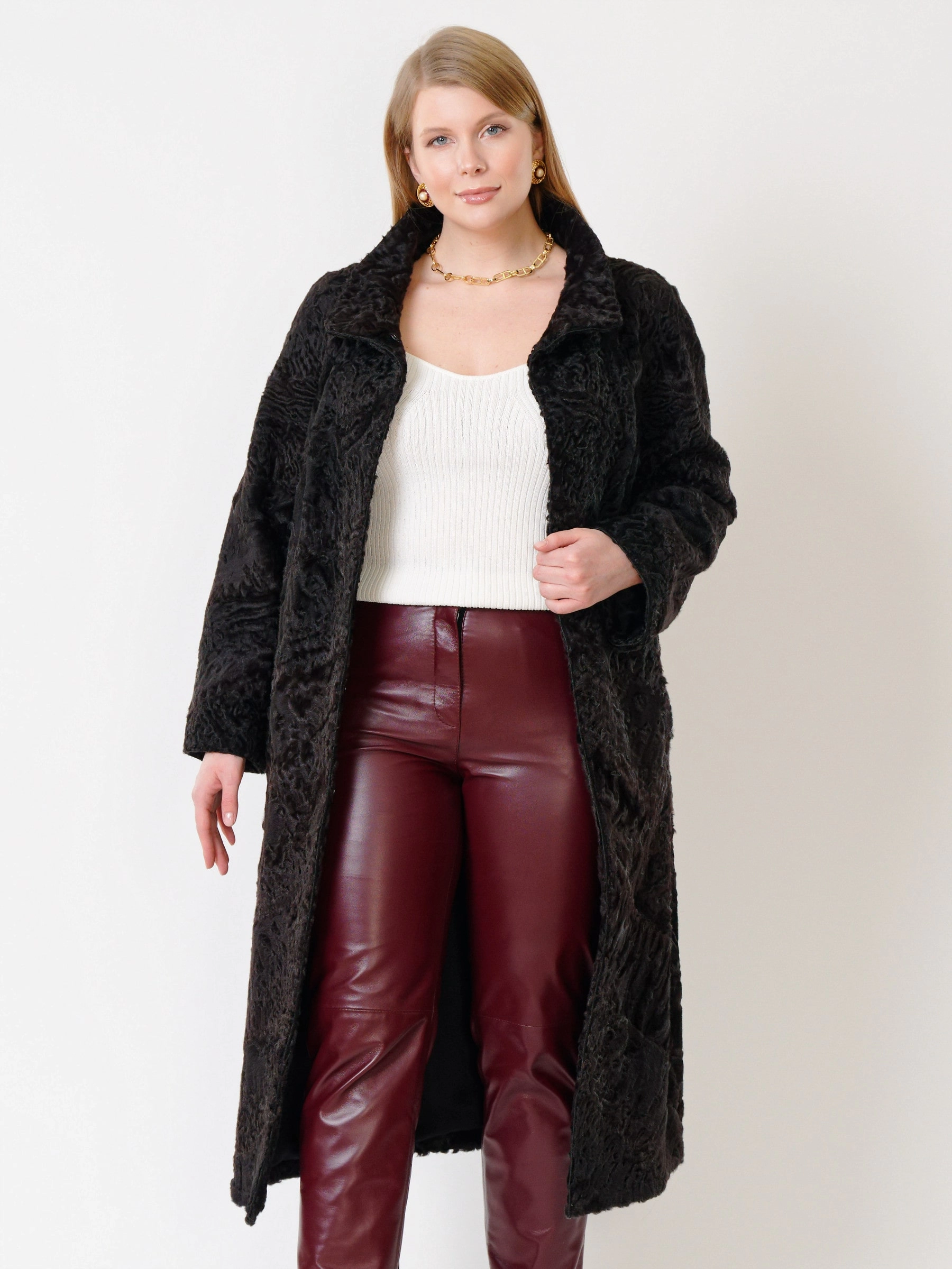 Длинная шуба из меха каракуля женская 17101, коричневая, размер 44, артикул 22700
