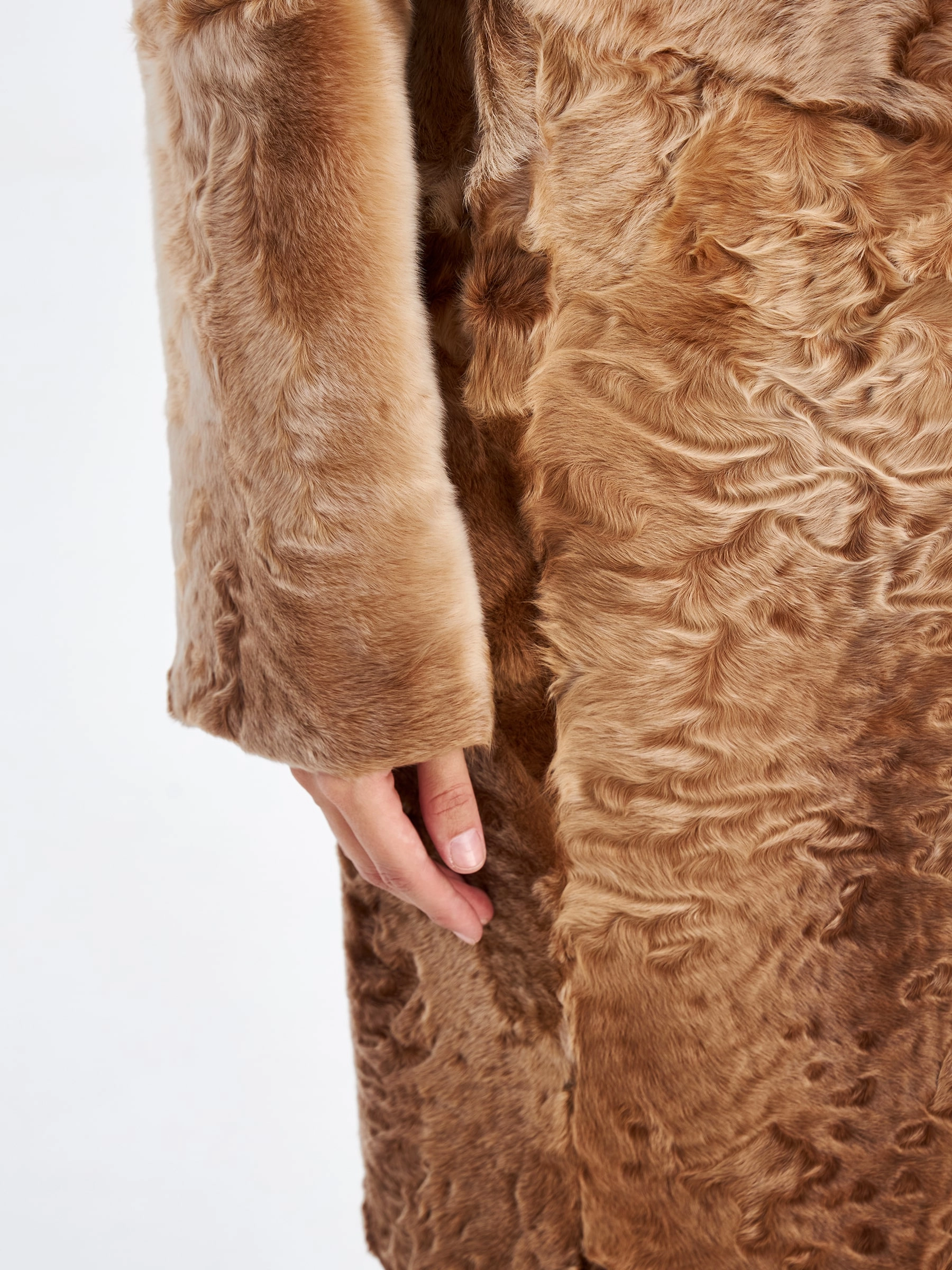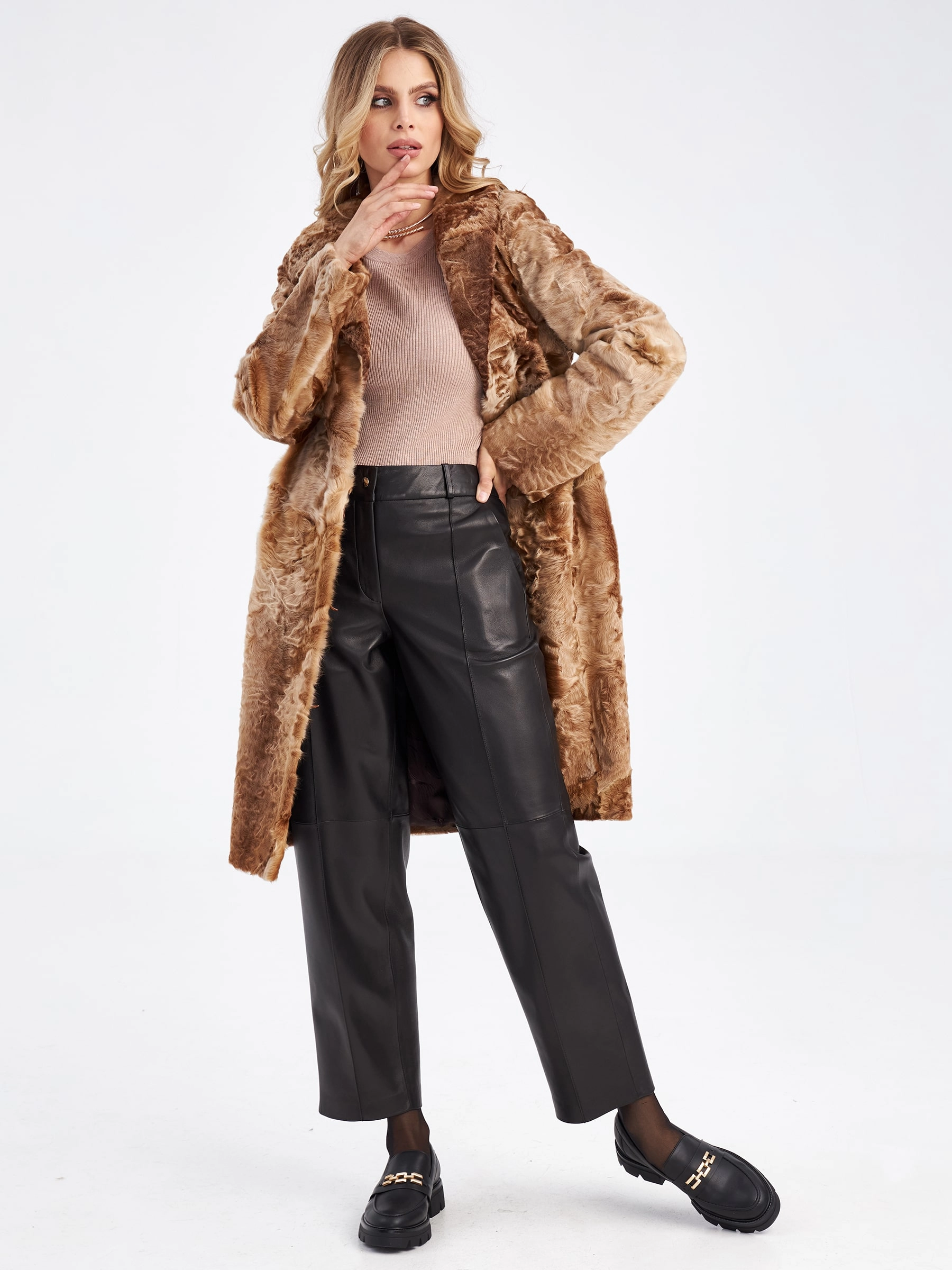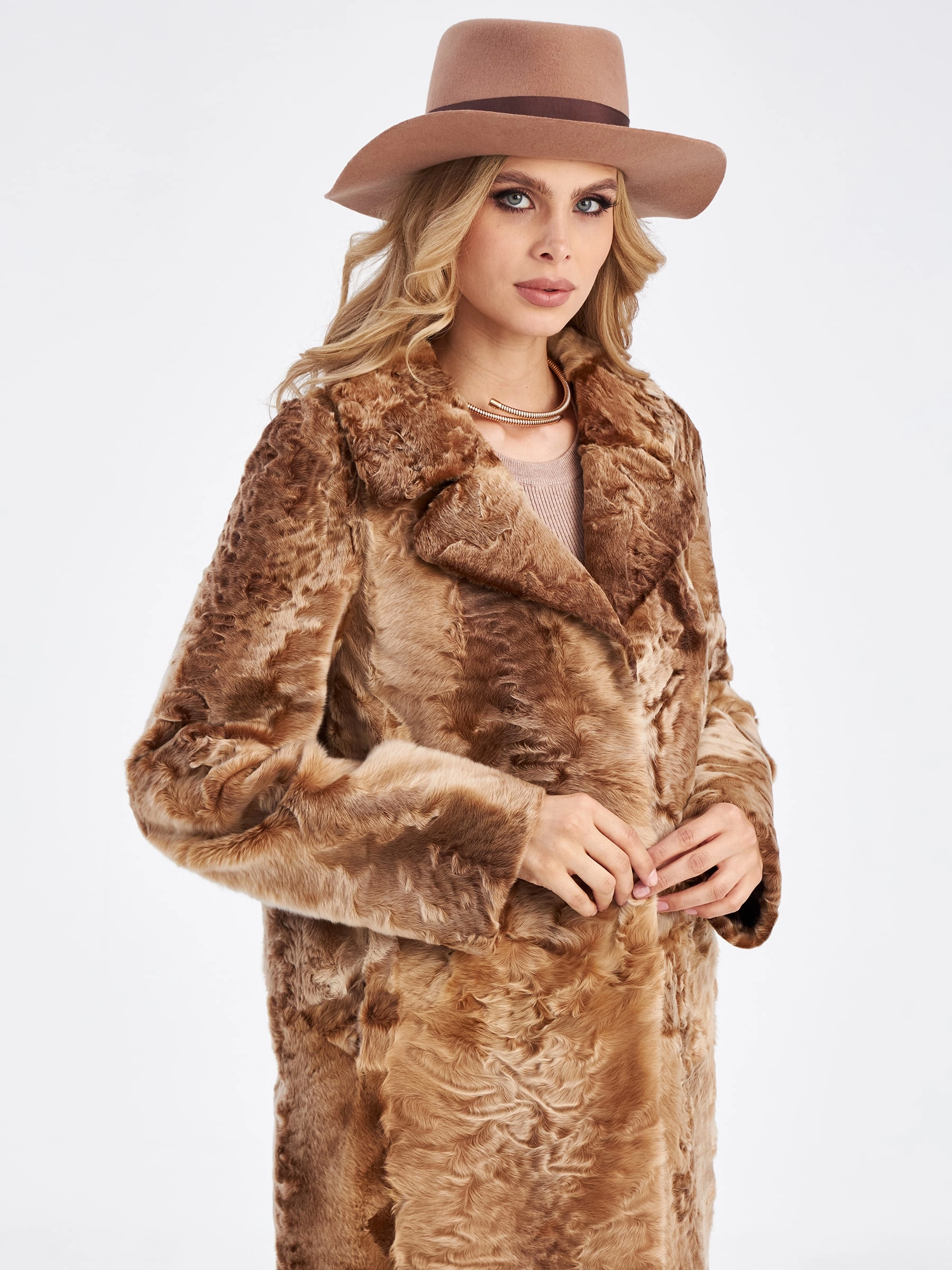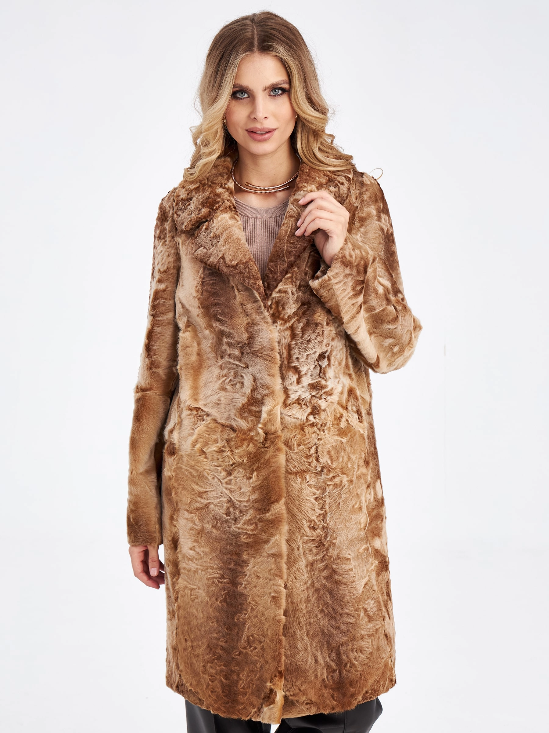 Товар шуба из меха каракуля для женщин лола, золотая, размер 46, артикул 33780 выполнен из каракульча с застежкой клипсы. Рассчитан на сезон: осень-зима. Длина изделия 113 см, силуэт прямой.