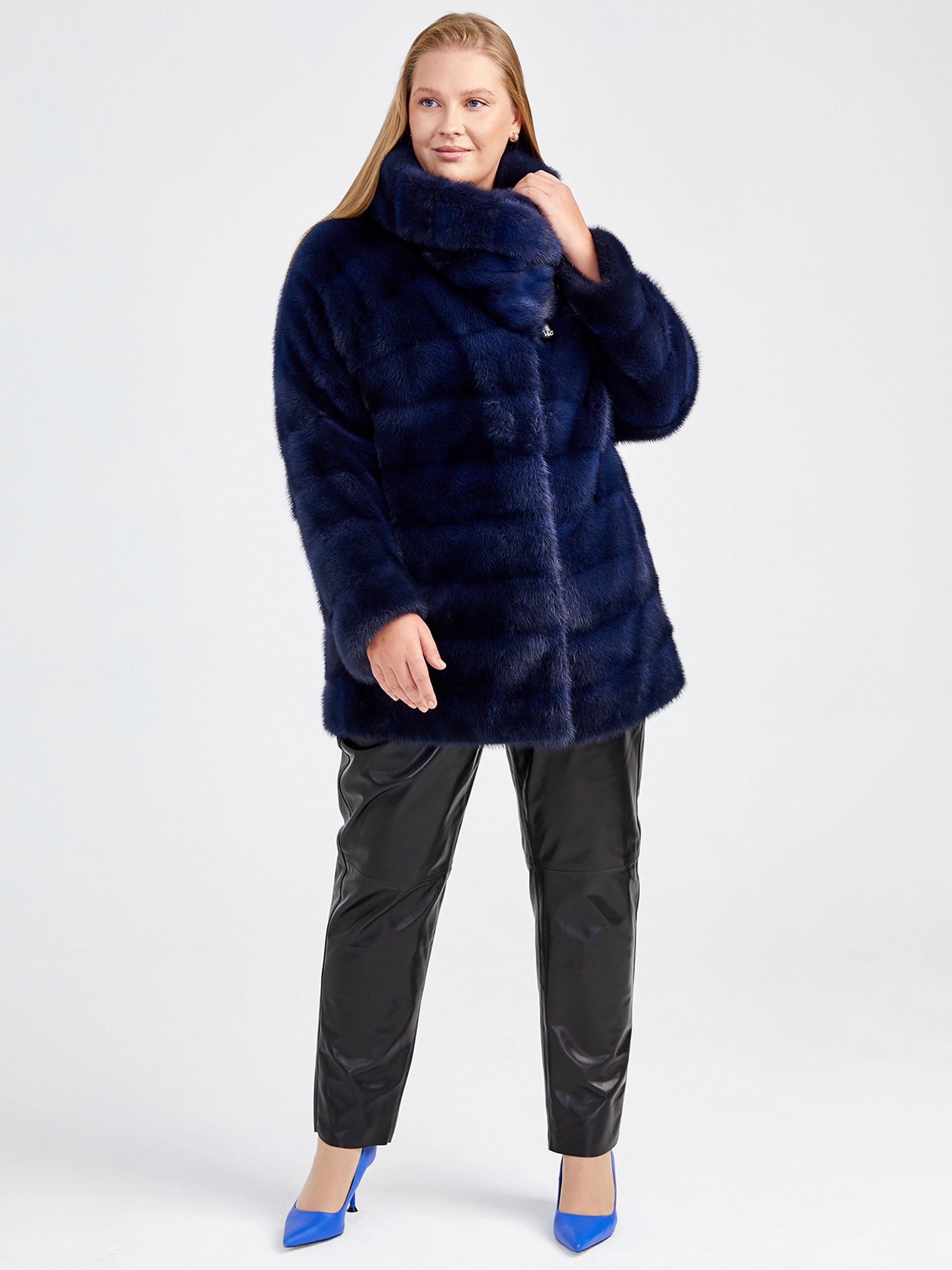 Короткая поперечная женская норковая шуба 1150(кв), синяя, размер 52, артикул 33610