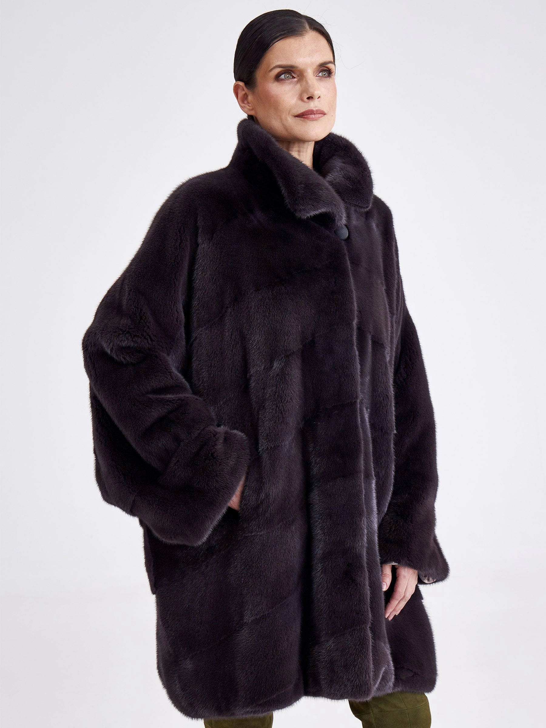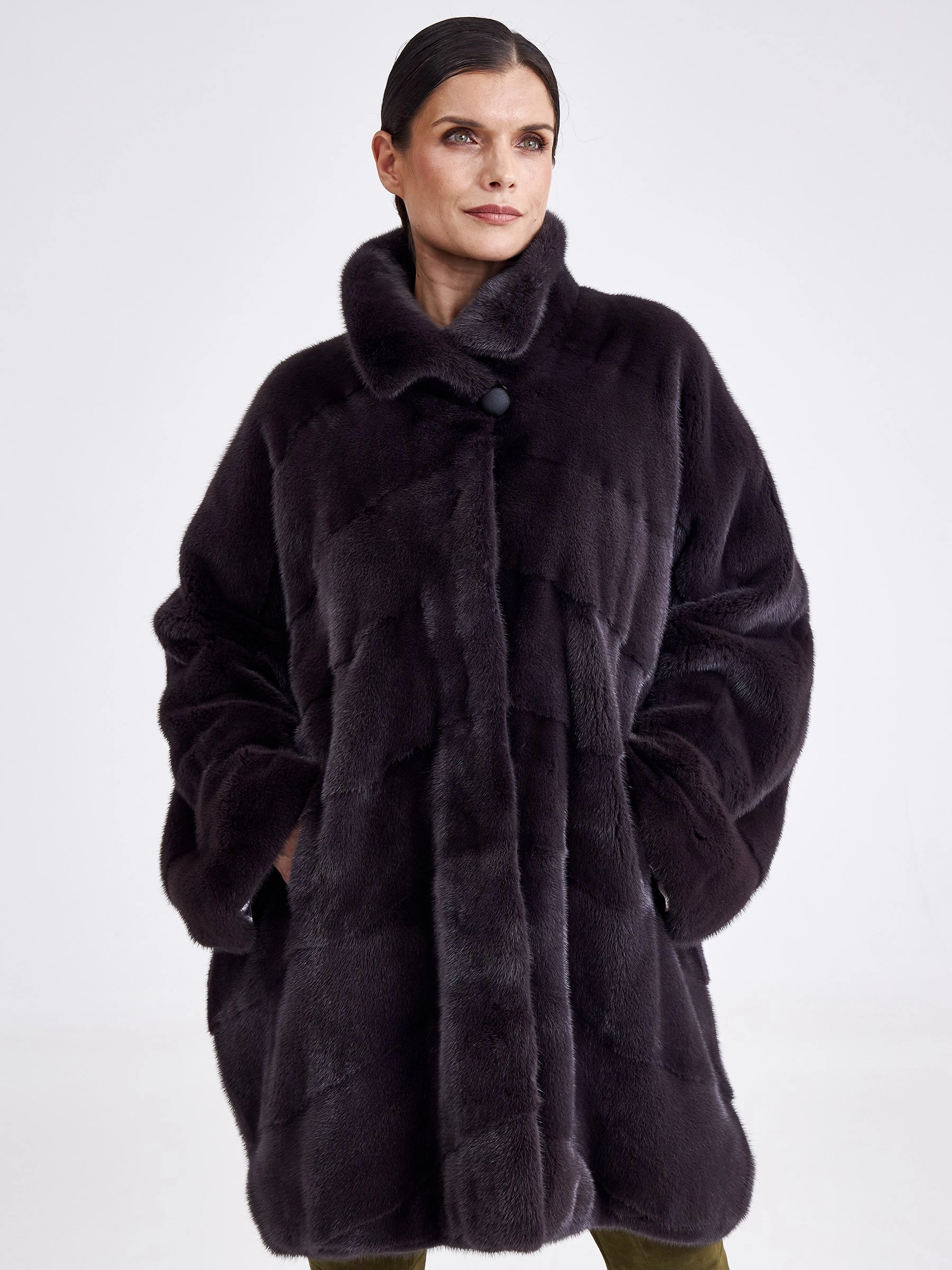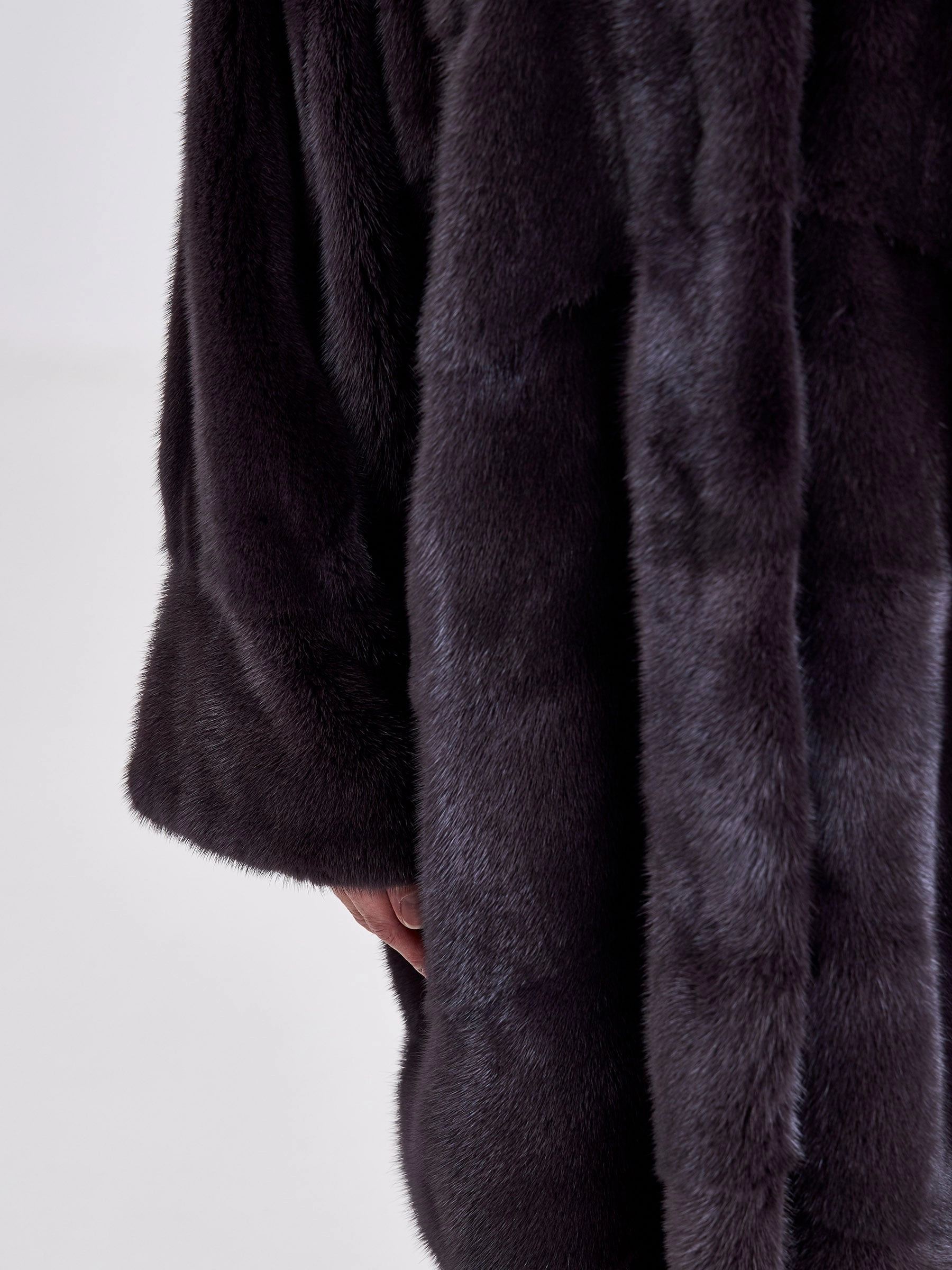 Шуба из меха норки женская 16087(с), баклажановая, размер 60, артикул 33310