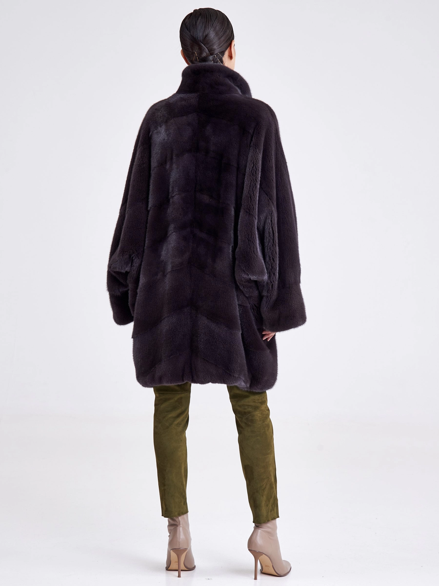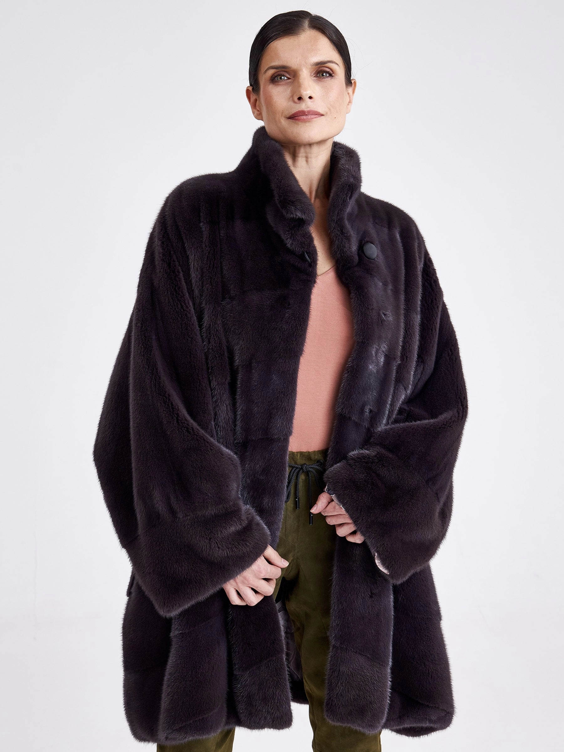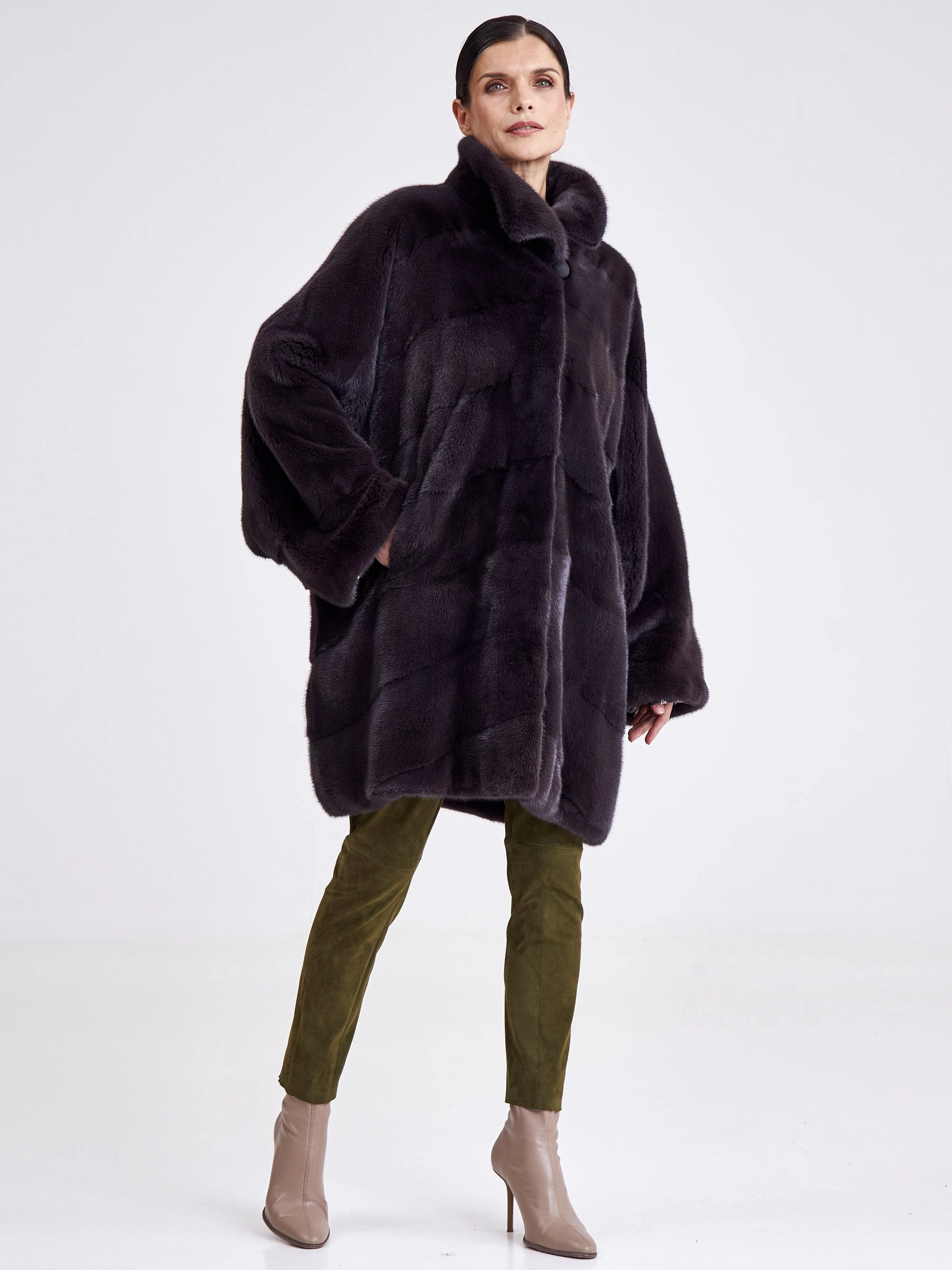 Шуба из меха норки женская 16087(с), баклажановая, размер 60, артикул 33310