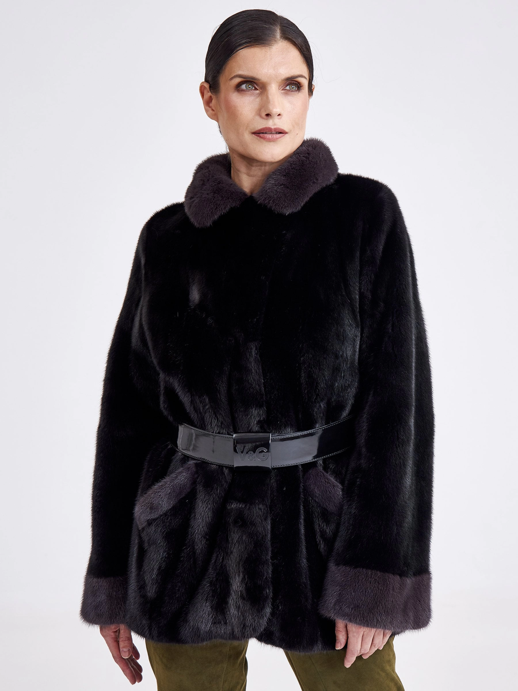 Эта классическая короткая шуба из низковорсовой крашеной норки насыщенного синего цвета демонстрирует безупречную зимнюю элегантность. Модель с прямым силуэтом, втачными плечами и строгим английским воротником обеспечивает идеальную посадку по фигуре. Короткая длина (51–74 см) и лаконичная застёжка на декоративные клипсы придают образу современную лёгкость. Шуба дополнена двумя функциональными карманами и длинным поясом, позволяющим варьировать силуэт. Благодаря шелковистому низковорсовому меху и подкладке из 100% вискозы изделие исключительно тёплое, лёгкое и комфортное для носки. Совет стилиста: наденьте её поверх однотонного платья-миди с сапогами на тонком каблуке для вечернего выхода или сочетайте с высокими кожаными брюками и объёмным свитером для создания дерзкого городского образа с акцентом на талии.