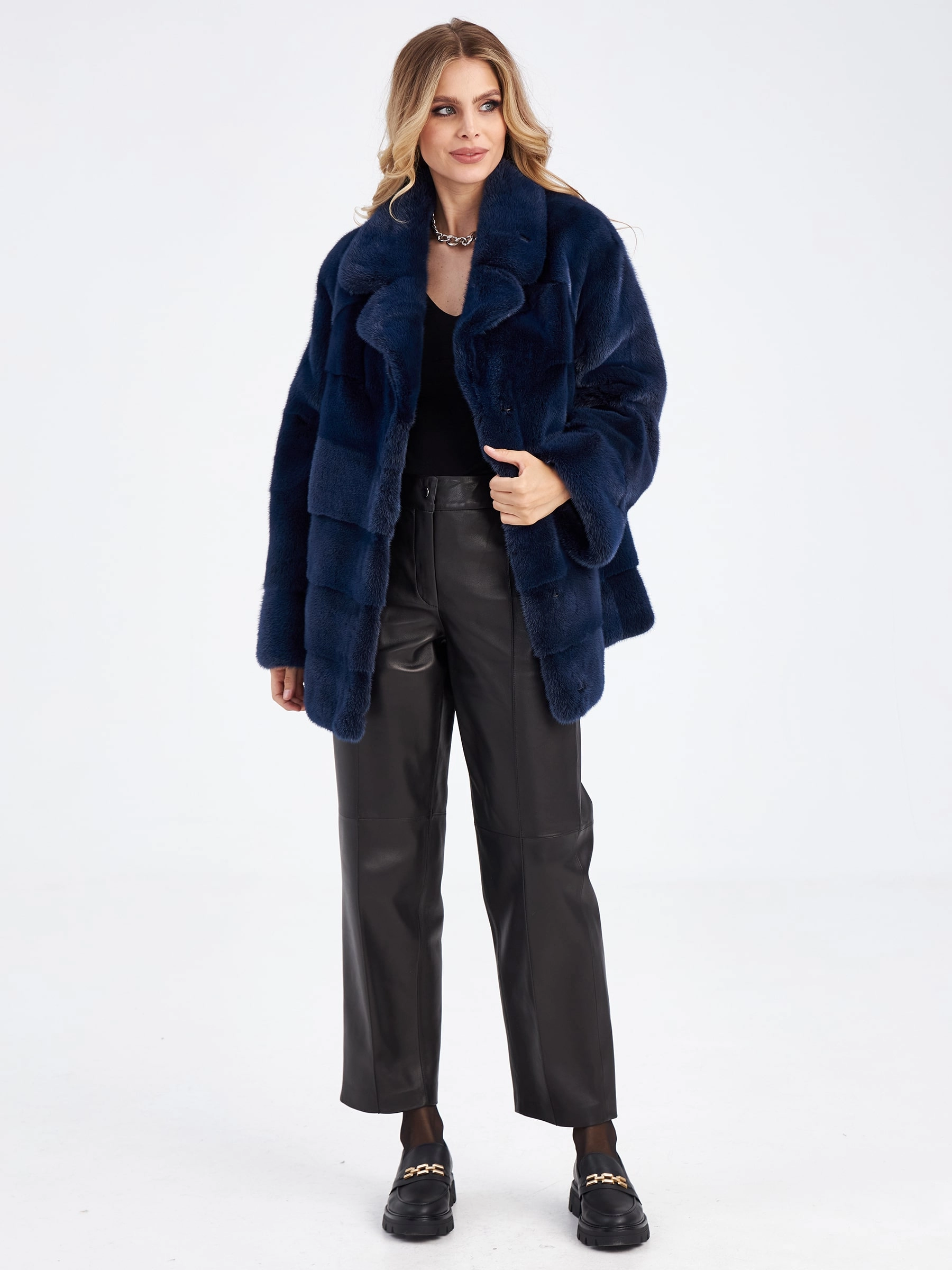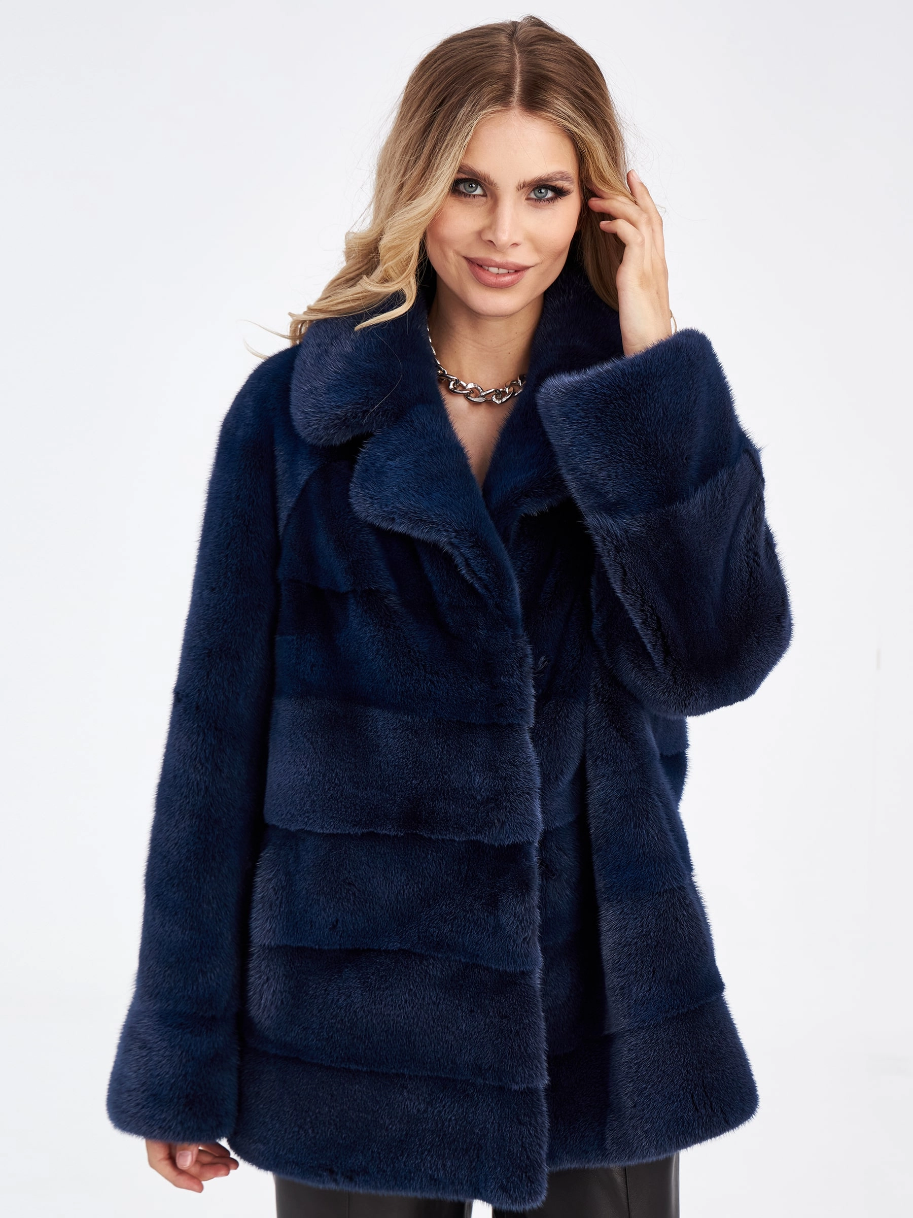 Товар поперечная норковая шуба автоледи для женщин кейт, синяя, размер 56, артикул 33720 выполнен из норка с застежкой клипсы. Рассчитан на сезон: зима. Длина изделия 70 см, силуэт прямой.