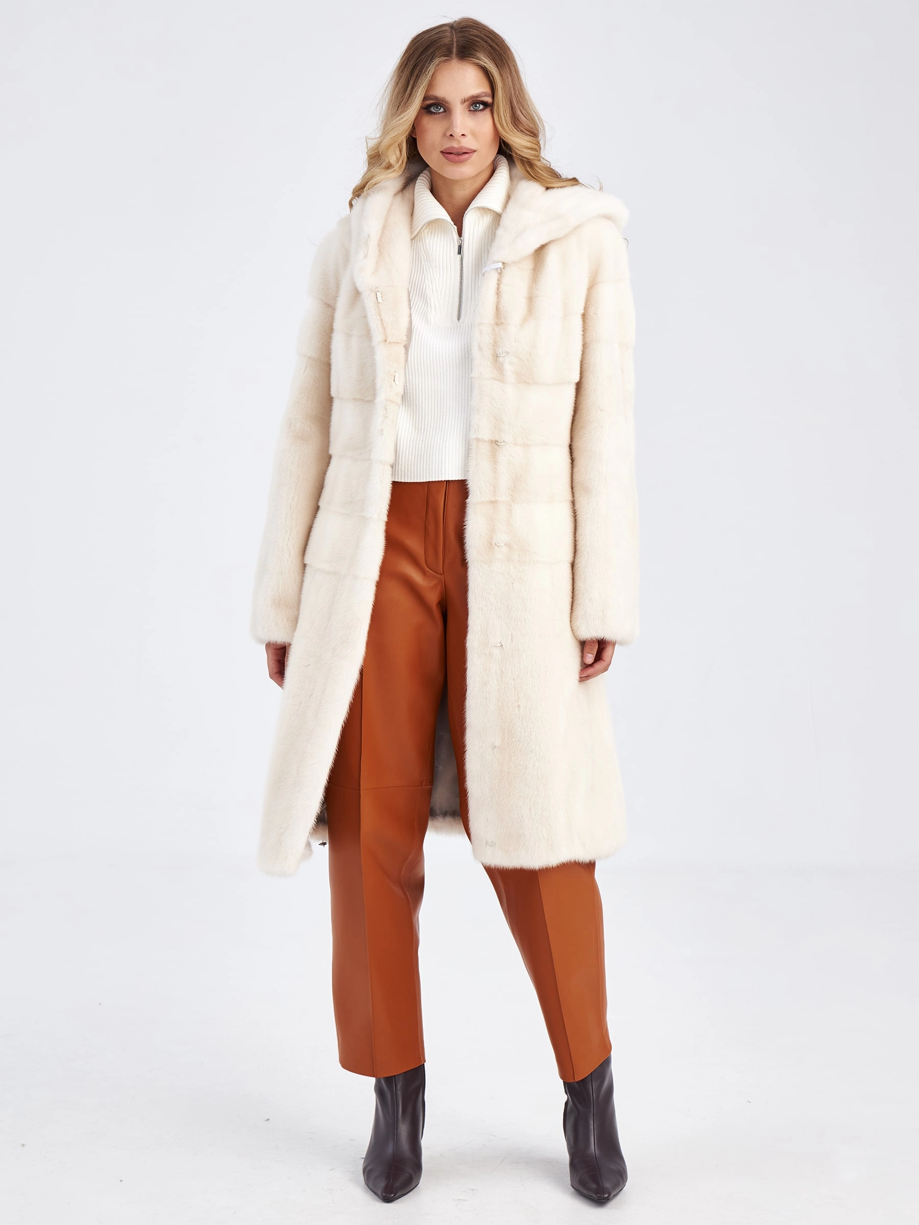 Норковая женская поперечная шуба премиум класса Майя(к), жемчужная, размер 46, артикул 33740