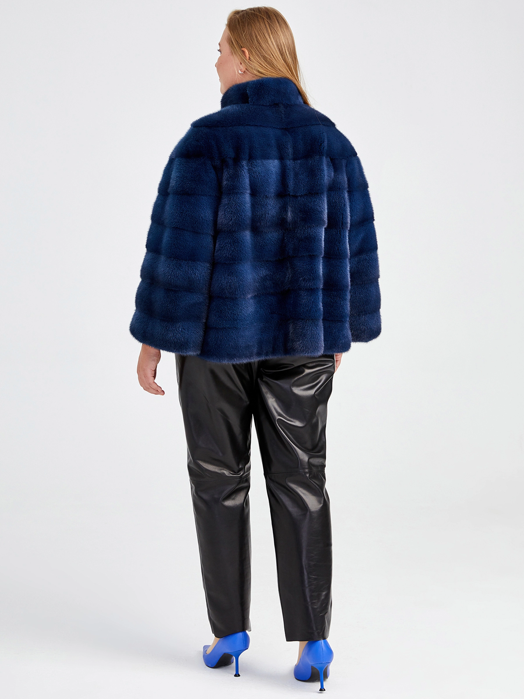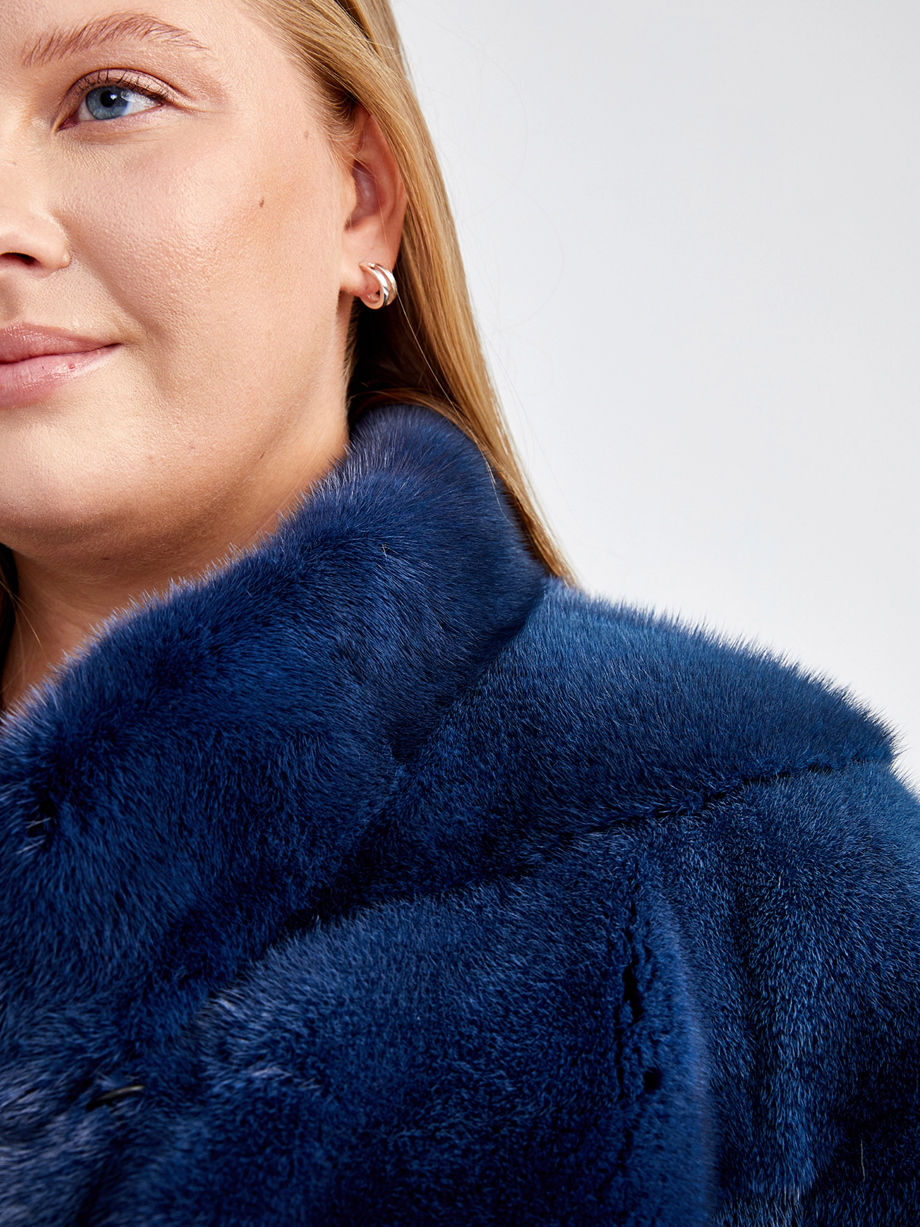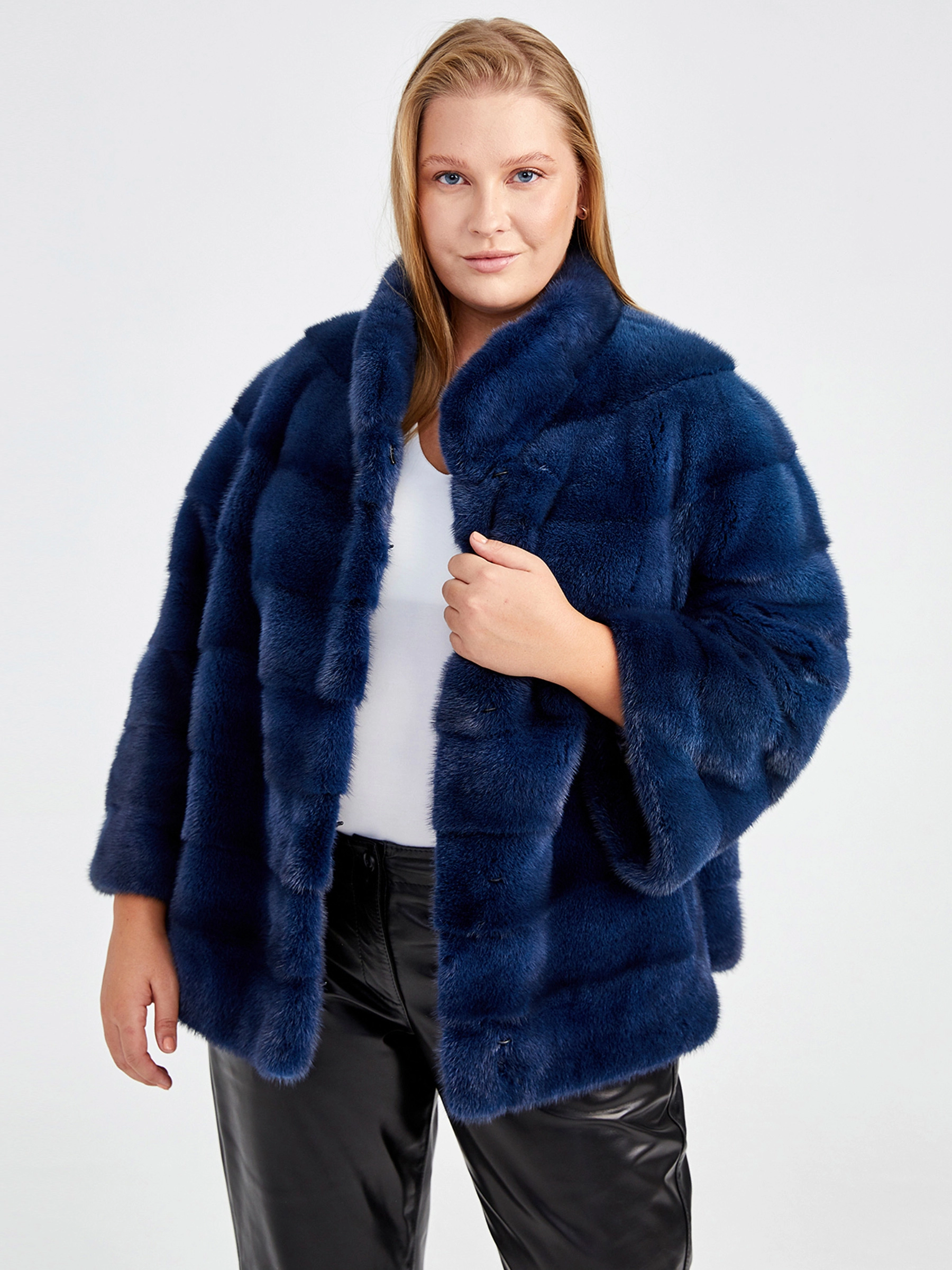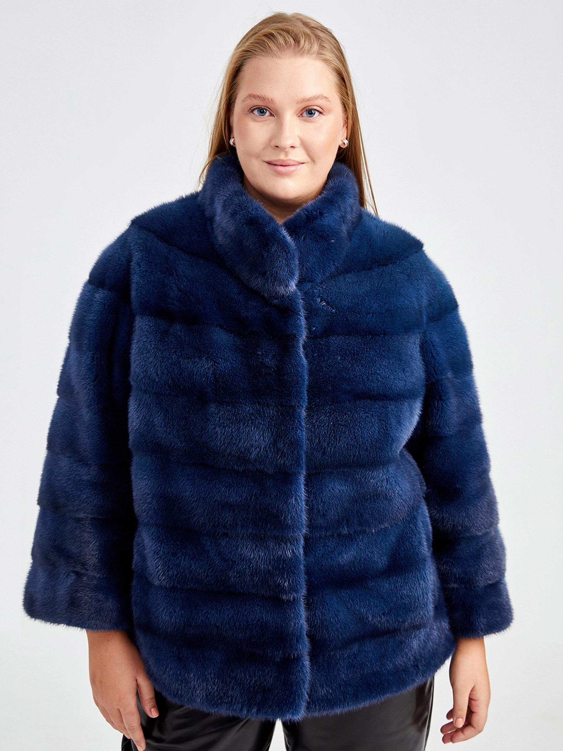 Короткая поперечная женская норковая шуба Ольга(с), синяя, размер 56, артикул 33630