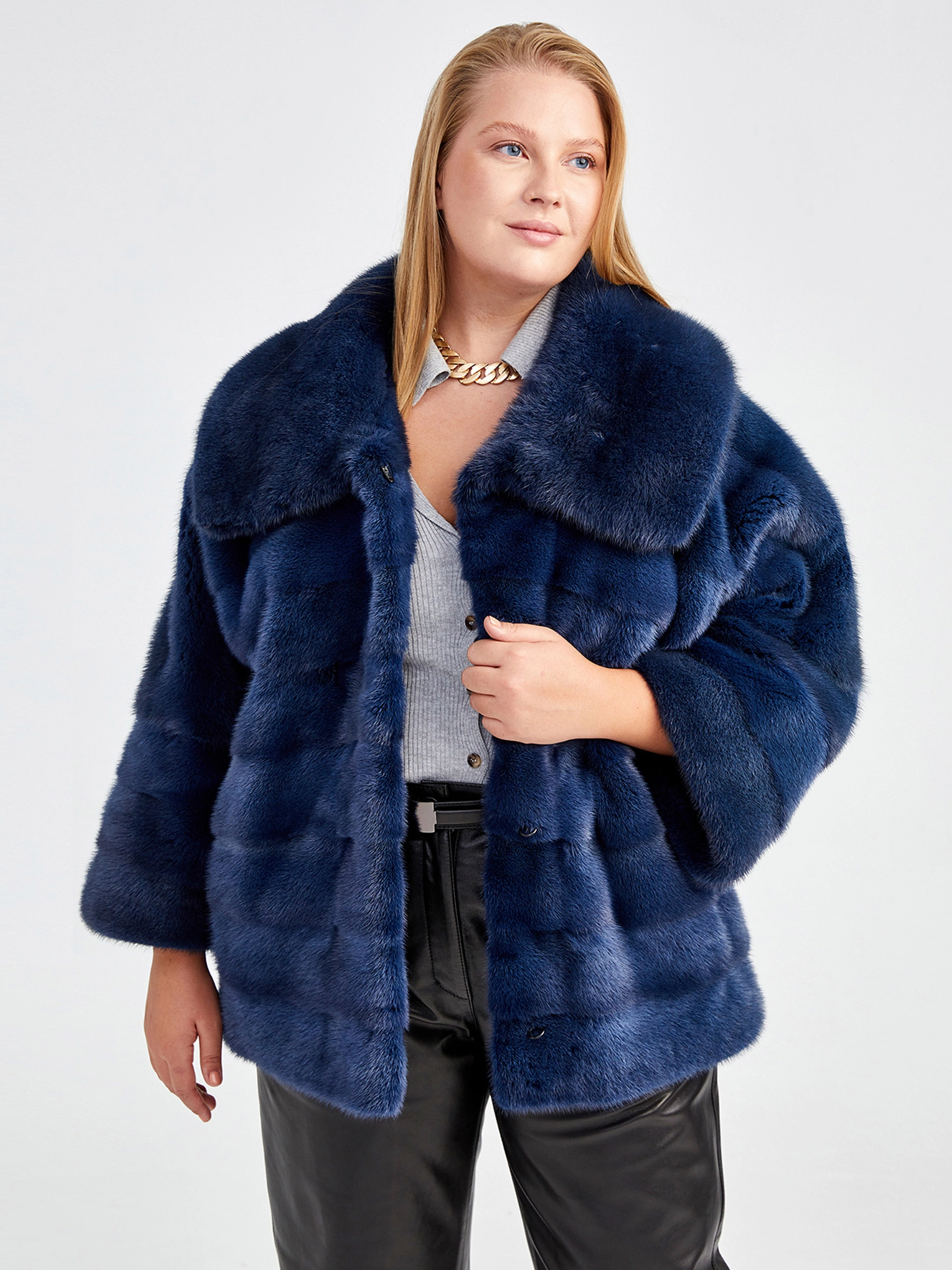 Это пальто из натурального меха норки укороченного кроя (длина 51-74 см), идеальное для динамичной городской жизни. Прямой силуэт с втачными рукавами и строгим отложным воротником подчеркивает фигуру, сохраняя элегантность и современный вид. Удобная застёжка на клипсы позволяет легко регулировать посадку. Лаконичный дизайн делает эту модель универсальной жемчужиной гардероба, которая обеспечит роскошную теплозащиту и безупречный стиль в осенне-зимний сезон.