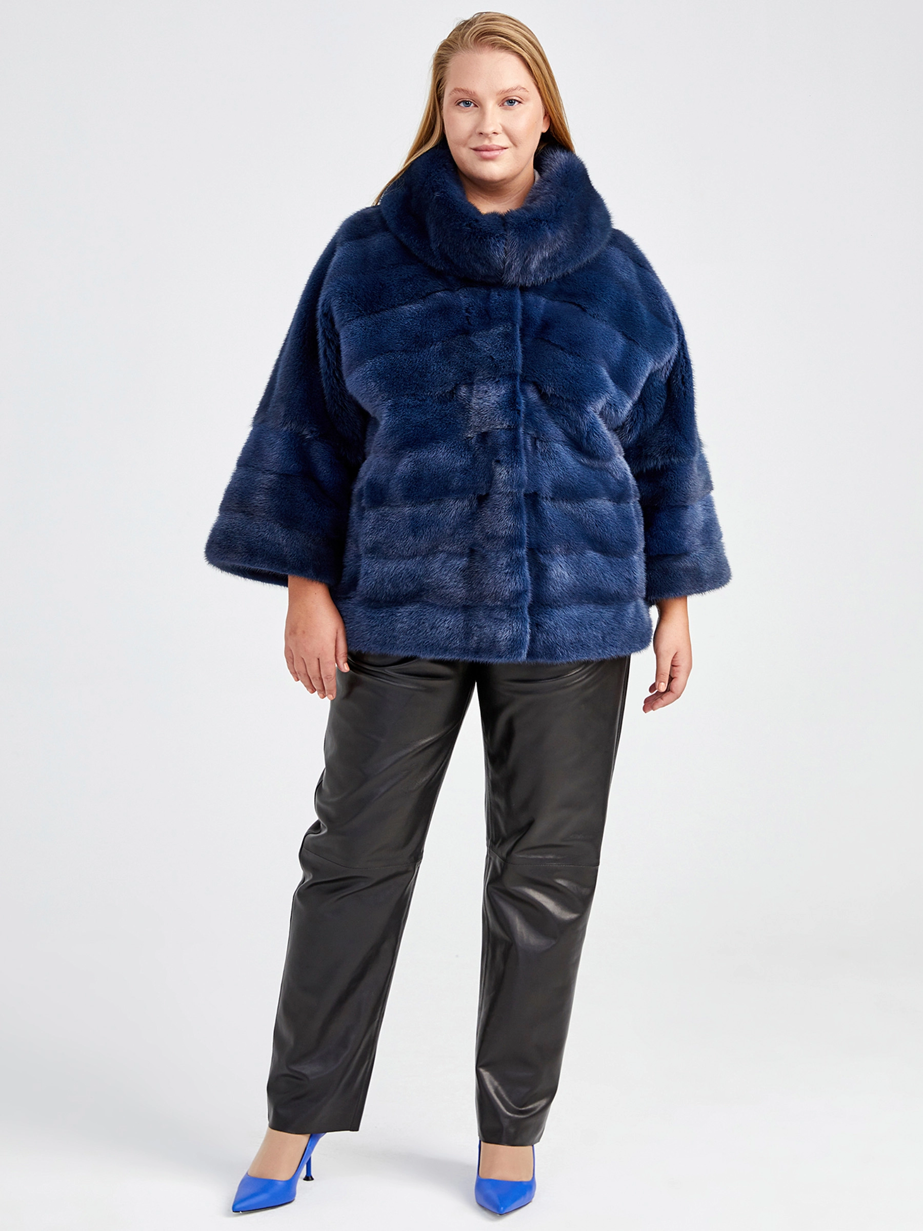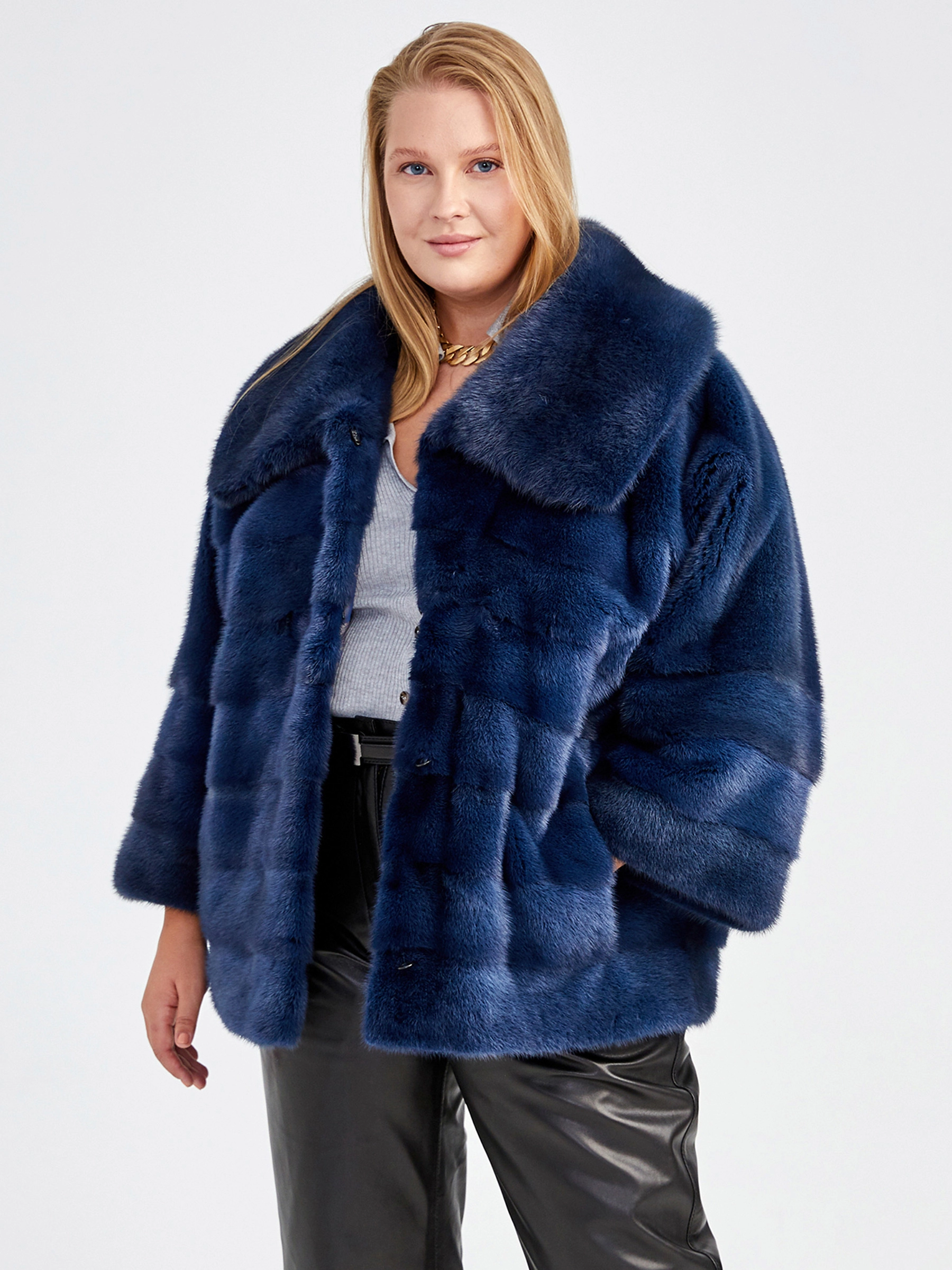 Норковая женская короткая шуба с отложным воротником Соня(в), синяя, размер 50, артикул 33650