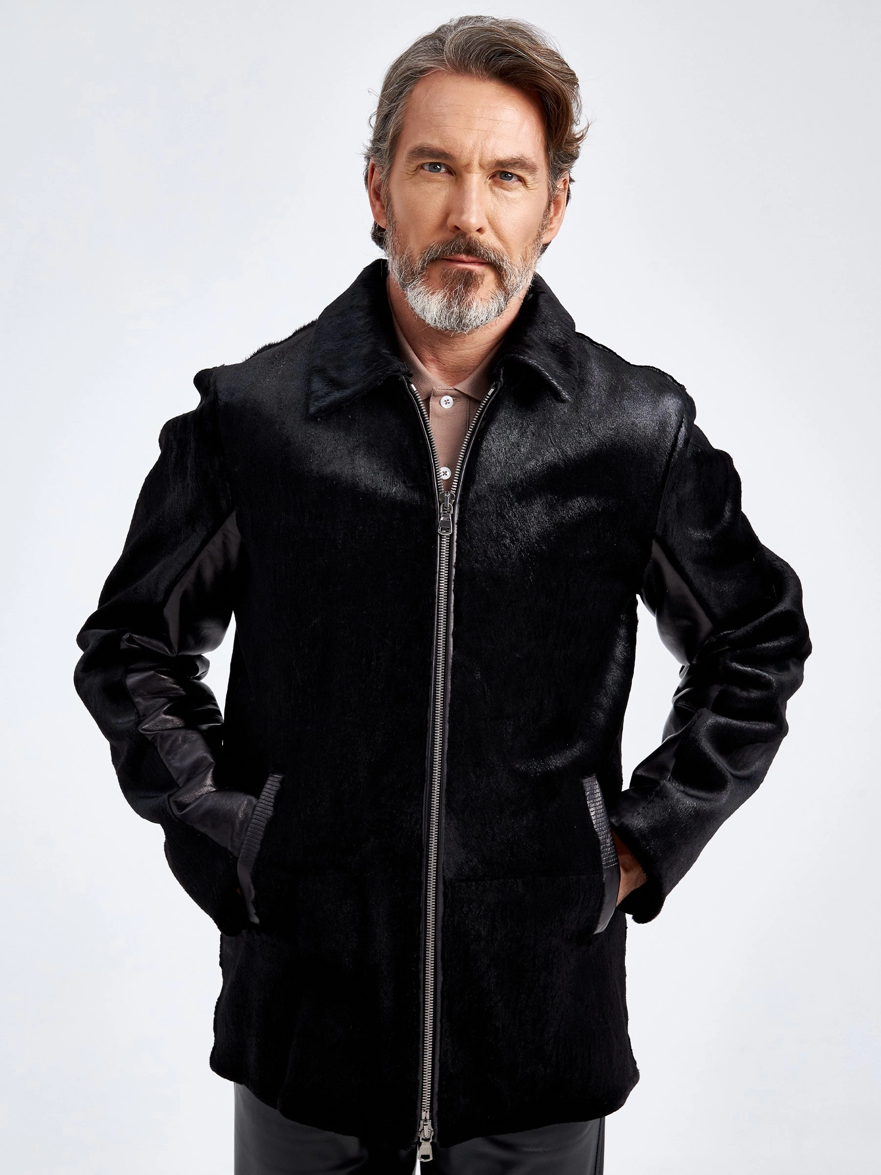 Классическая мужская короткая шуба из канадской нерпы. Мех куртки сшит особым образом: ворсом в верх, для того, чтобы не было видно заломов при интенсивной носке. Модель дополнили кожаными вставками с внутренней стороны рукавов. Настоящий премиум.