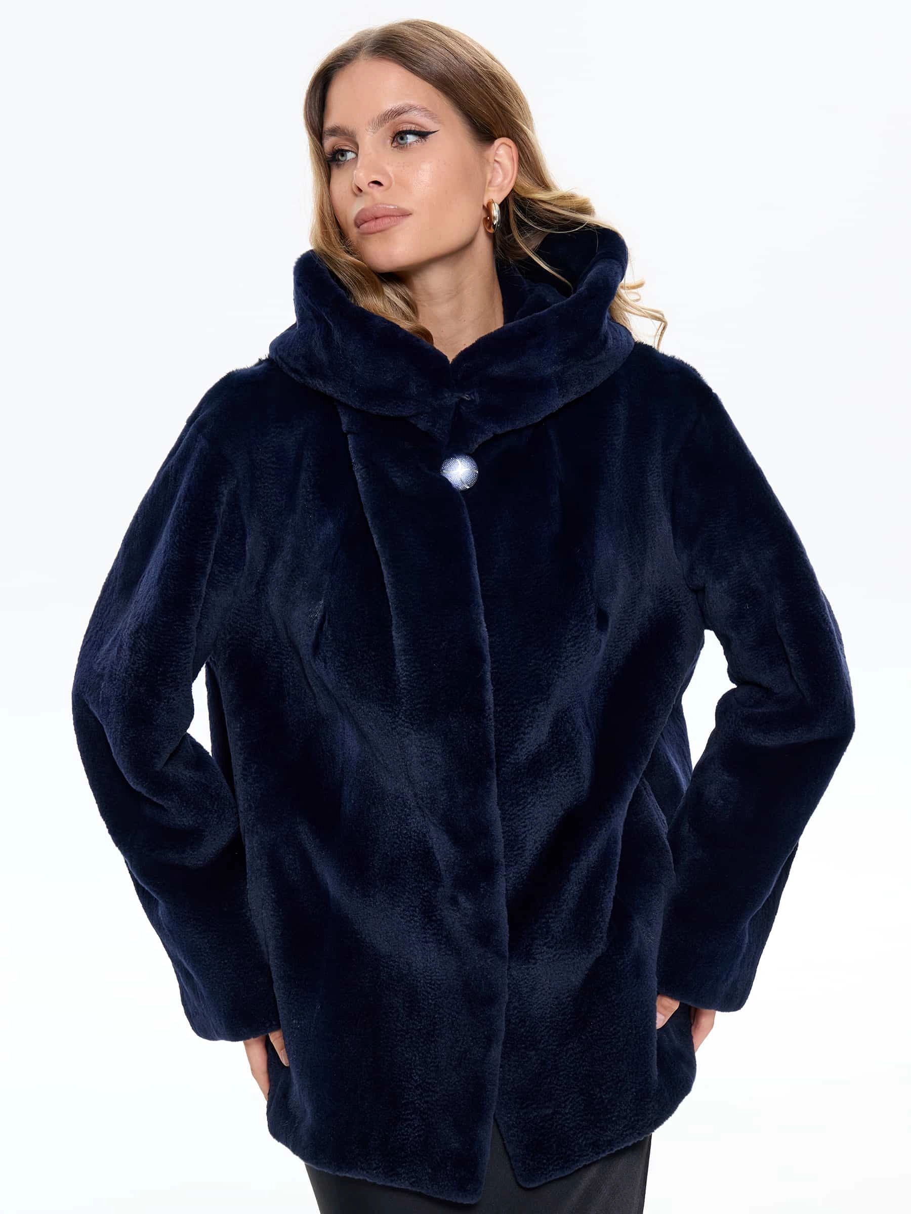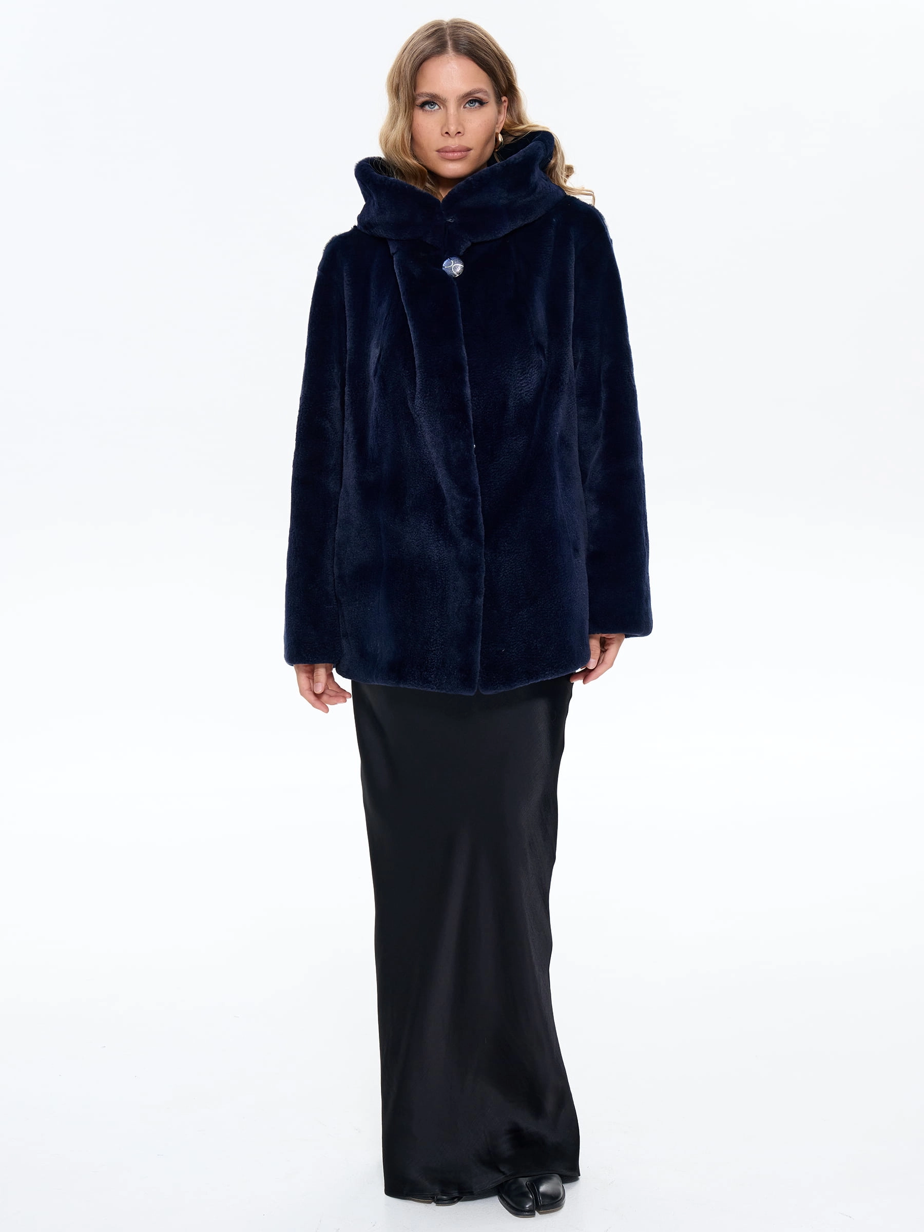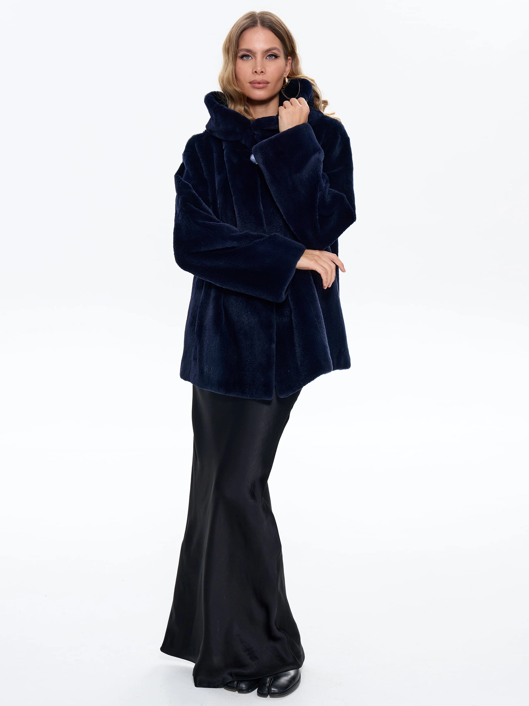 Элегантная короткая шуба из шелковистого "щипаного" меха норки с объемным капюшоном модели «Жанет» насыщенного синего оттенка. Свободный силуэт и спущенный рукав создают современный образ уютной роскоши, а текстура меха, напоминающая набивной бархат, придает ей особый шарм. Рекомендация стилиста: эта модель великолепно сочетается с узкими джинсами, высокими сапогами и объемным свитером для повседневного образа, а также с кожаными брюками и дизайнерскими кроссовками для дерзкого городского лука. Идеальный выбор для тех, кто ценит современный комфорт и непревзойденную элегантность.