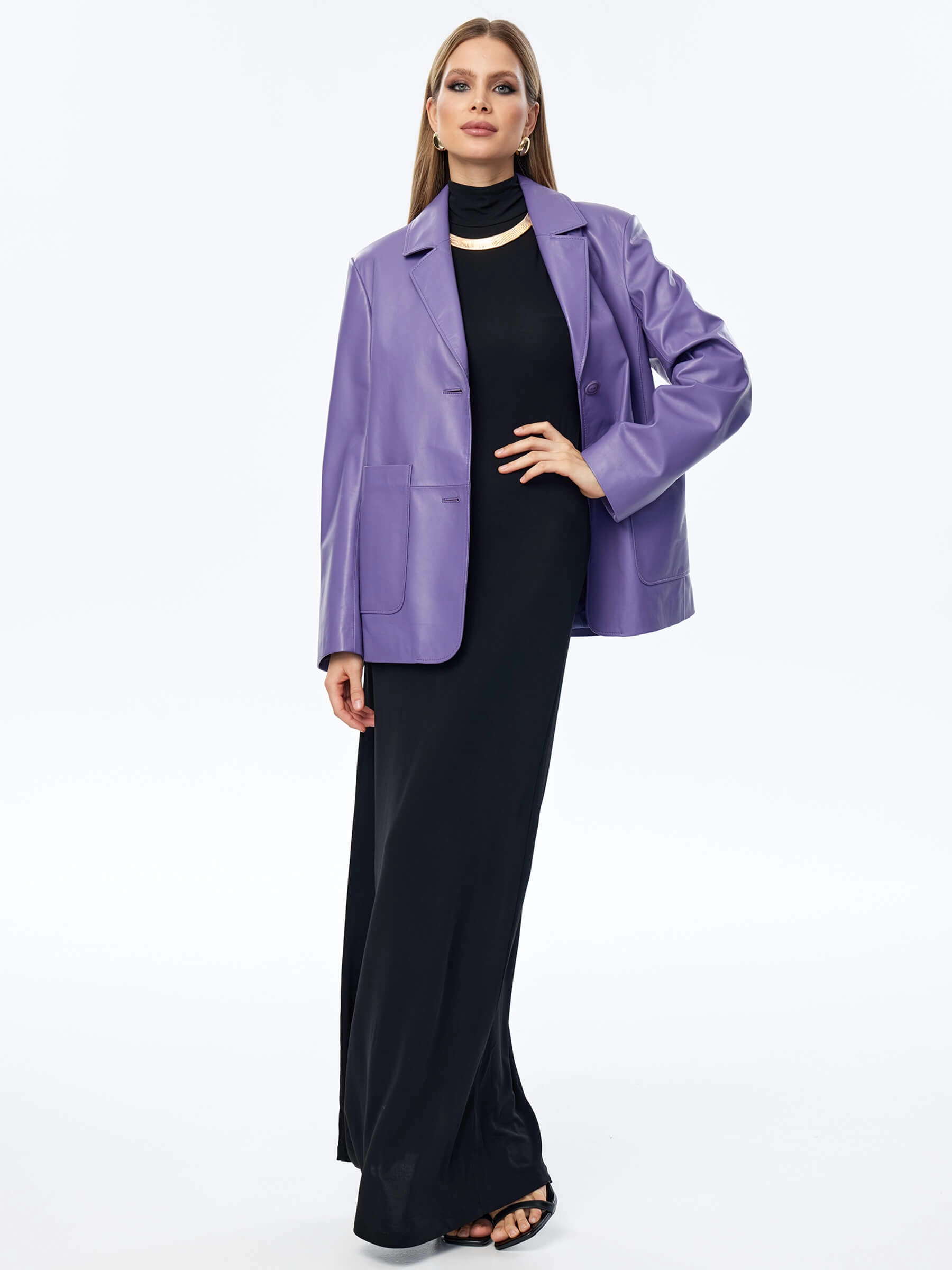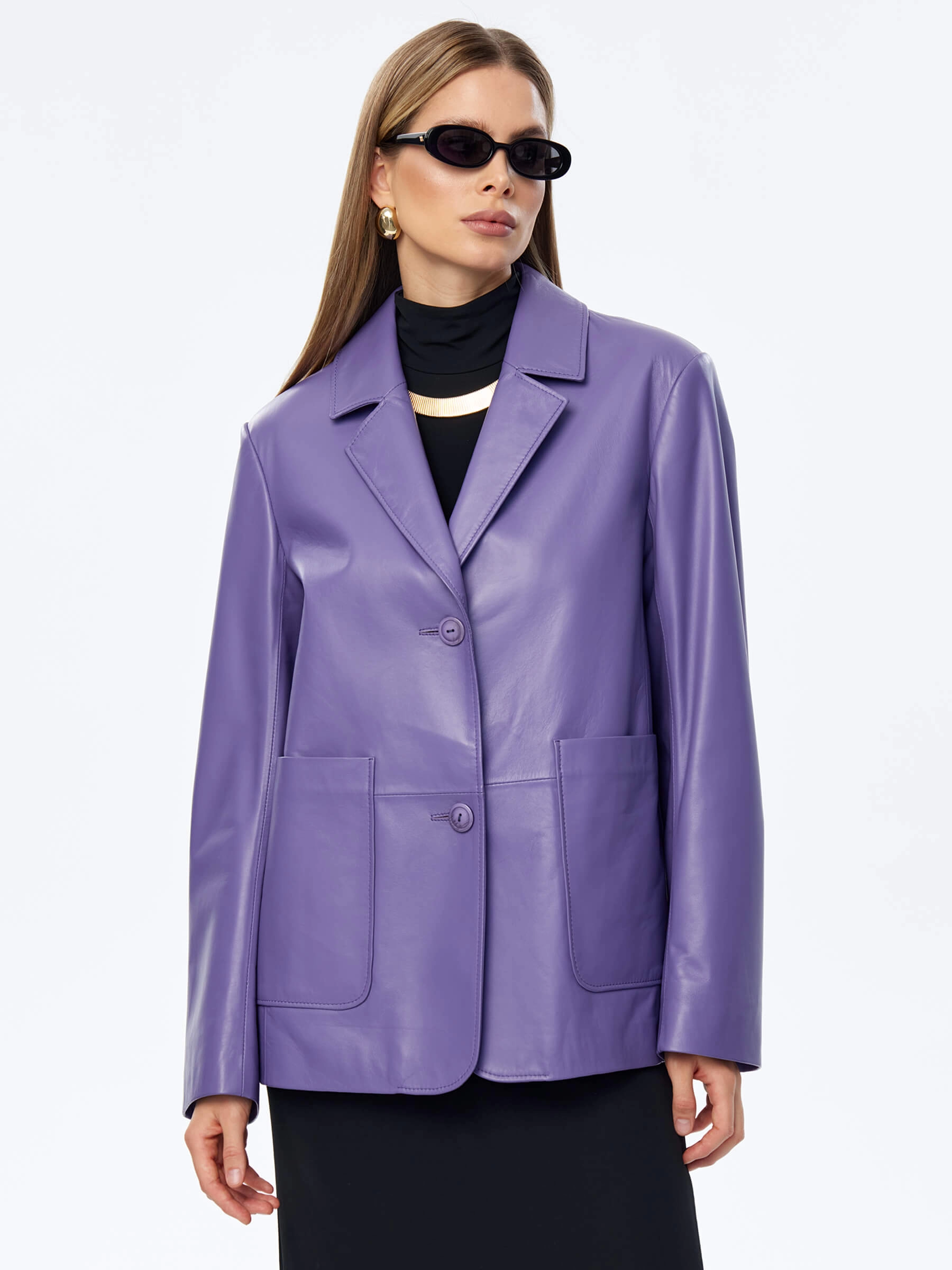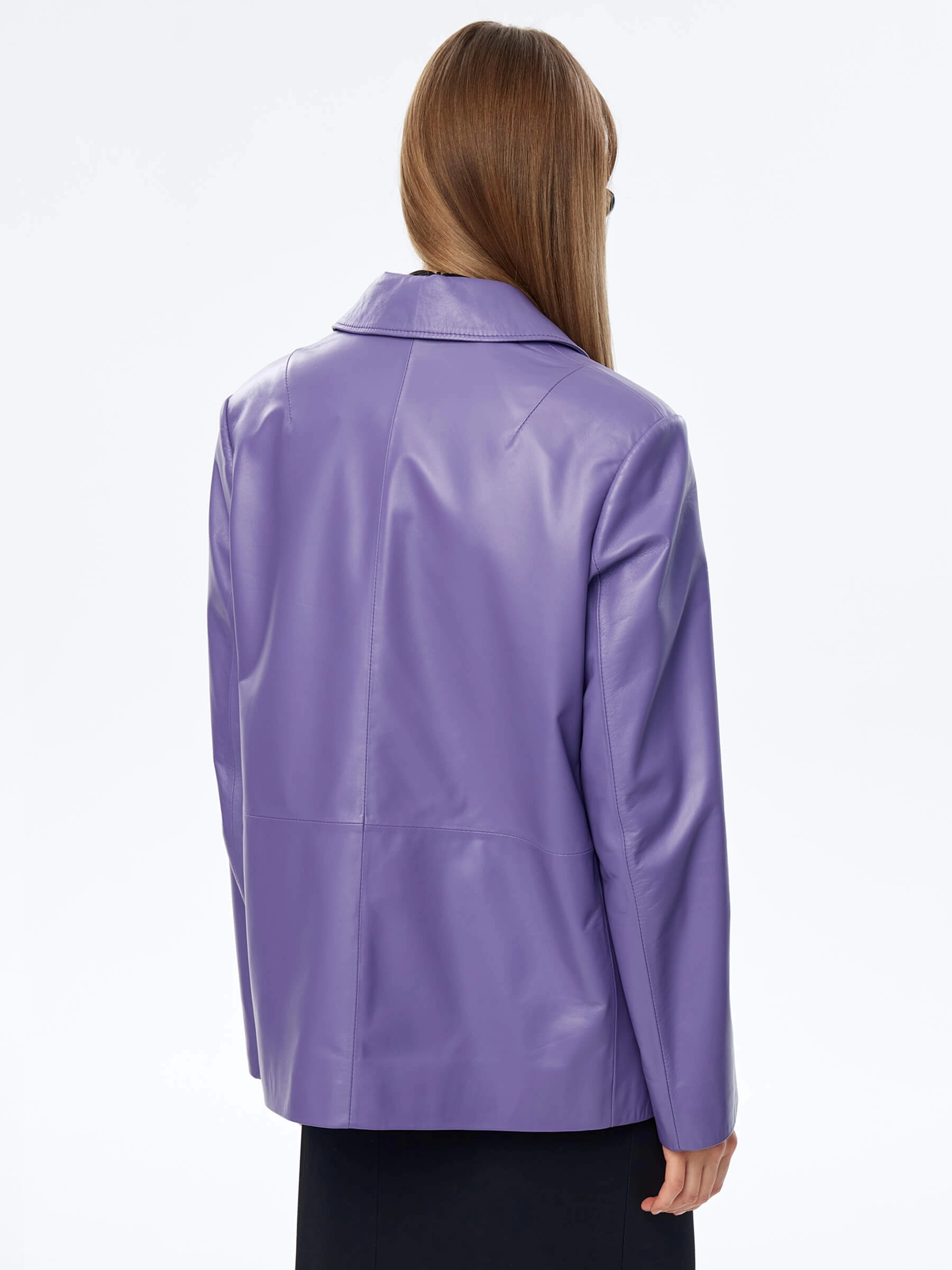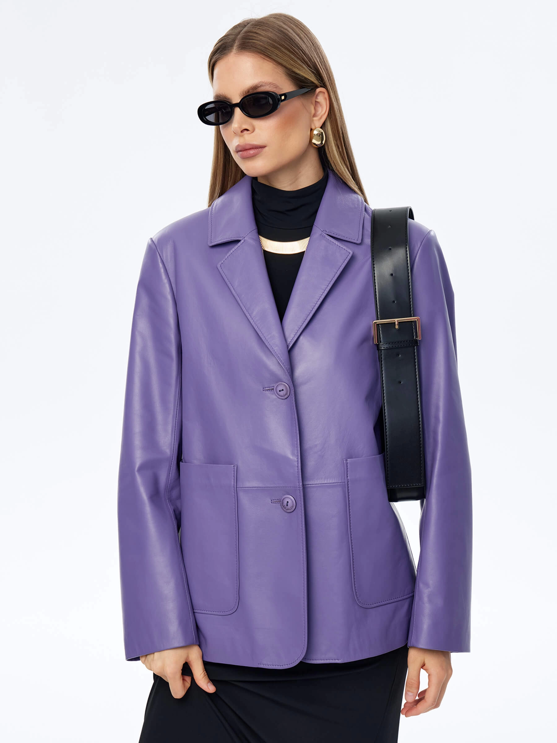 Сиреневый кожаный женский пиджак премиум класса 3016, размер 48, артикул 91680