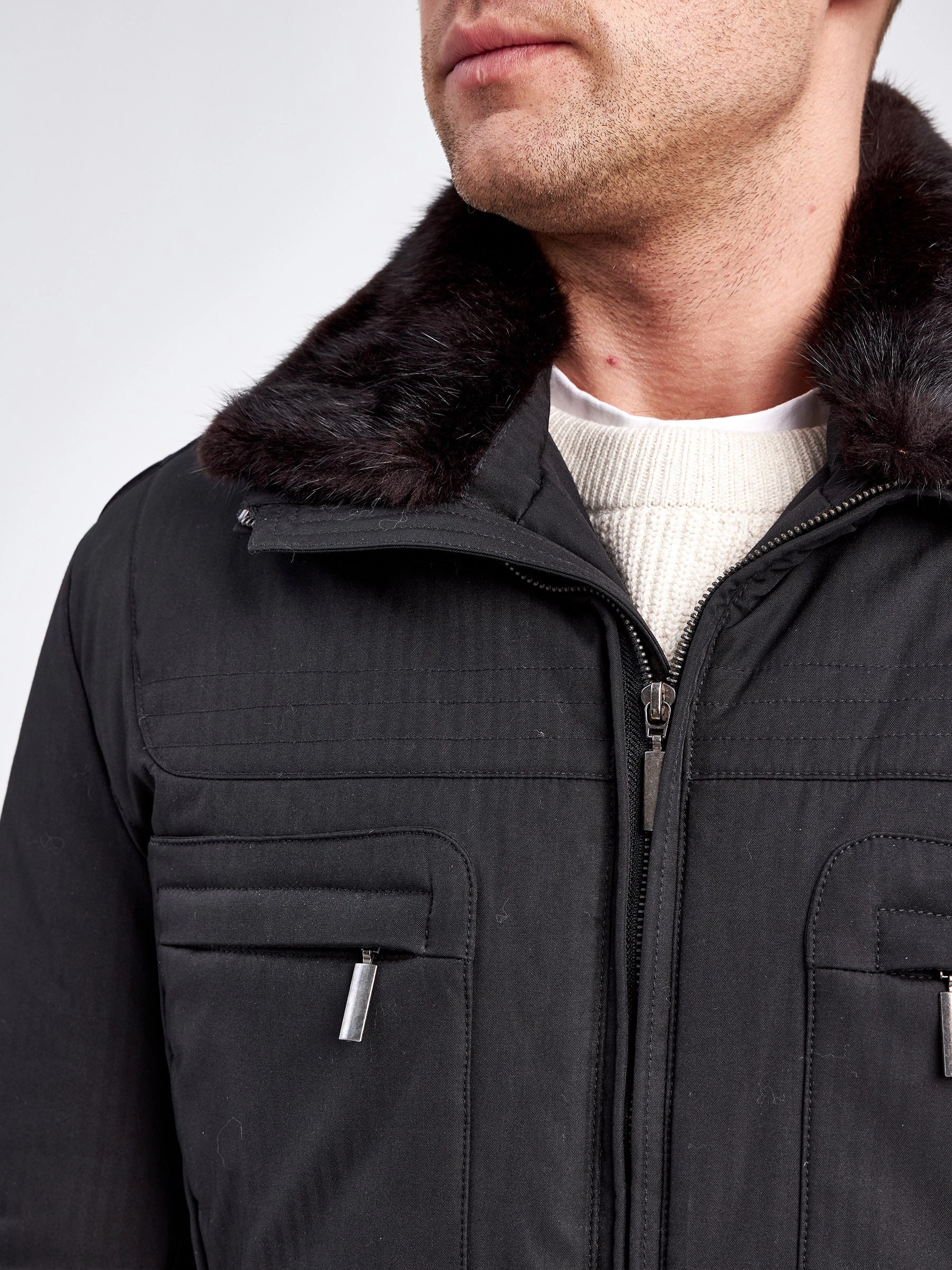 Текстильная зимняя мужская куртка с воротником меха норки Samuele, черная, размер 48, артикул 40910