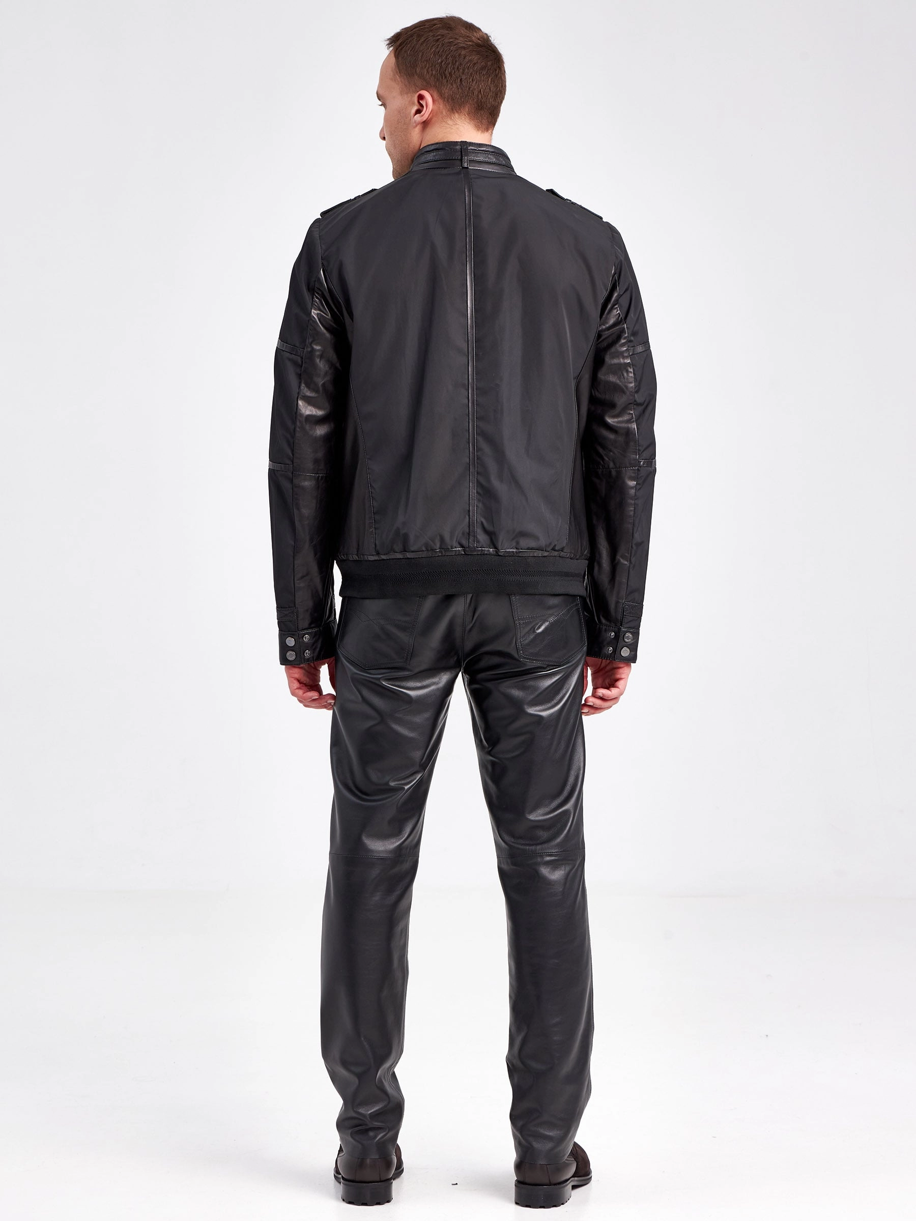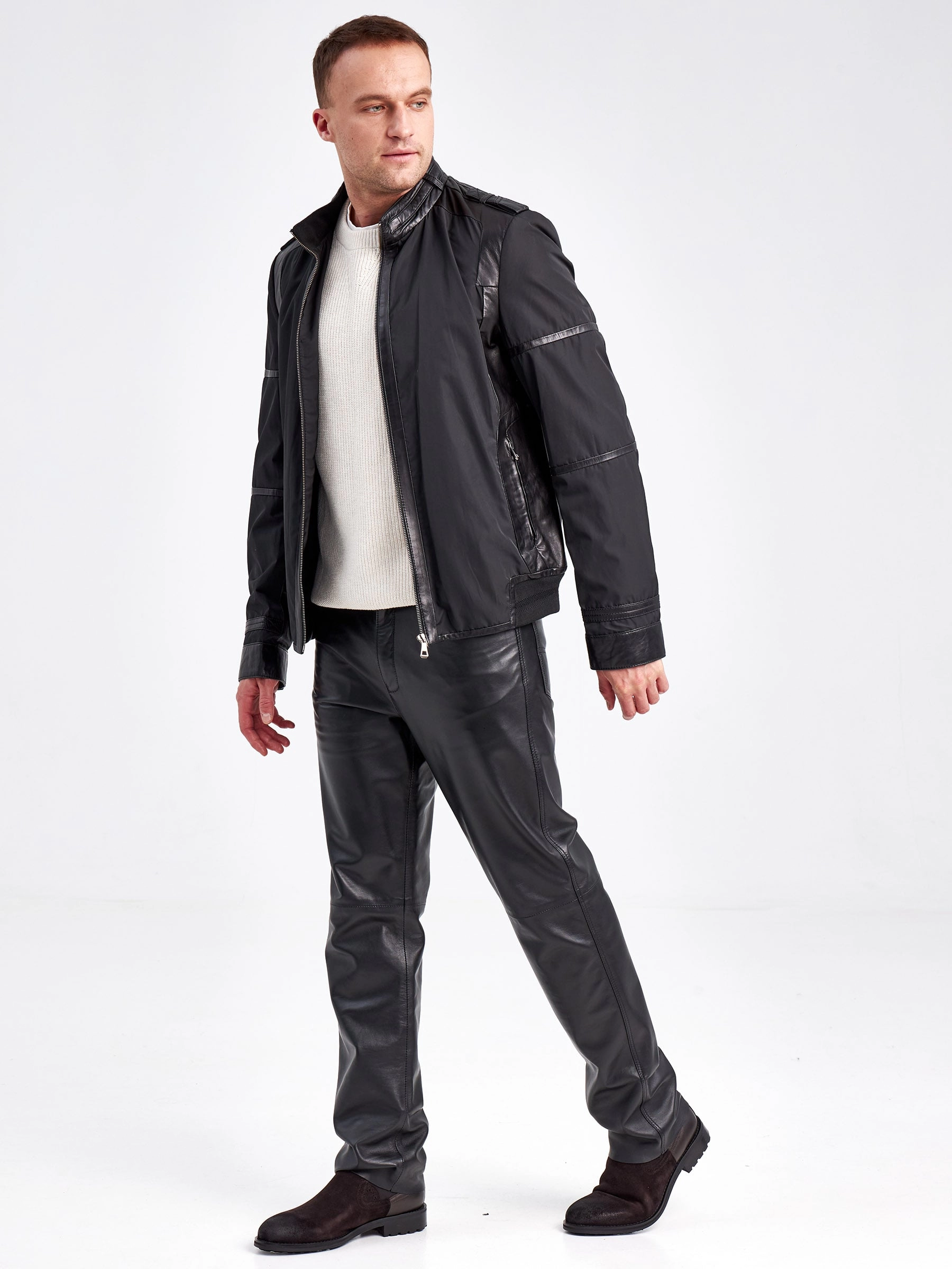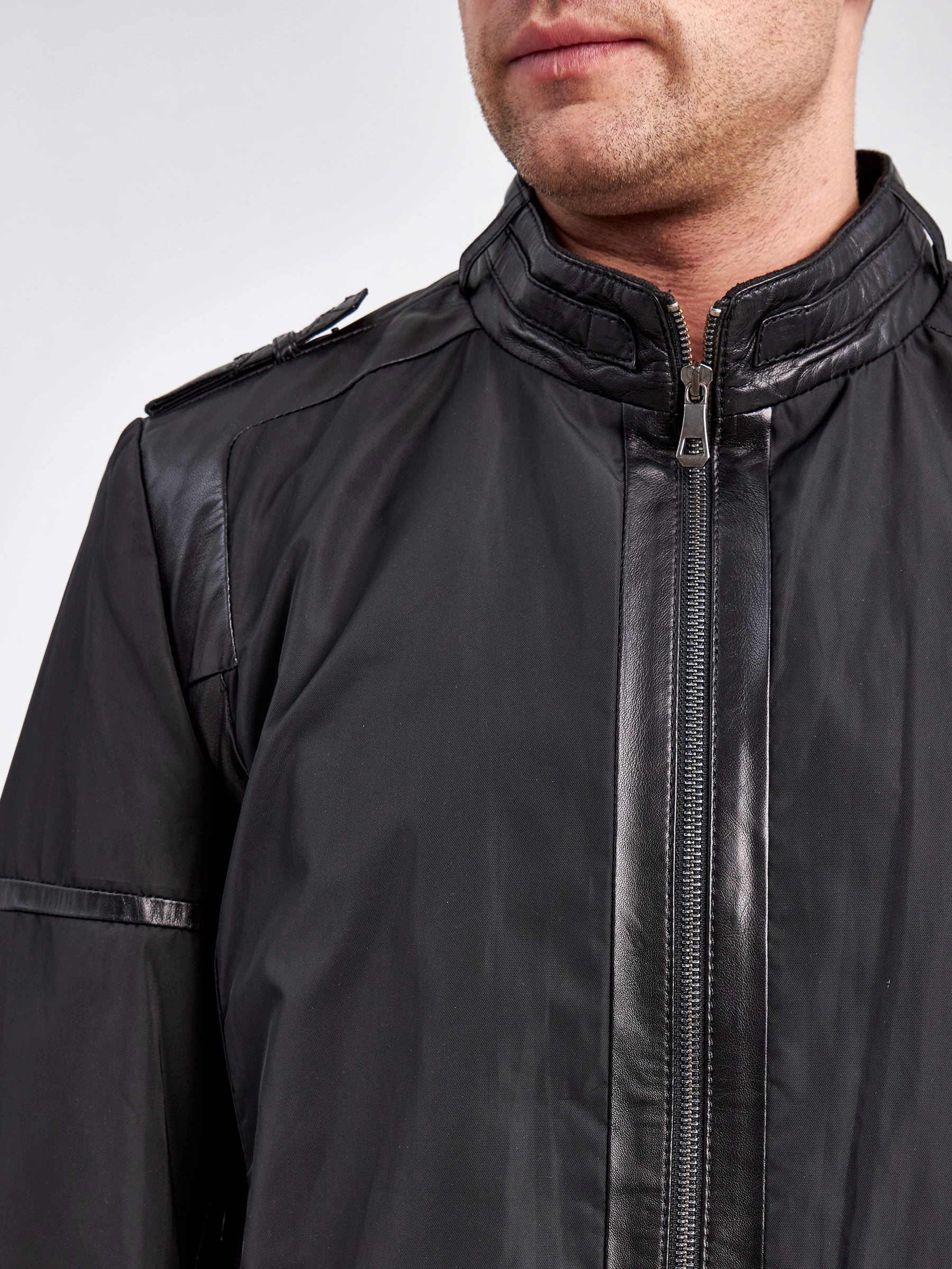 Современная мужская демисезонная куртка с отделками из натуральной кожи.