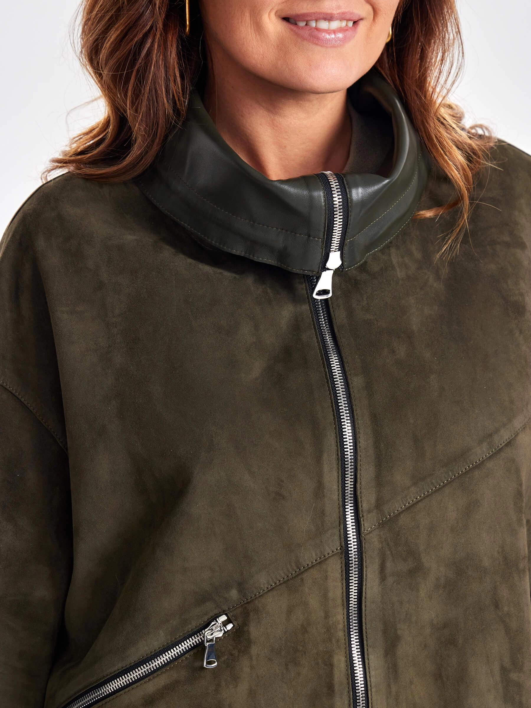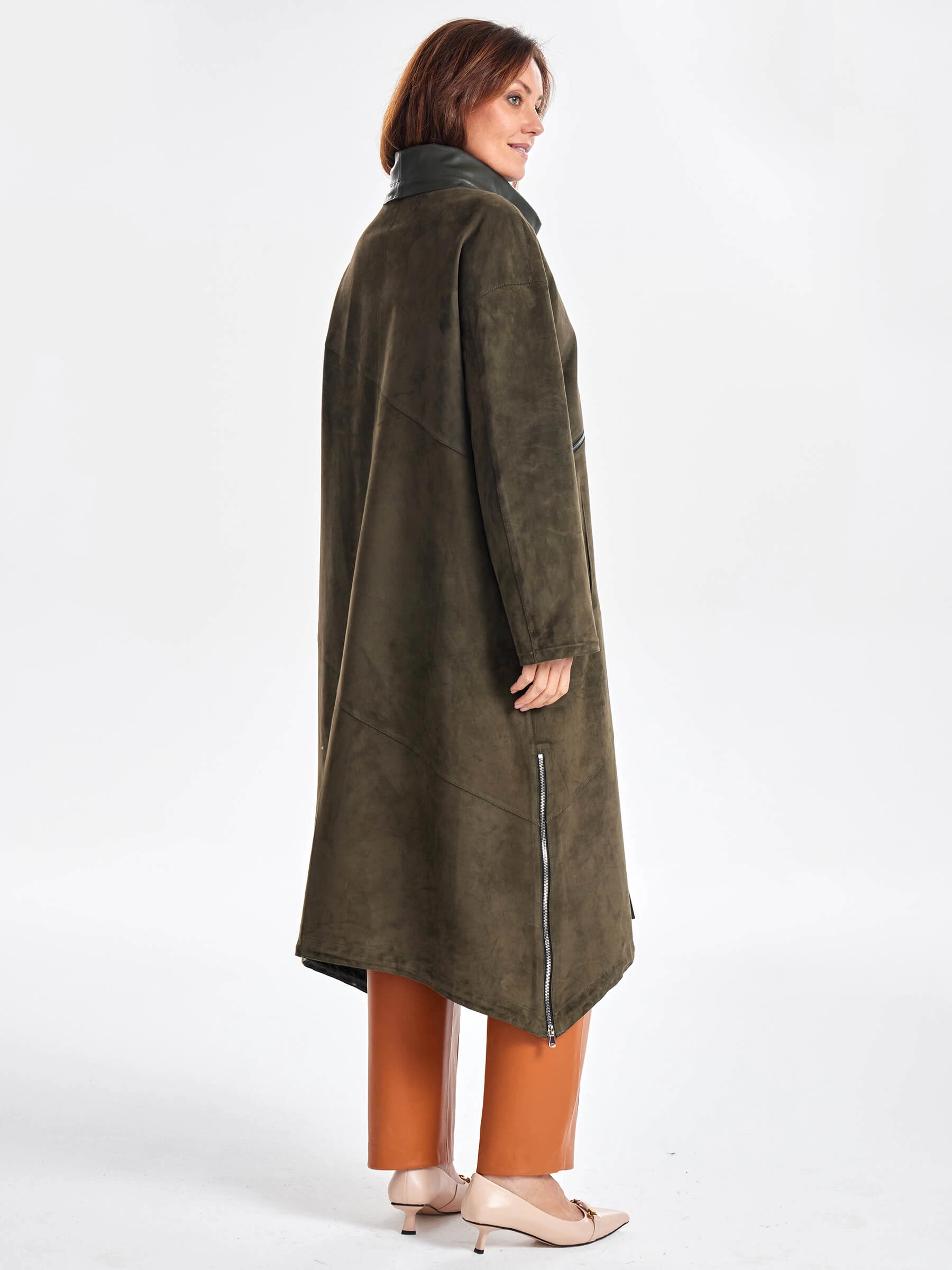 Товар трендовое женское замшевое пальто оверсайз премиум класса 3061з, хаки, размер 50, артикул 63440 выполнен из натуральной замши с застежкой молния. Рассчитан на сезон: весна-лето. Длина изделия 115 см, силуэт оверсайз.