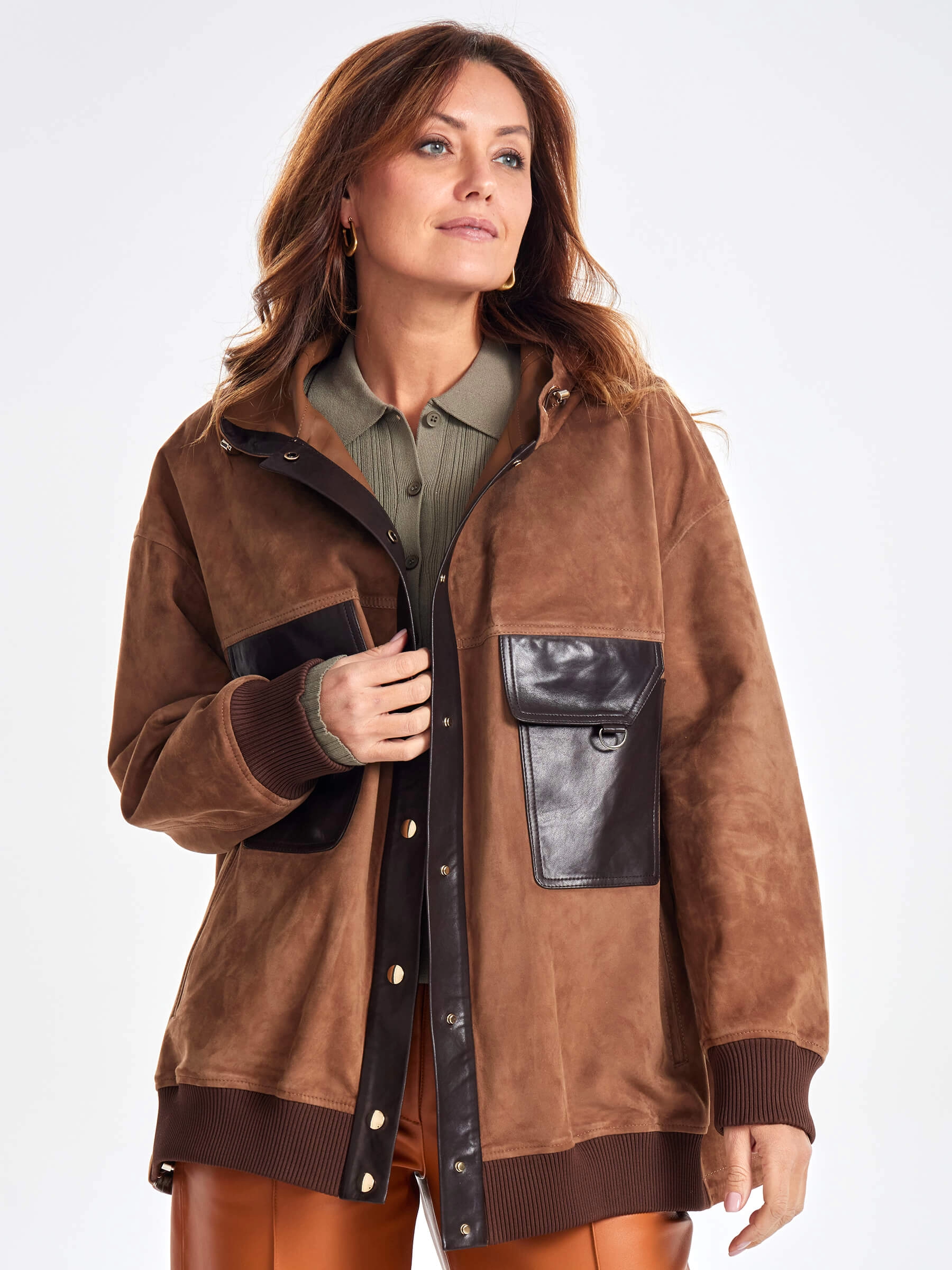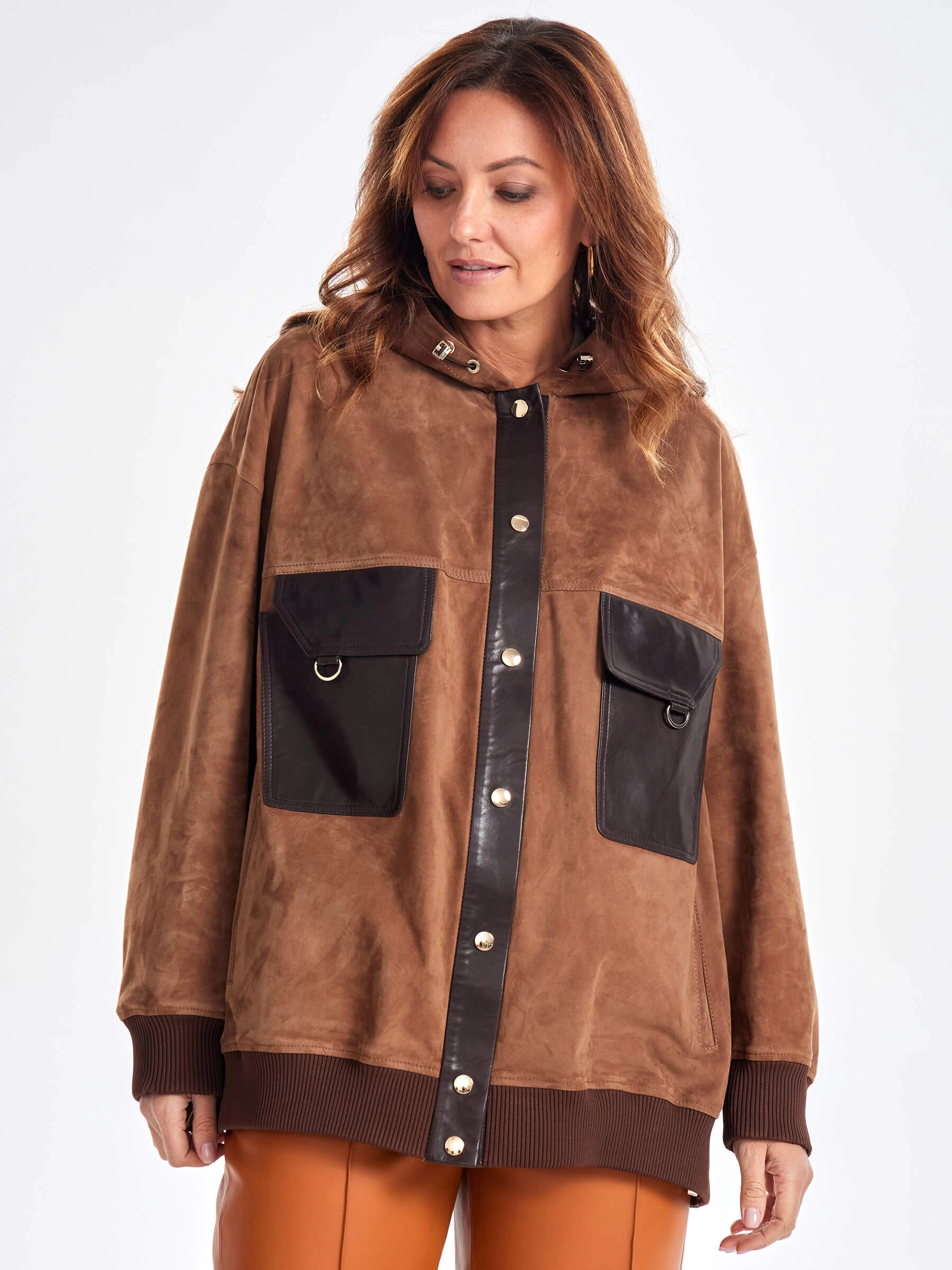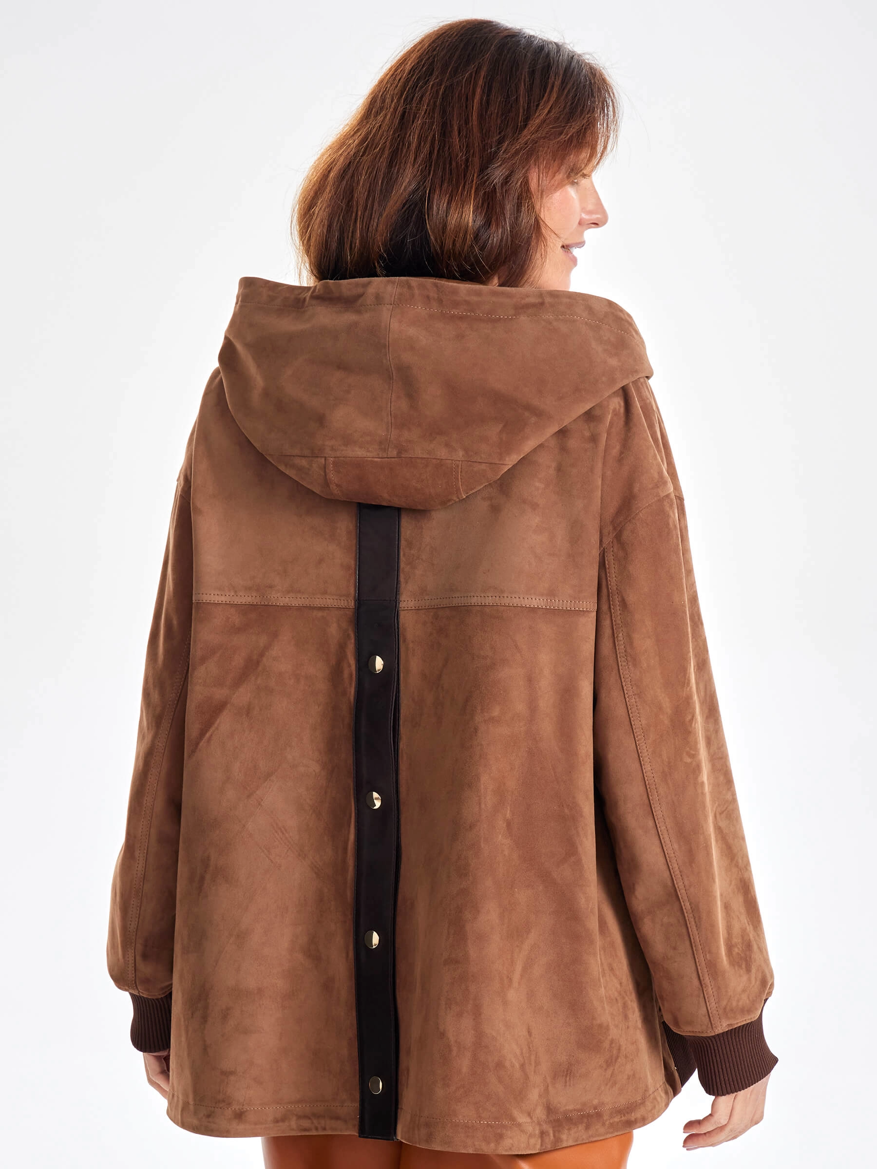 Для пошива удлиненной куртки свободного кроя, мастера использовали тонкую замшу премиум класса.Универсальность данной модели заключается в том, что с ней отлично сочетаются любые предметы вашего гардероба. Великолепная свобода движения, удобный регулируемый капюшон.Трикотажные манжеты добавят комфорта. Дополнением к изделию послужили два нагрудных кармана из гладкой кожи закрывающиеся клапанами.
