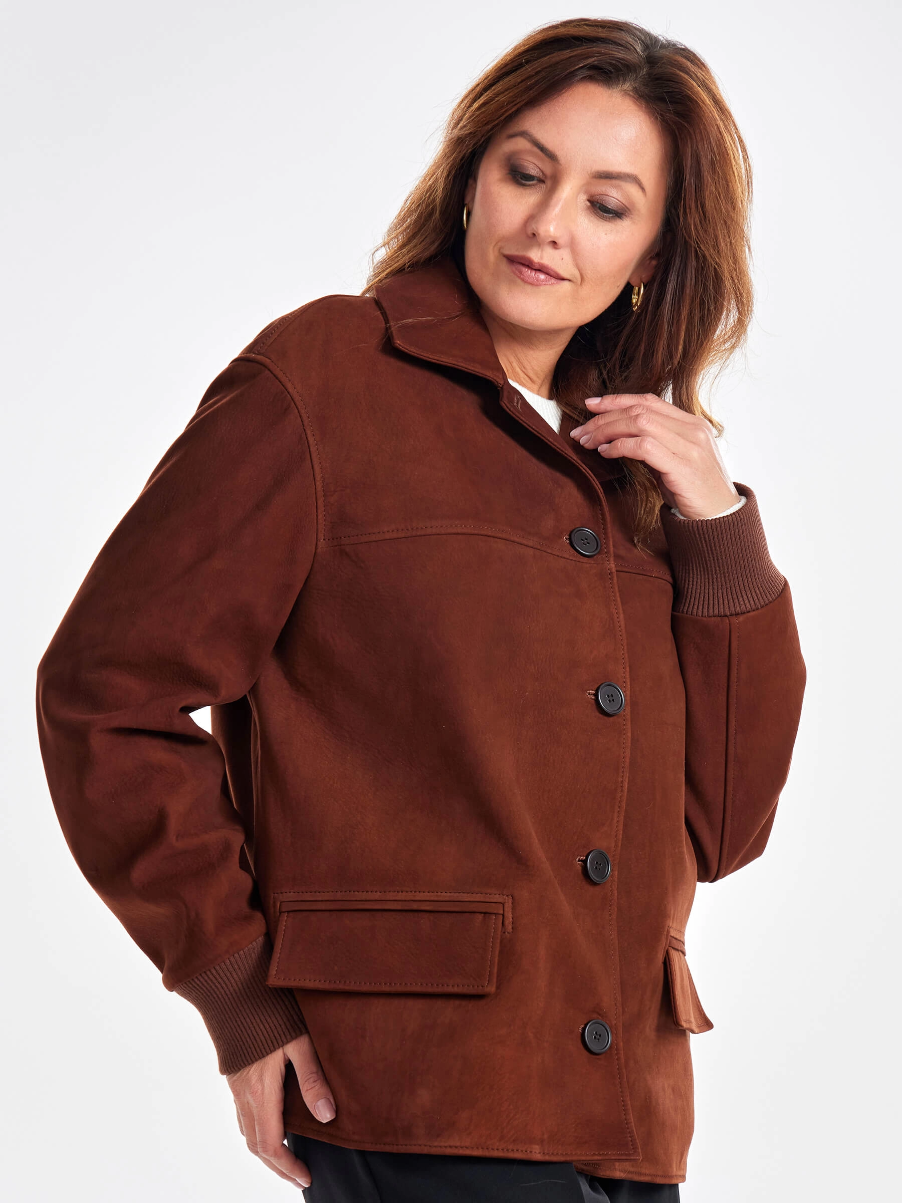 Товар удлиненная женская кожаная куртка бомбер премиум класса 3065, виски, размер 44, артикул 23780 выполнен из натуральной кожи с застежкой пуговицы. Рассчитан на сезон: весна-лето. Длина изделия 70 см, силуэт прямой.