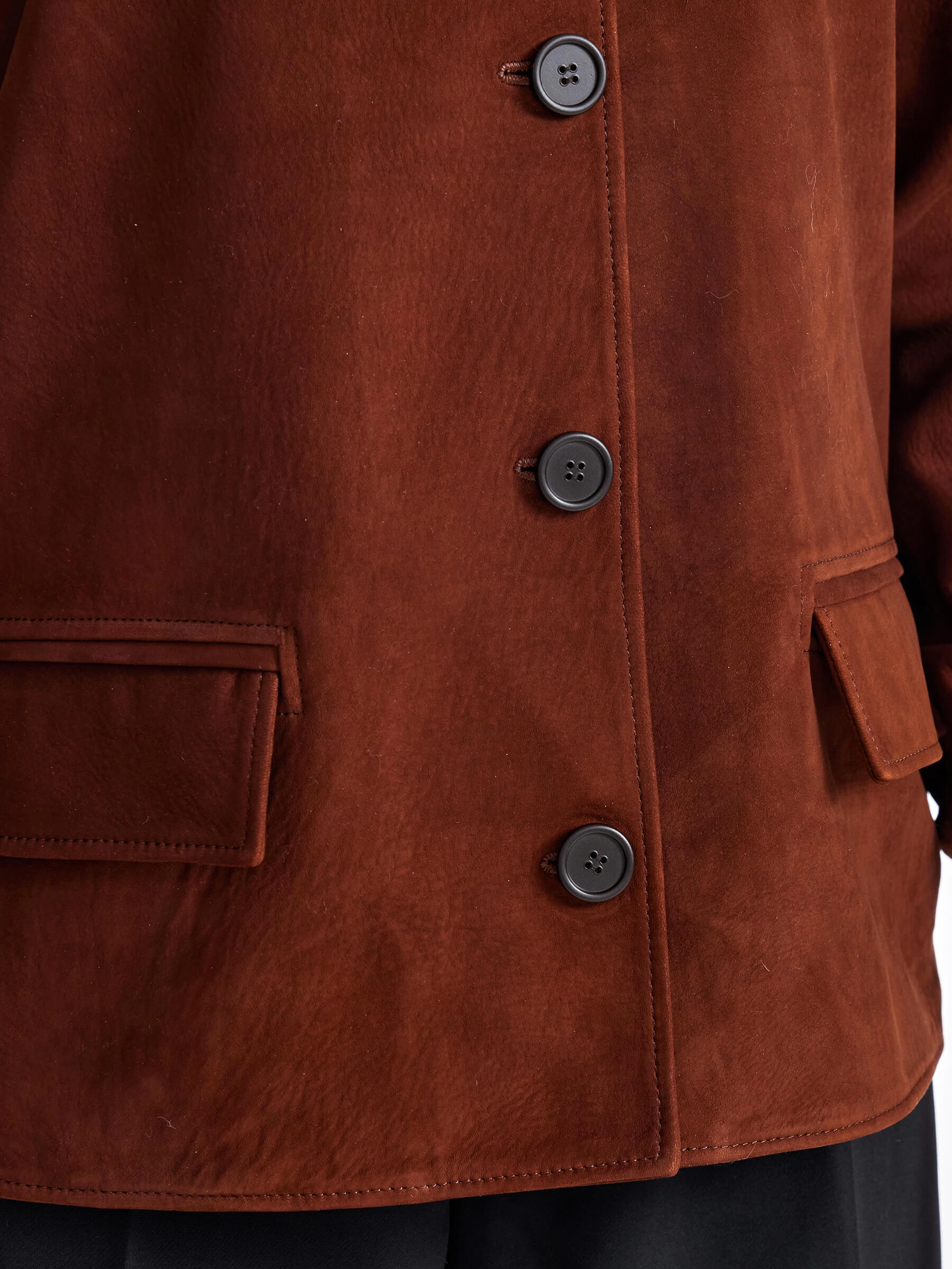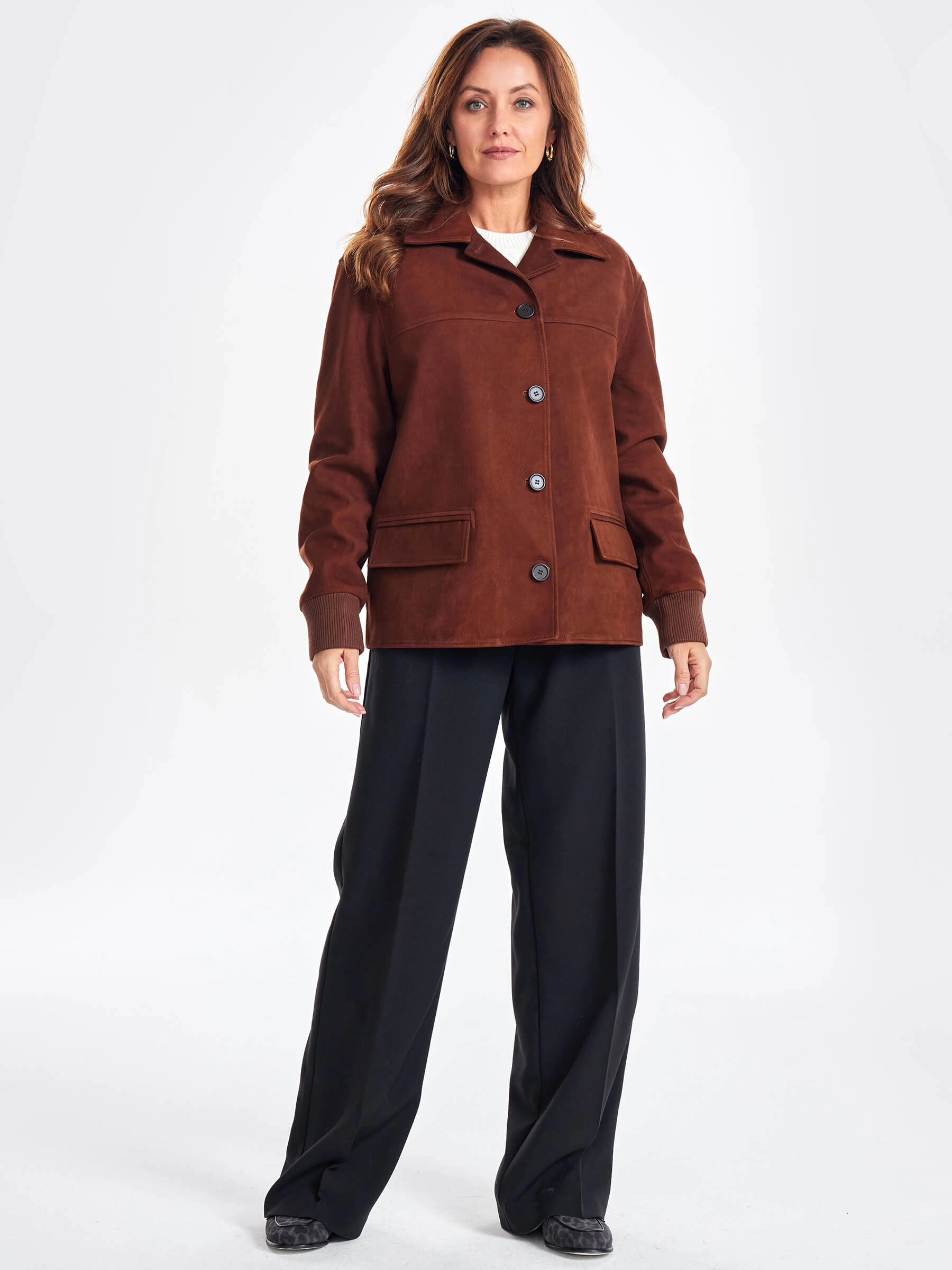 При пошиве этой лаконичной куртки с английским воротником и двумя карманами использовали мягкую кожу премиум класса. Модель свободного силуэта, со спущенной линией плеч не сковывает движения, удобно садится по фигуре. Дополнительный комфорт добавят трикотажные манжеты и пояс. Классический дизайн изделия будет одинаково гармонично смотреться как с брюками так и с платьем.