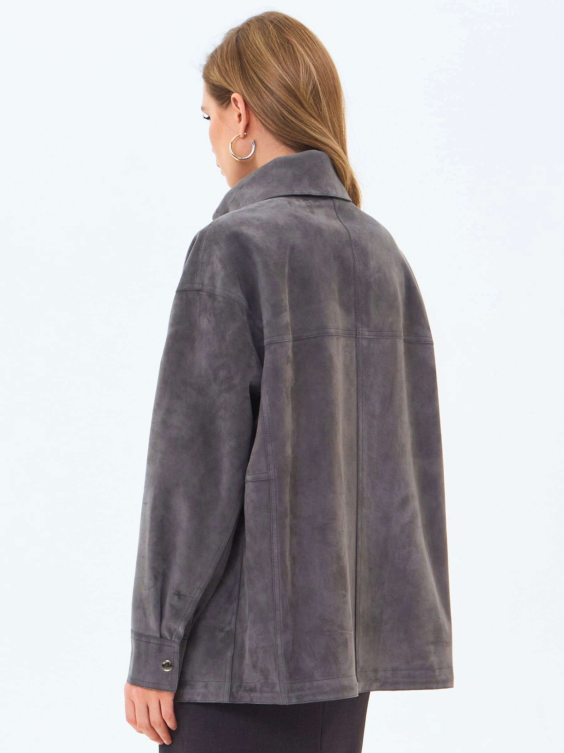Удлиненная женская замшевая куртка премиум класса 3084з, серая, размер 46, артикул 24680