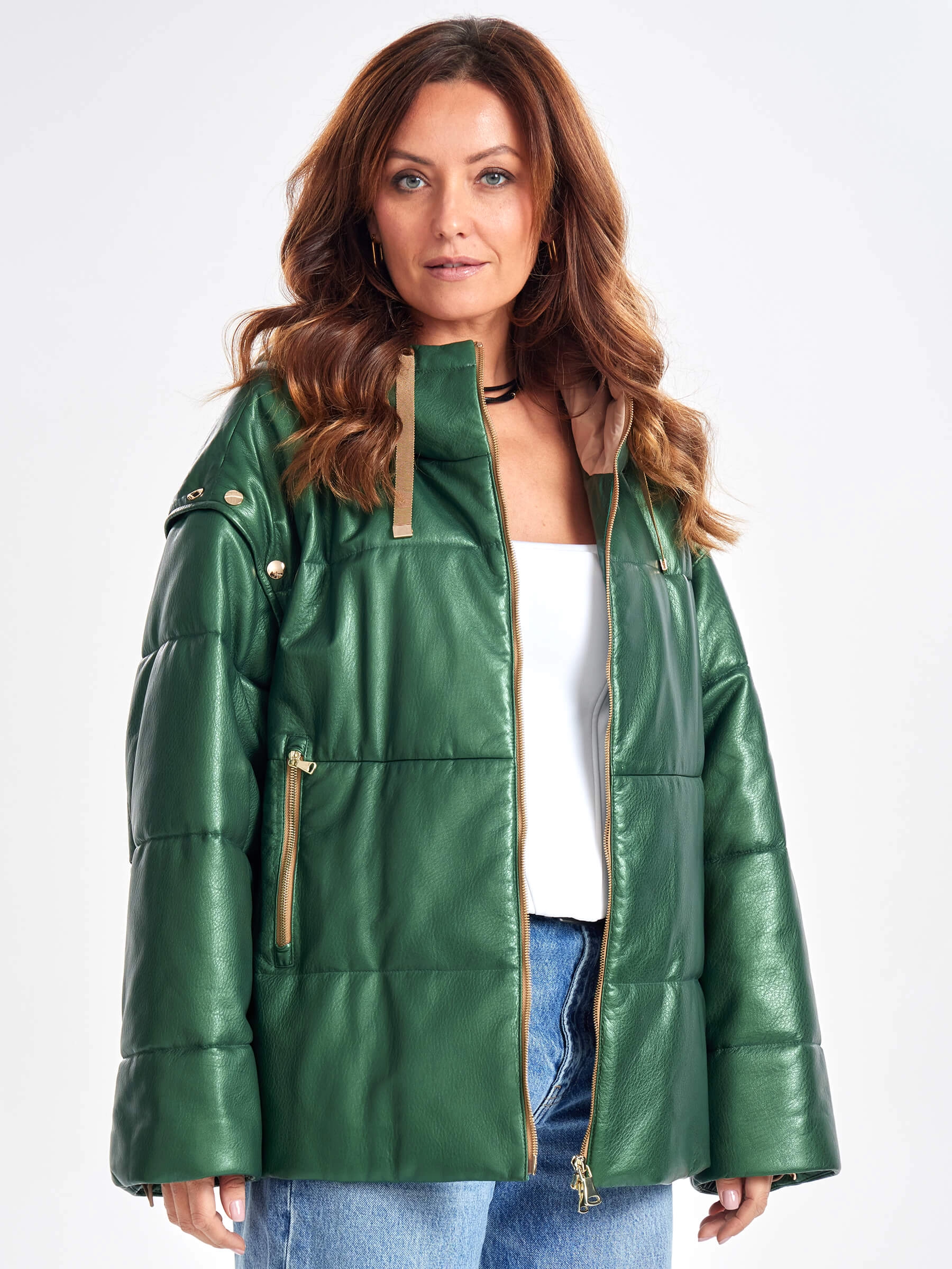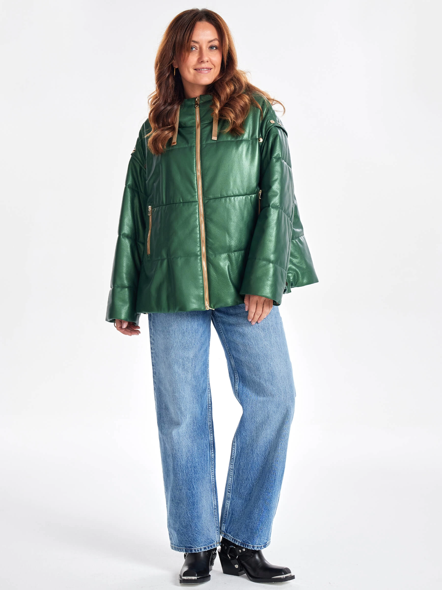 Кожаный пуховик в спортивном стиле — это универсальное и технологичное решение «два в одном» для переменчивой погоды. Его свободный оверсайз-силуэт с рукавами спущенного плеча и укороченной длиной (51-74 см) создаёт модный уличный образ. Отстёгивающиеся рукава позволяют легко трансформировать куртку в утеплённый жилет, адаптируя её под разные задачи и температурные условия. Модель из натуральной кожи яркого оттенка дополнена практичным несъёмным капюшоном и надёжной застёжкой-молнией. Пуховик утеплён высококачественным немецким синтепоном Freudenberg, который гарантирует отличную теплоизоляцию, превосходную паропроницаемость и простой уход. Лаконичный дизайн без отделки и удобная подкладка завершают образ, делая эту модель стильным, функциональным и комфортным выбором для межсезонья и зимы.
