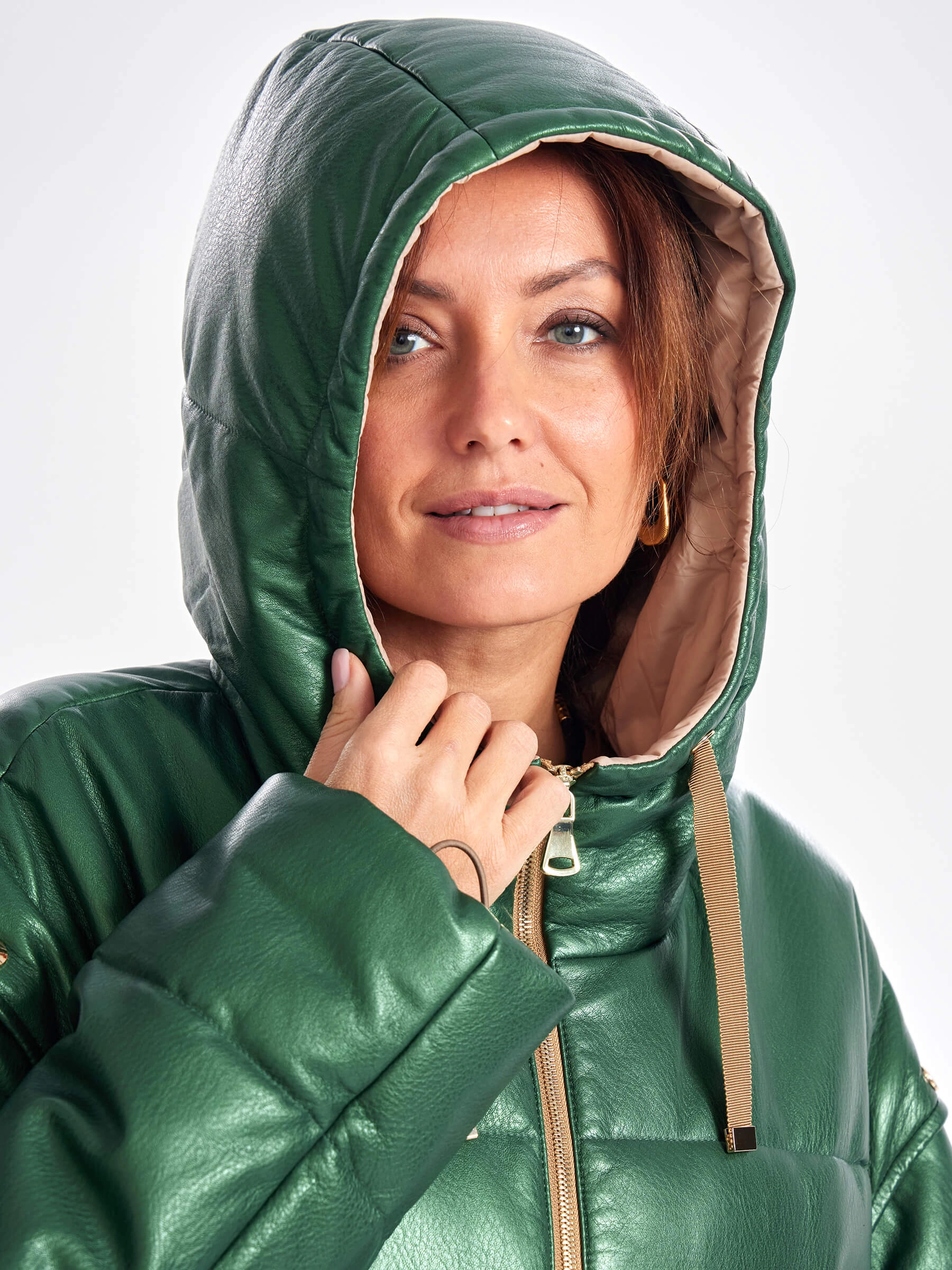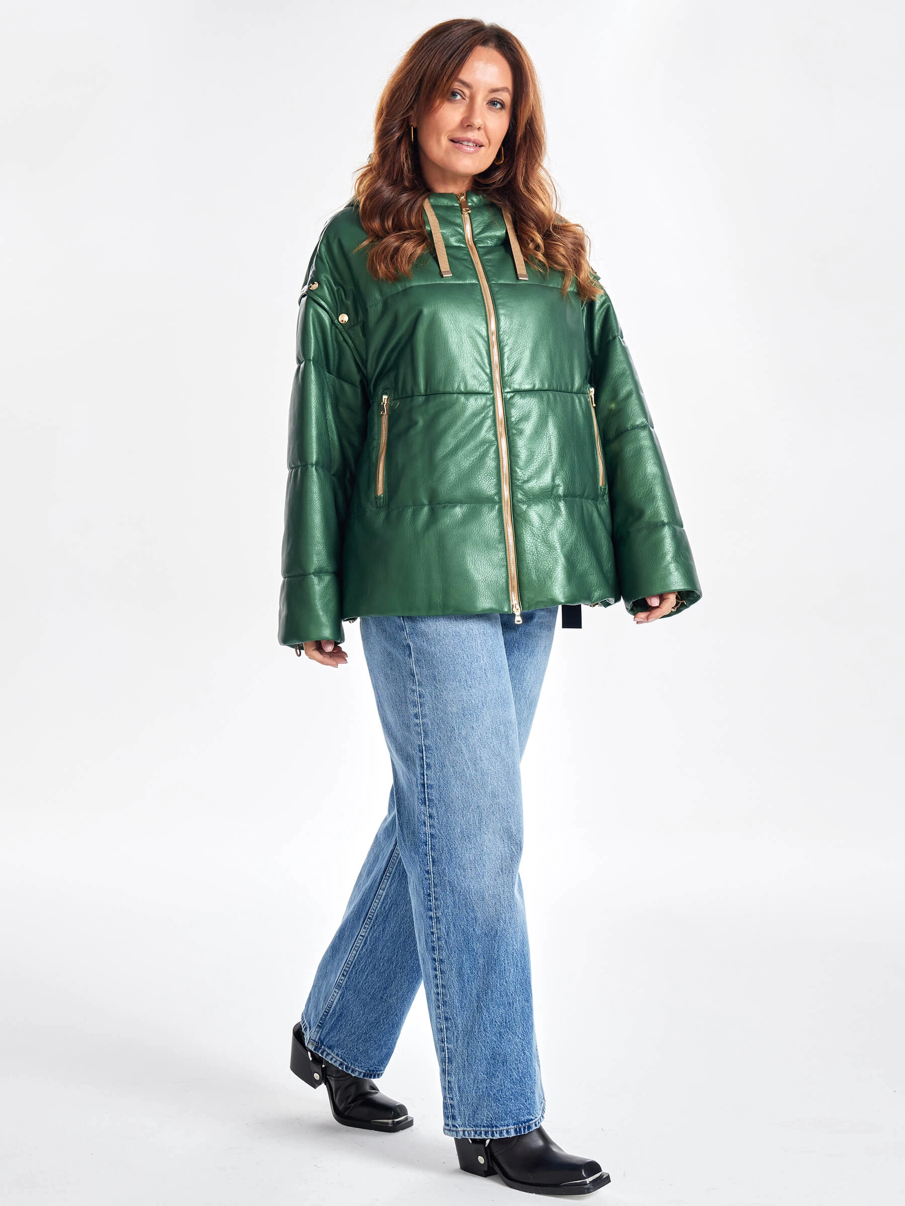 Товар утепленная женская кожаная куртка оверсайз с капюшоном премиум класса 3023, зеленая, размер 52, артикул 23330 выполнен из натуральной кожи с застежкой молния. Рассчитан на сезон: демисезон. Длина изделия 51-74 см, силуэт свободный.