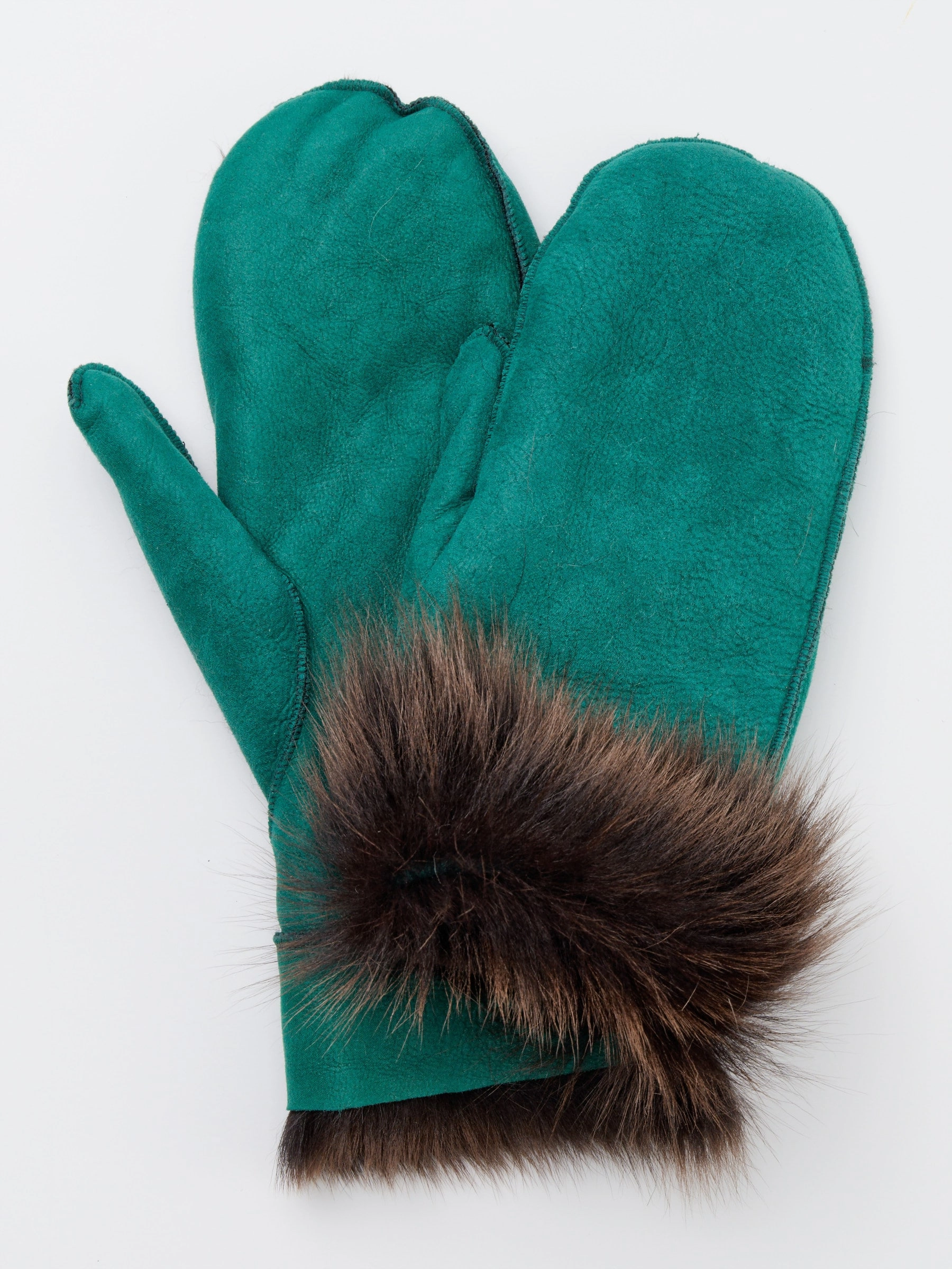 Варежки из овчины меховой женские, зеленые, размер One Size, артикул 20370