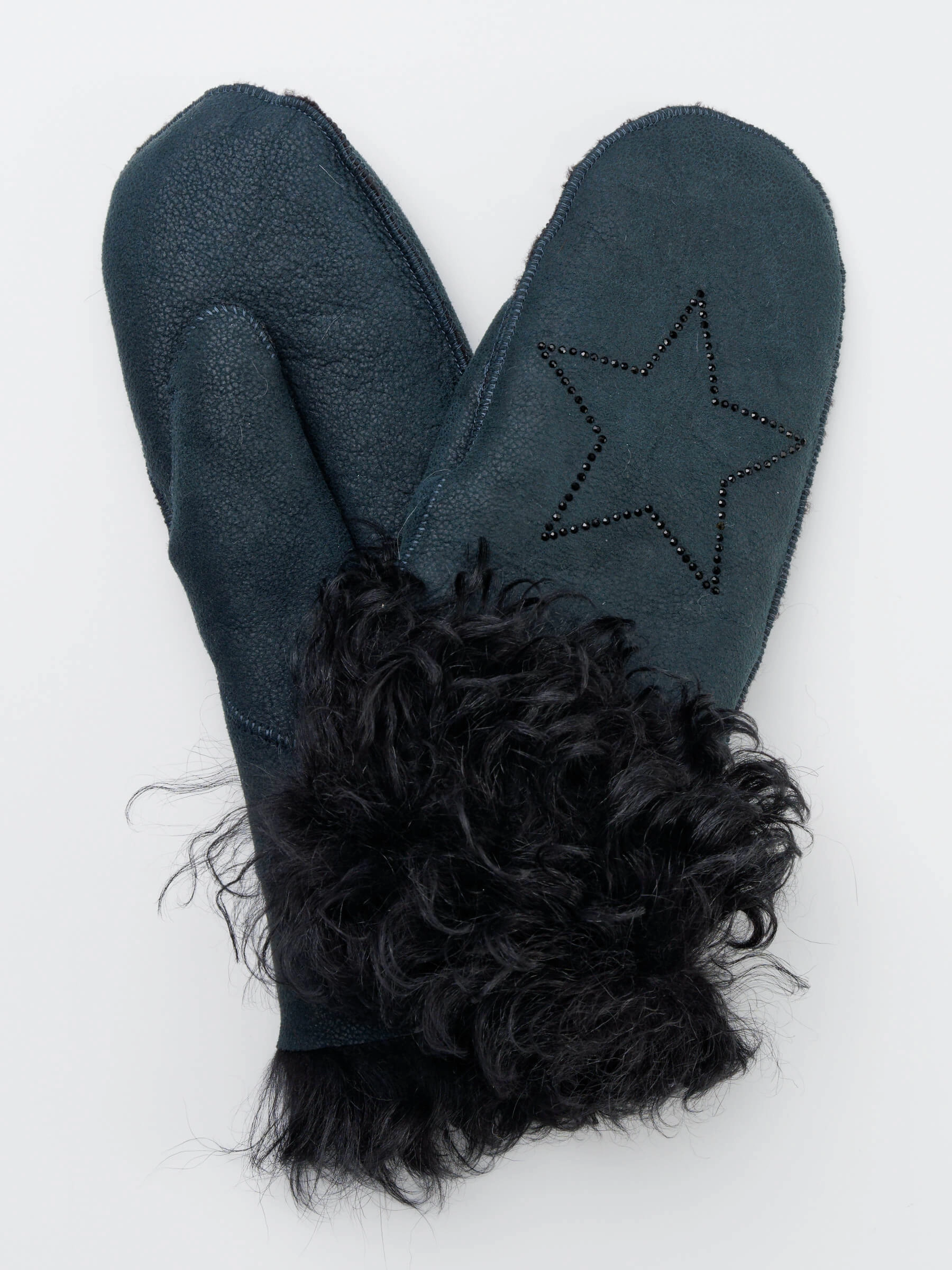Варежки из овчины меховой женские, синие, размер One Size, артикул 20340