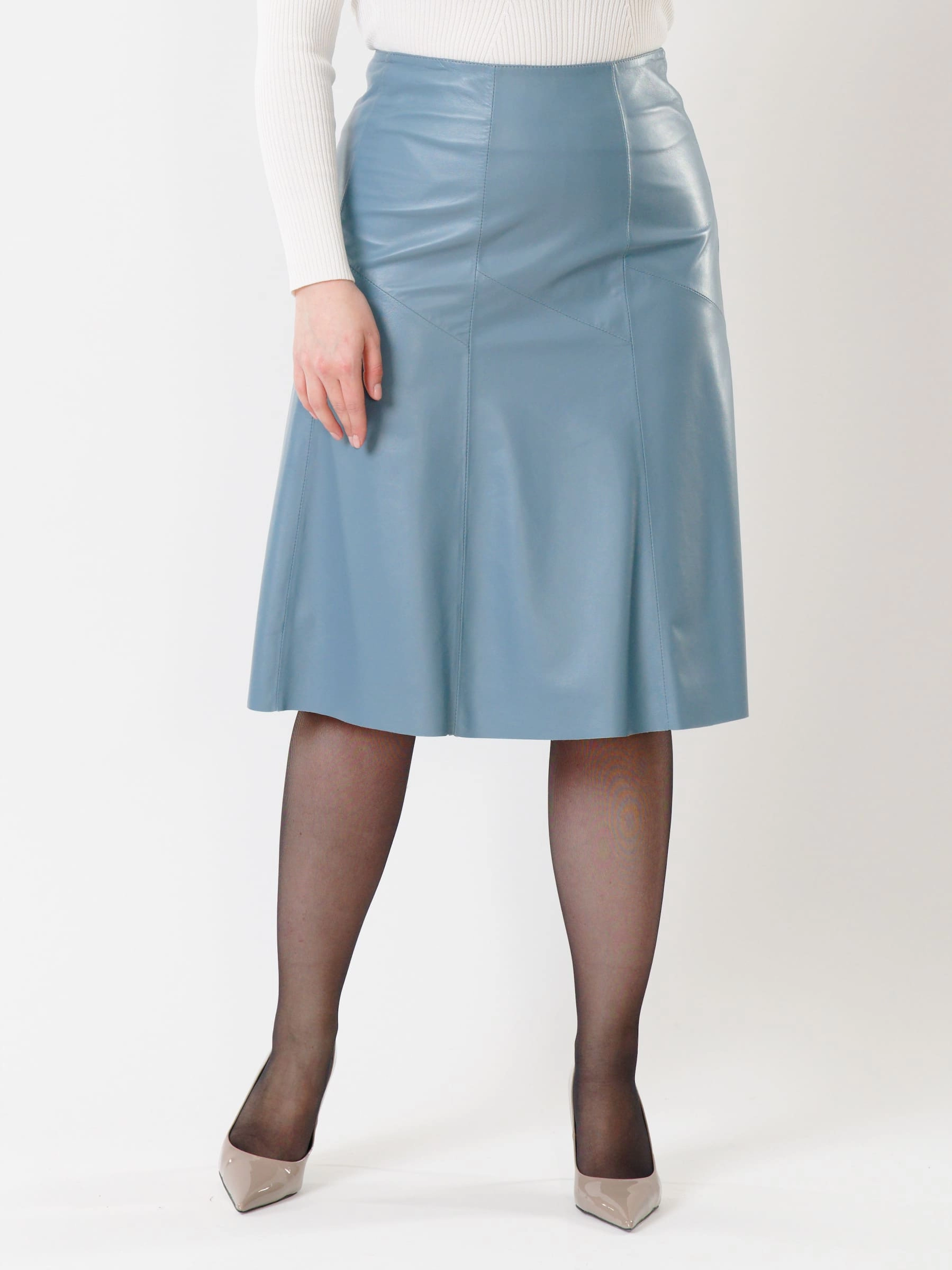 Товар расклешенная кожаная юбка 04, голубая, размер 48, артикул 85410 выполнен из натуральной кожи с застежкой молния. Рассчитан на сезон: демисезон. Длина изделия 68 см, силуэт расклешенный.