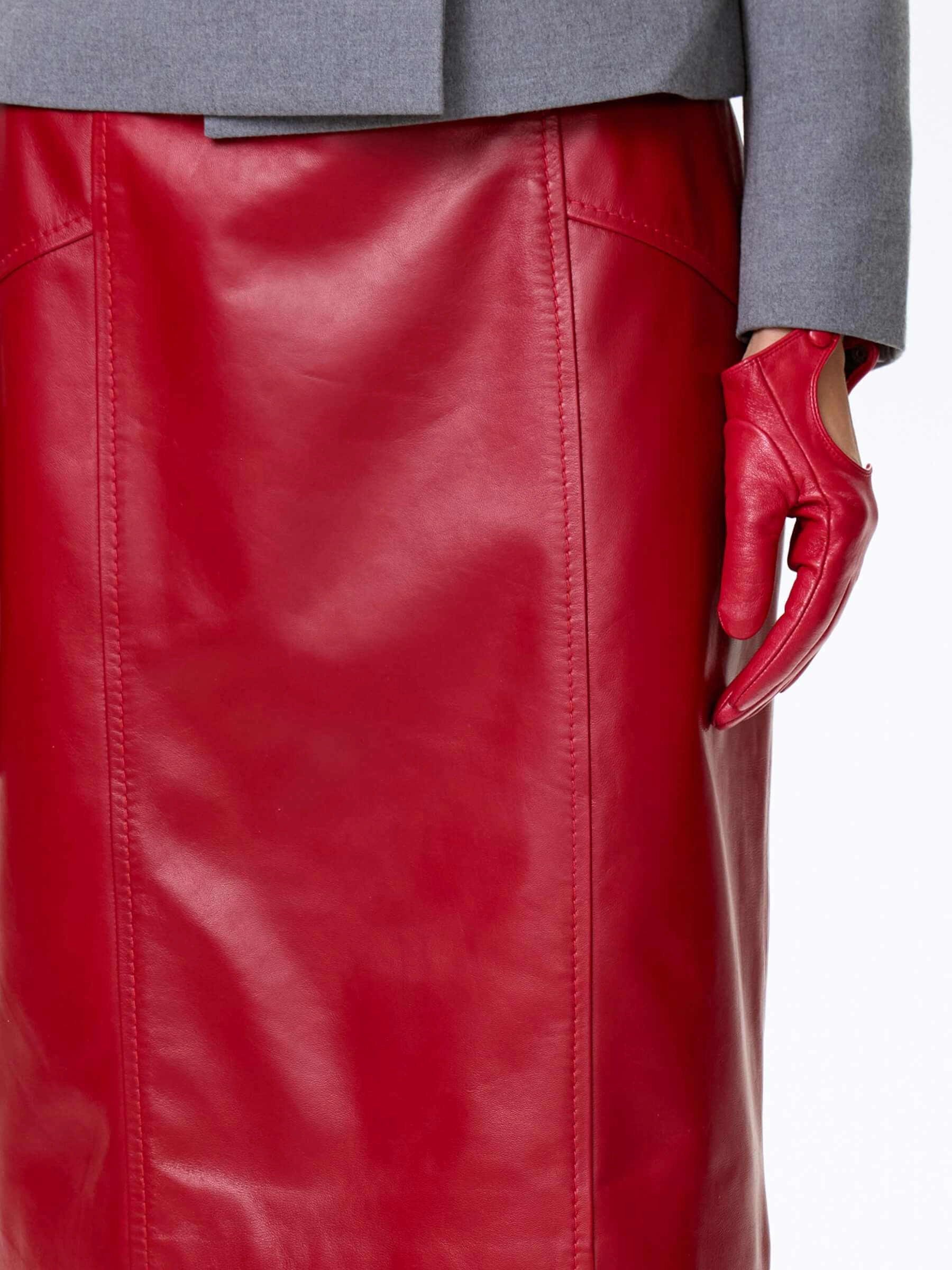 Юбка карандаш из натуральной кожи 06, красная, размер 46, артикул 85380