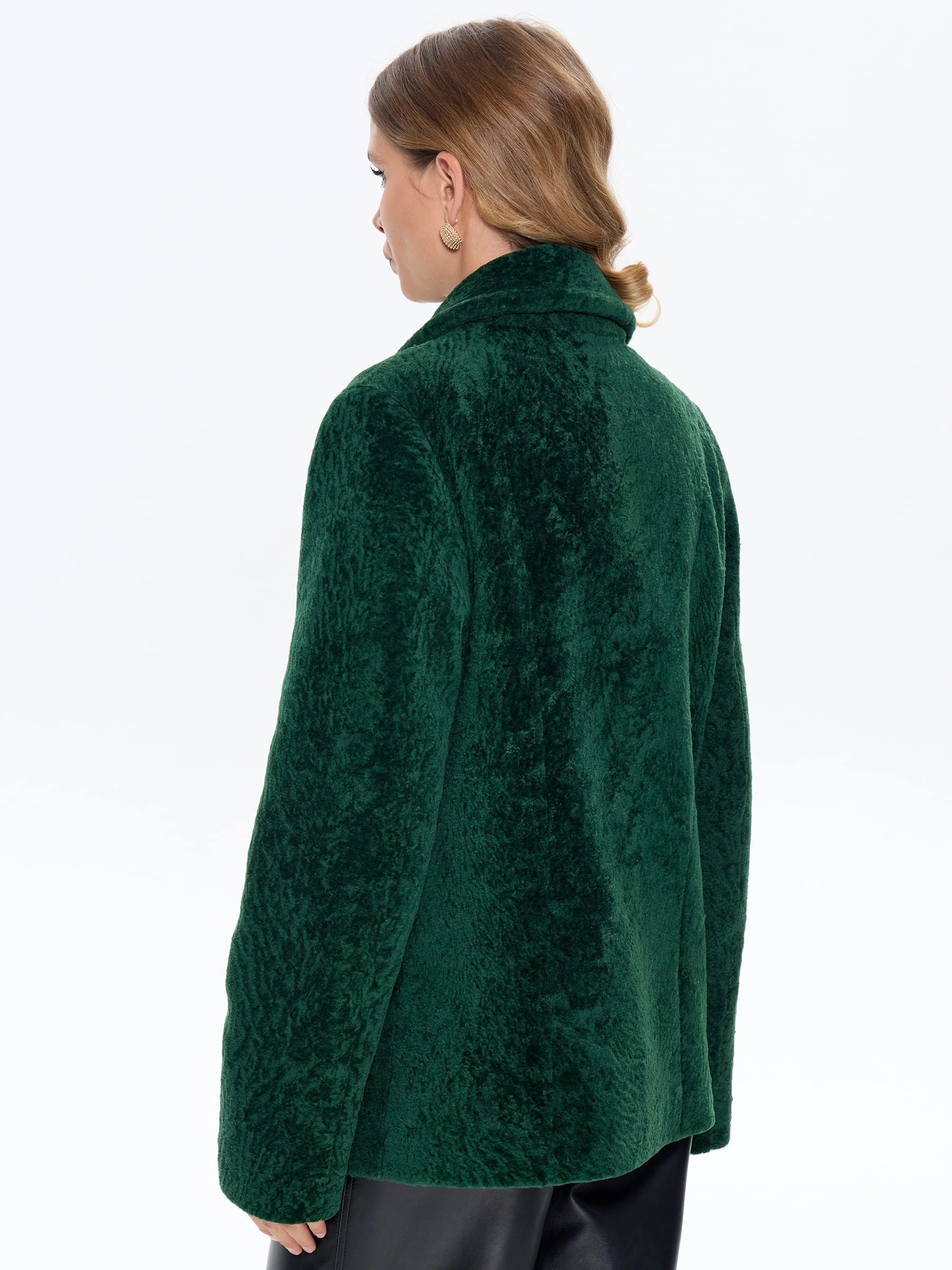 Зеленая дубленка из астрагана 58мех, размер 46, артикул 64760