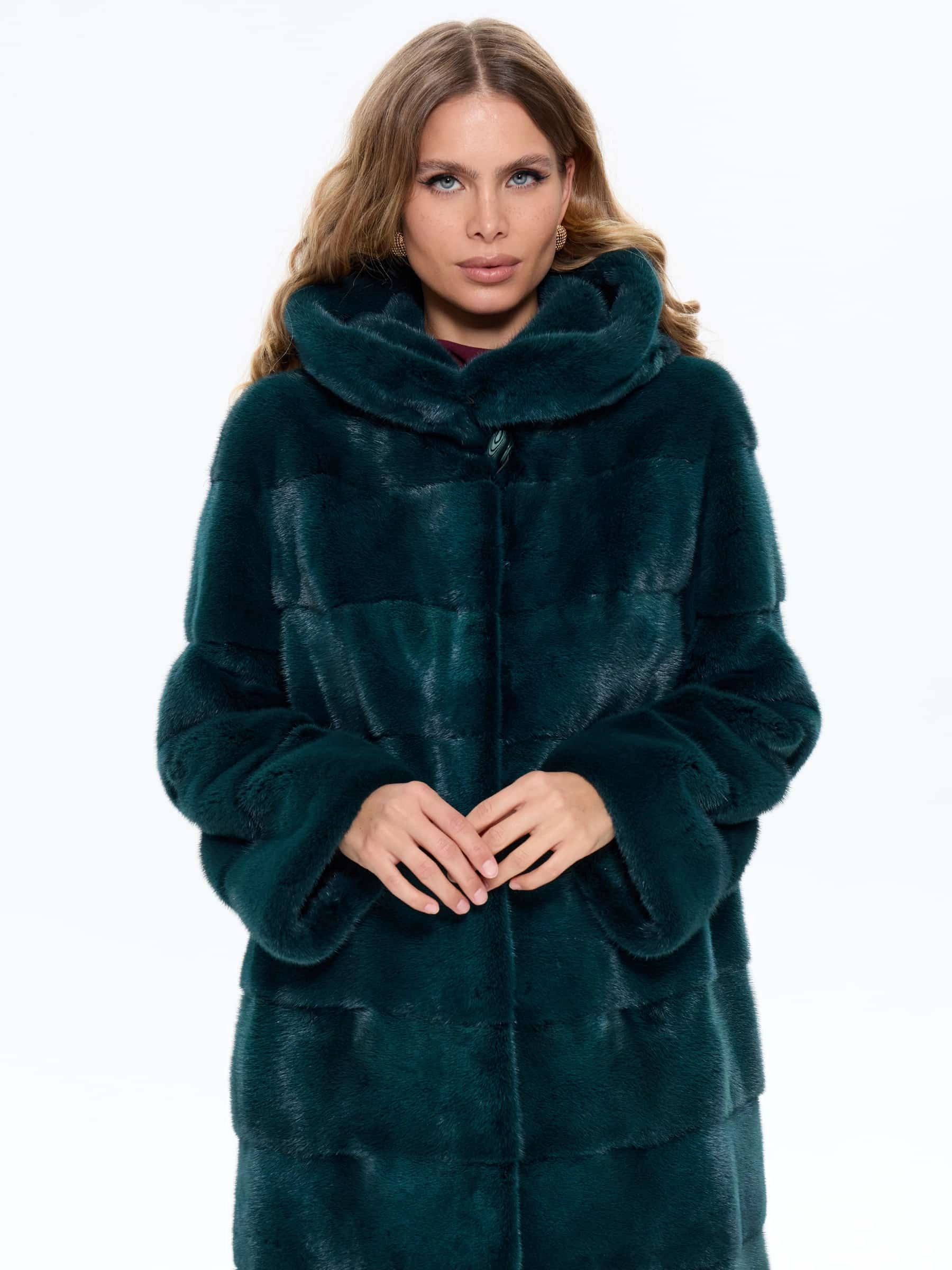 Товар зеленая норковая женская шуба с капюшоном 2а(к), размер 50, артикул 65490 выполнен из мех норки с застежкой клипсы. Рассчитан на сезон: зима. Длина изделия 110 см, силуэт прямой.
