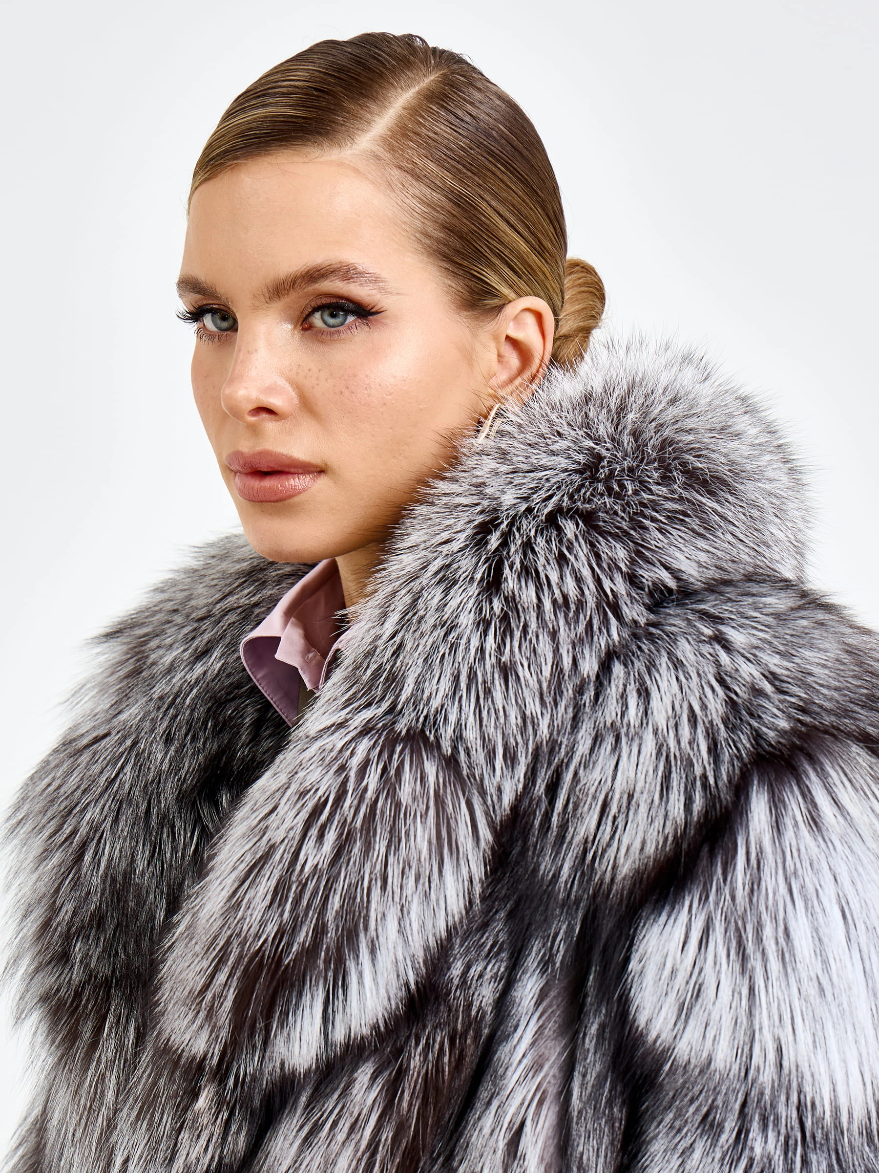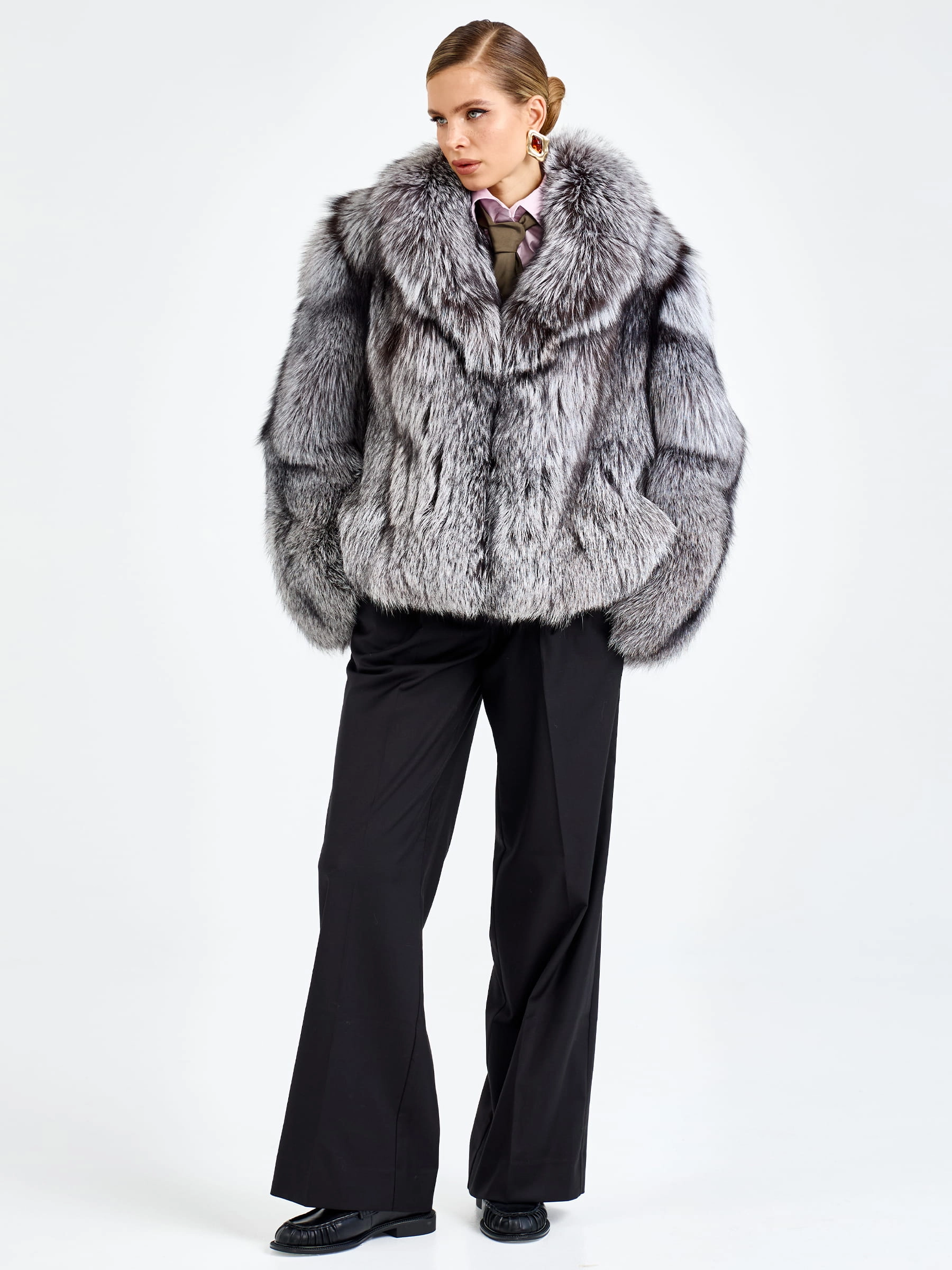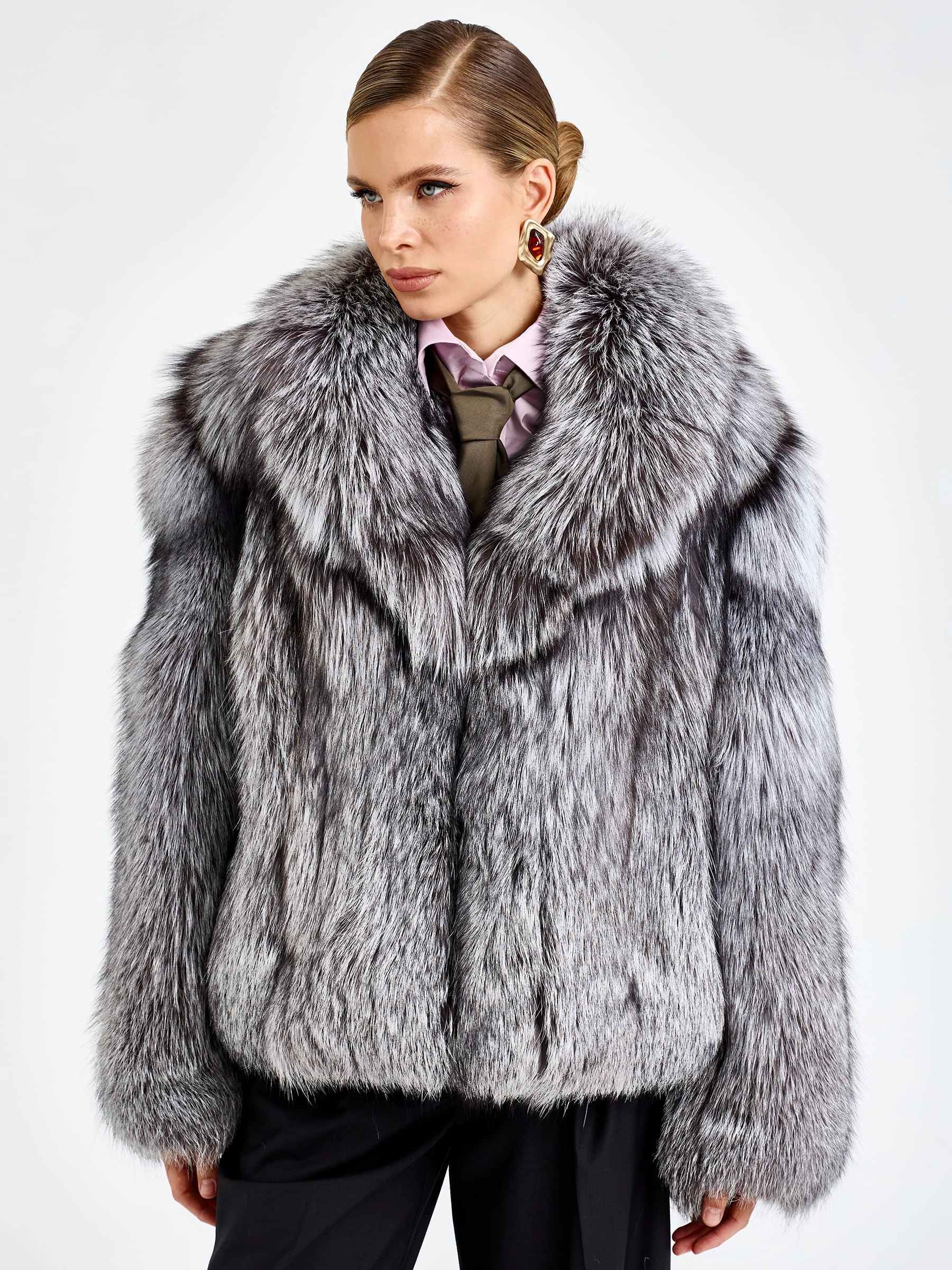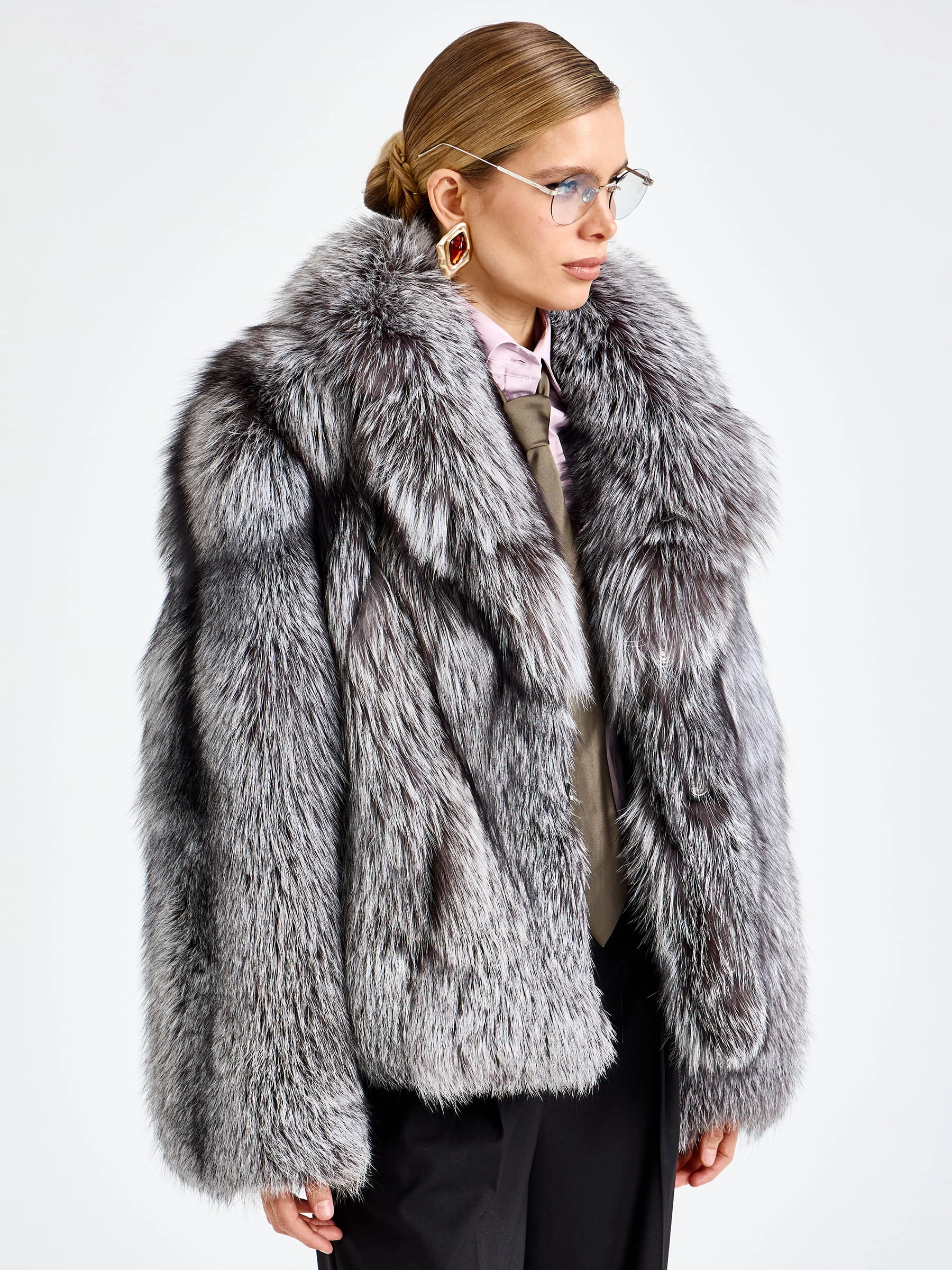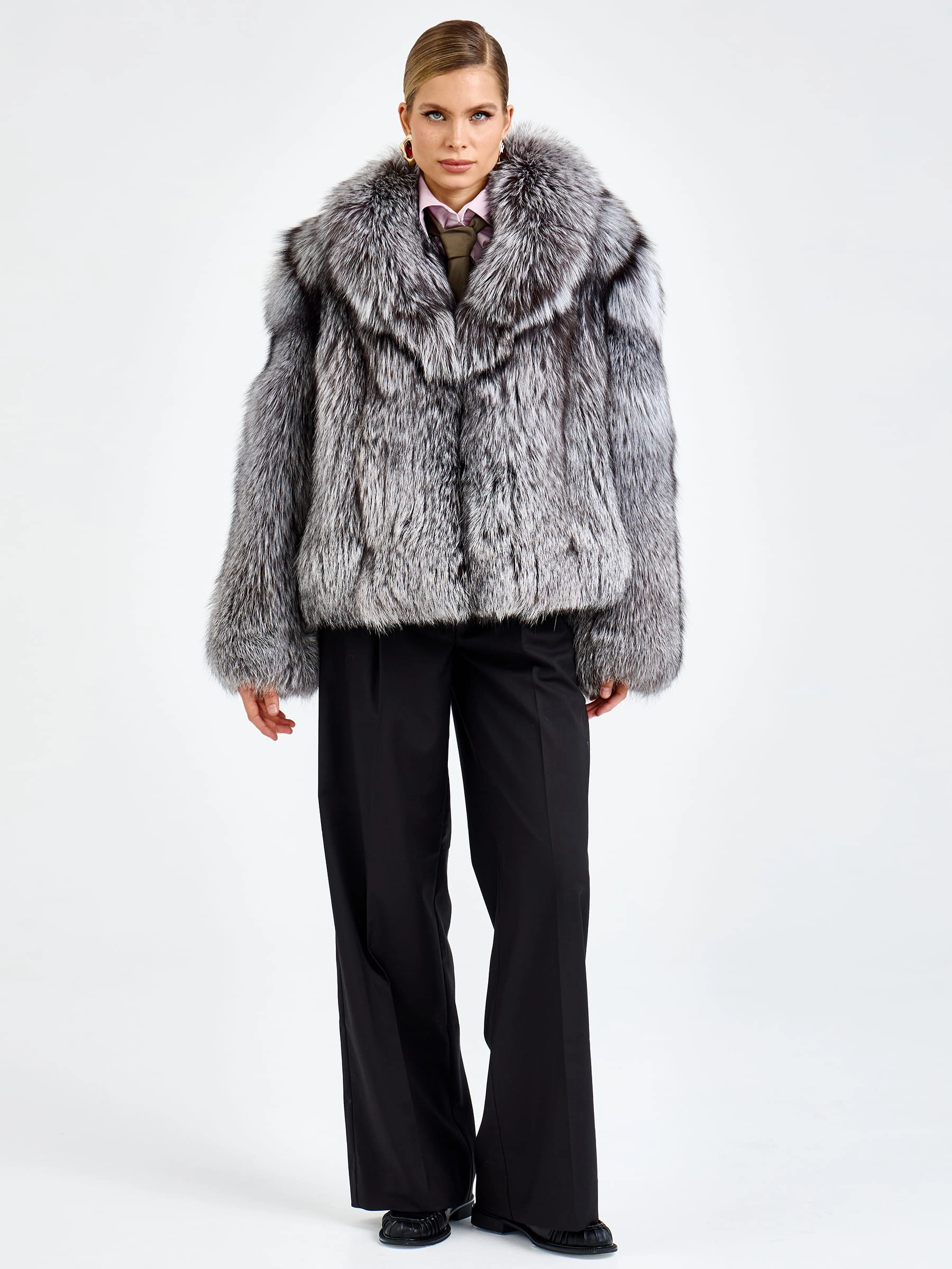 Женская короткая шуба из меха лисы Л1010-1045, серебристо-чёрная, размер 46, артикул 65500