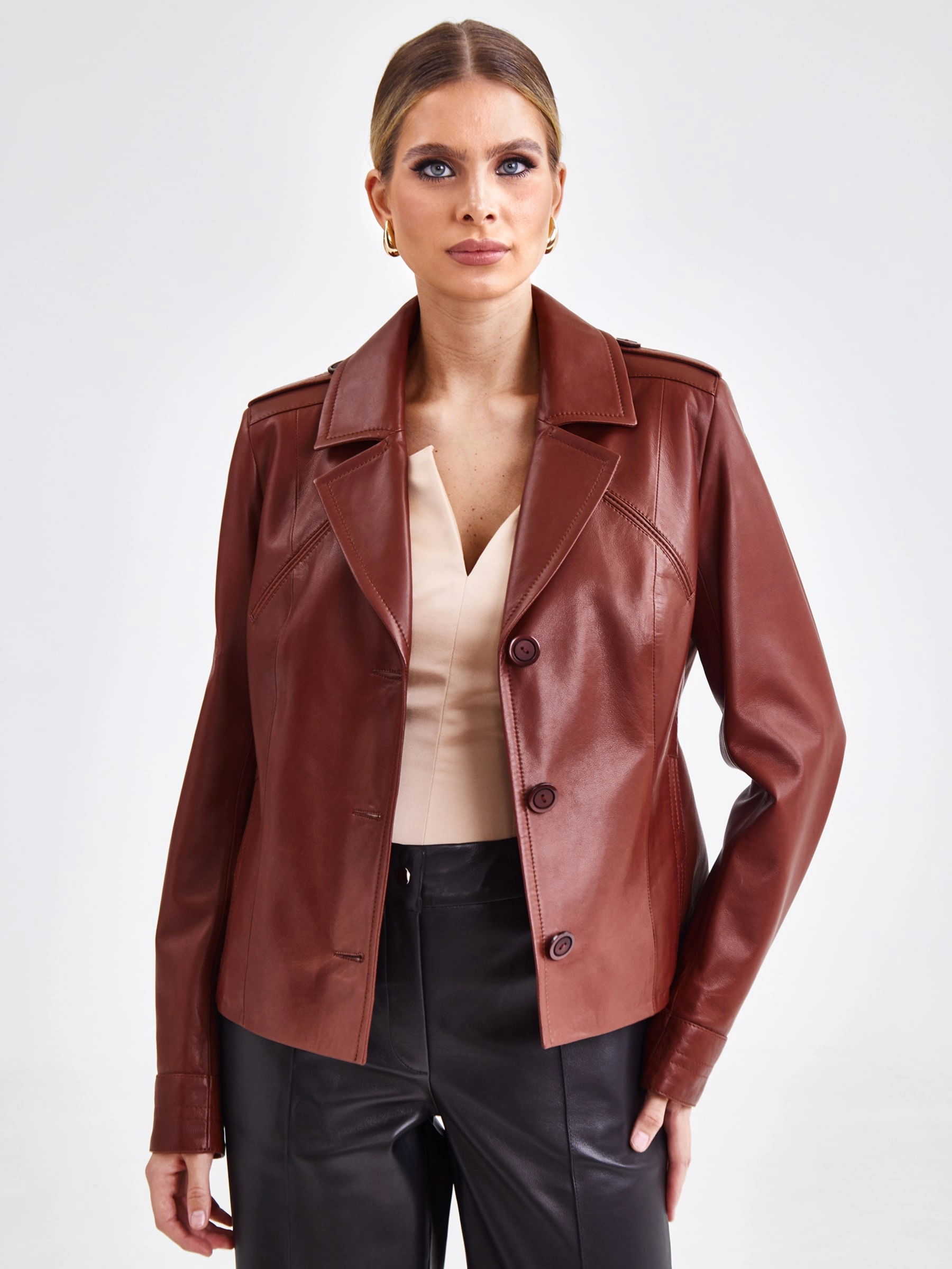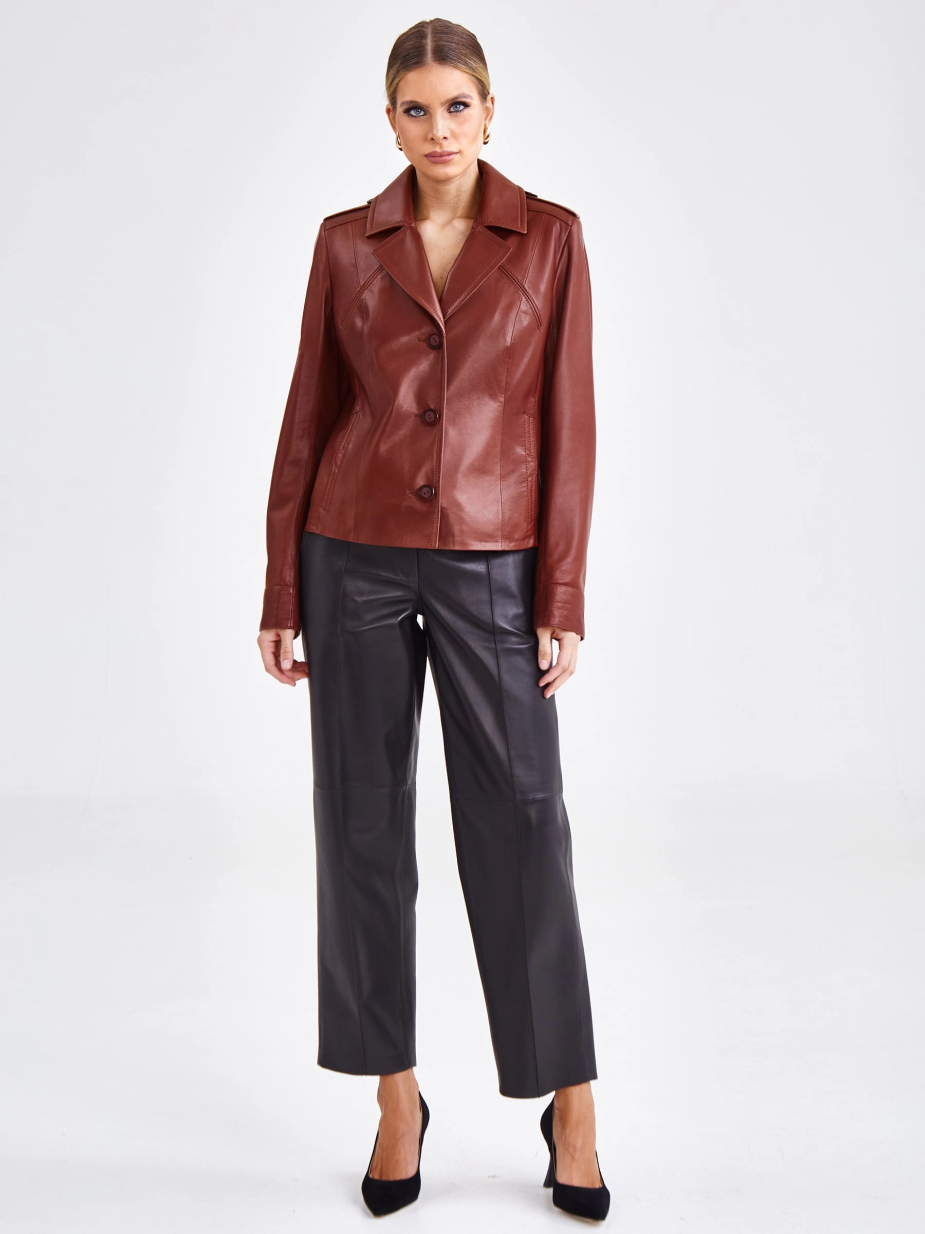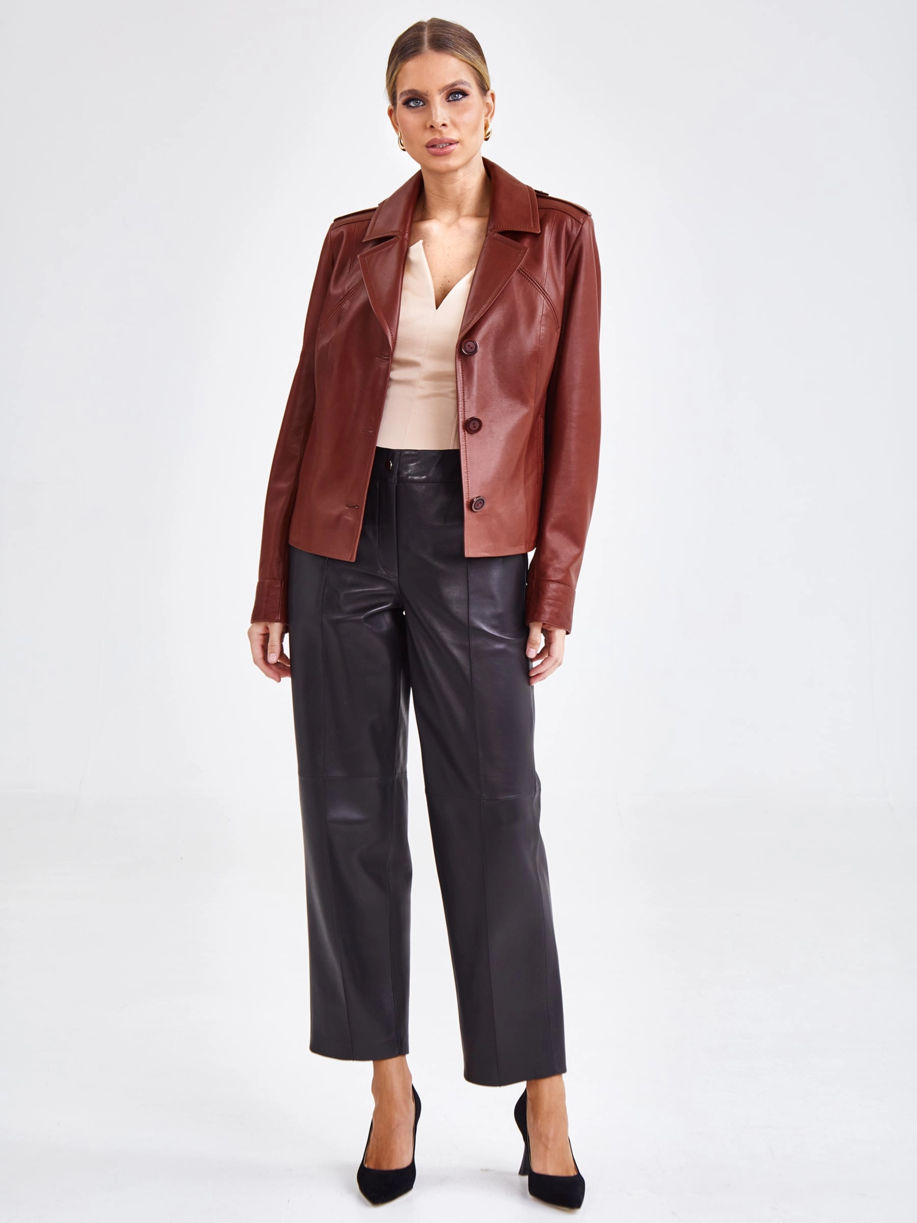 Короткая женская кожаная куртка на пуговицах премиум класса 304н, виски, размер 46, артикул 23320