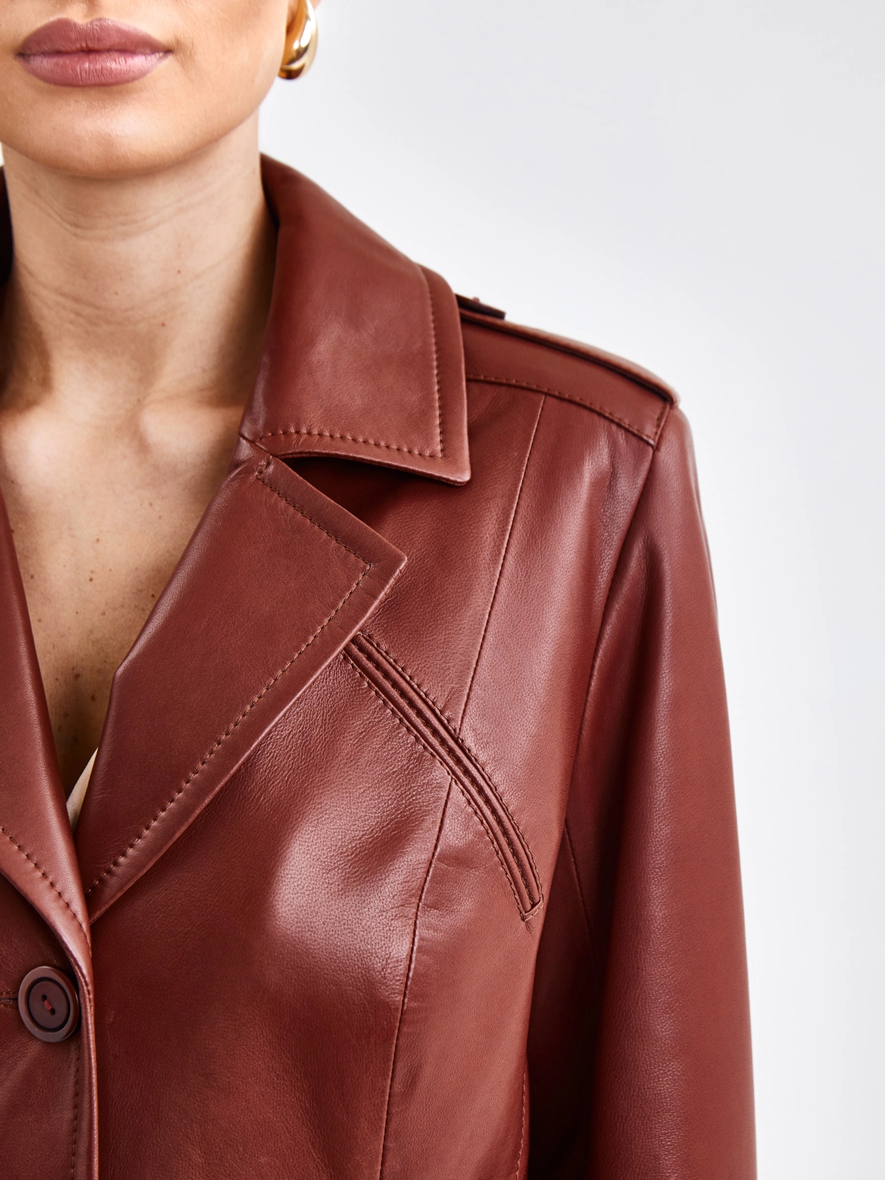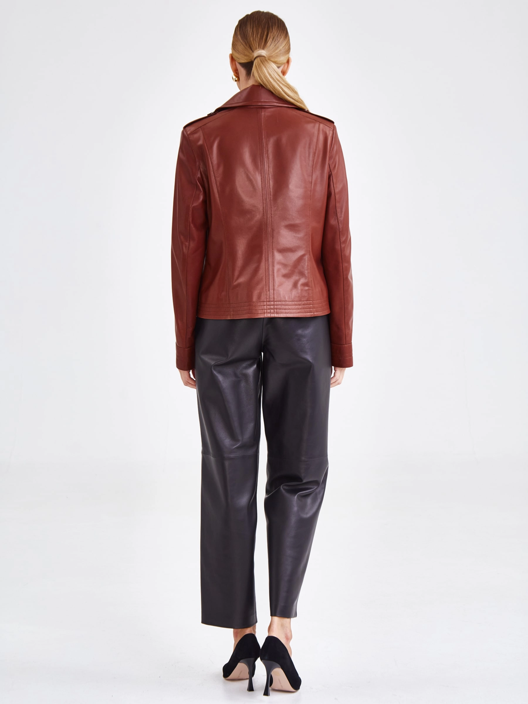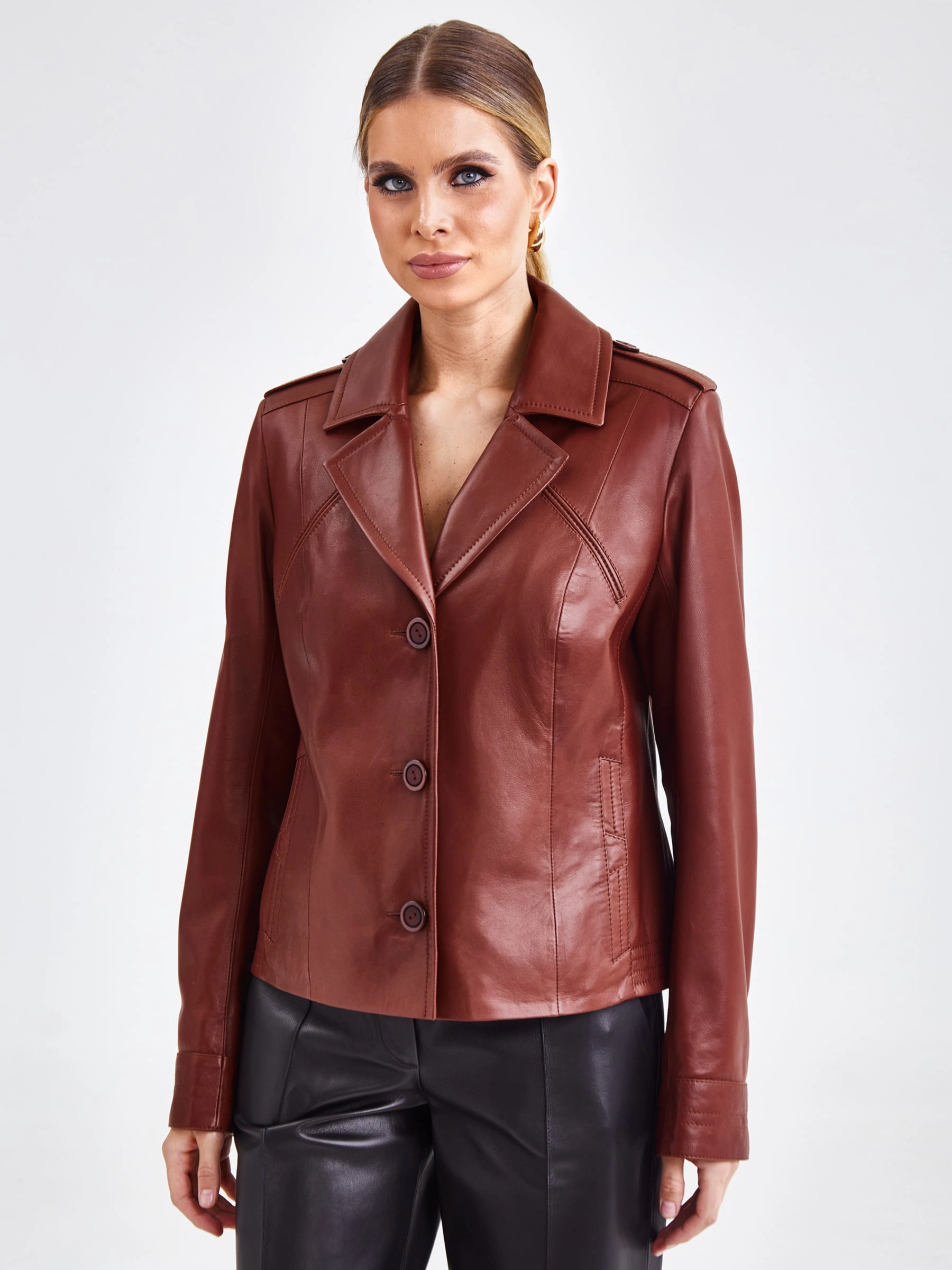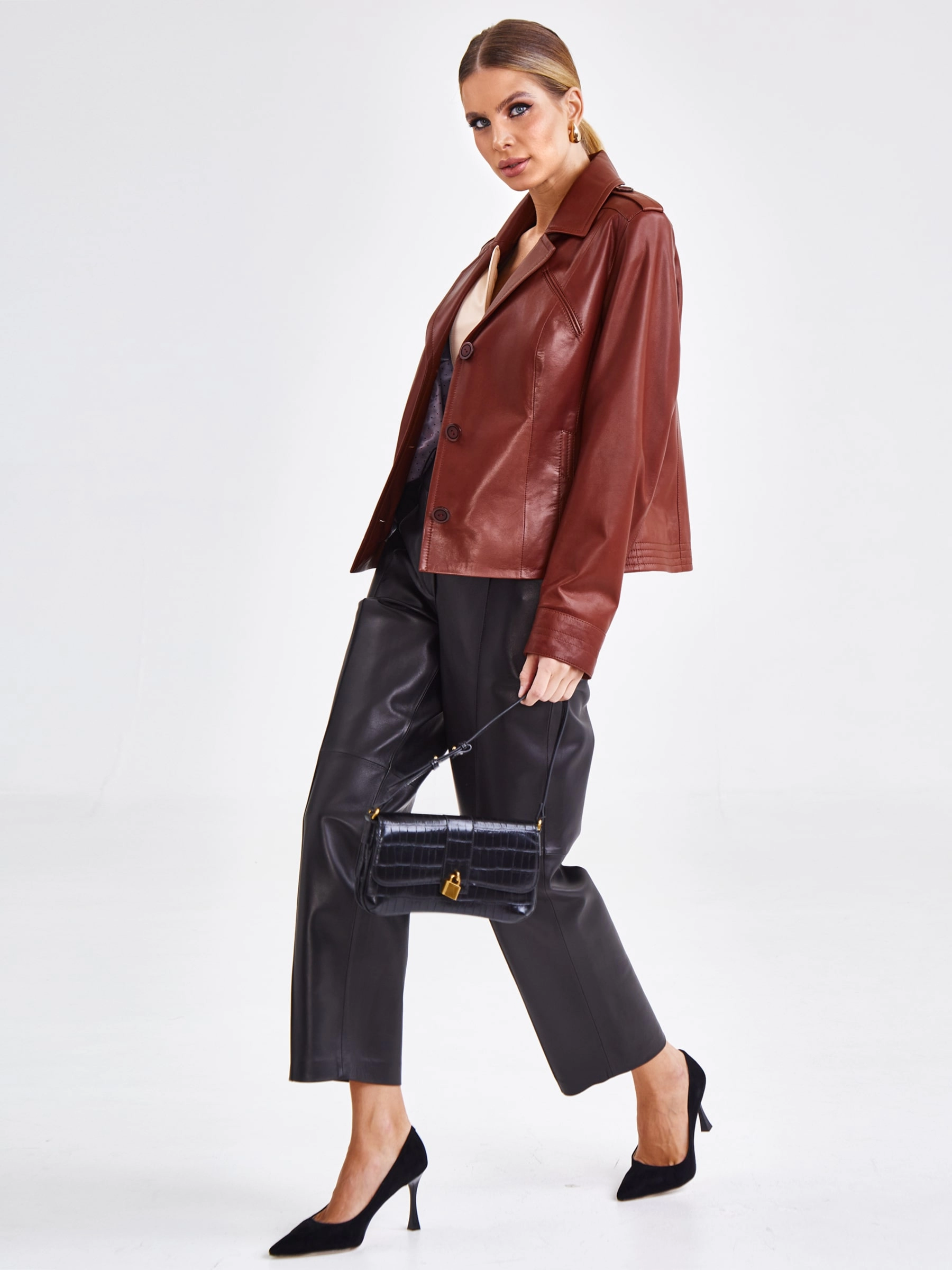 Короткая женская кожаная куртка на пуговицах премиум класса 304н, виски, размер 46, артикул 23320