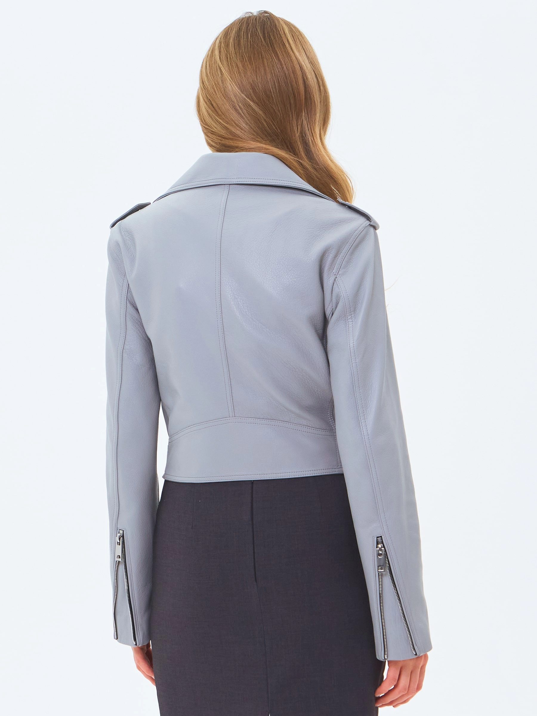 Женская кожаная куртка косуха с поясом премиум класса 3080, серая, размер 42, артикул 24530