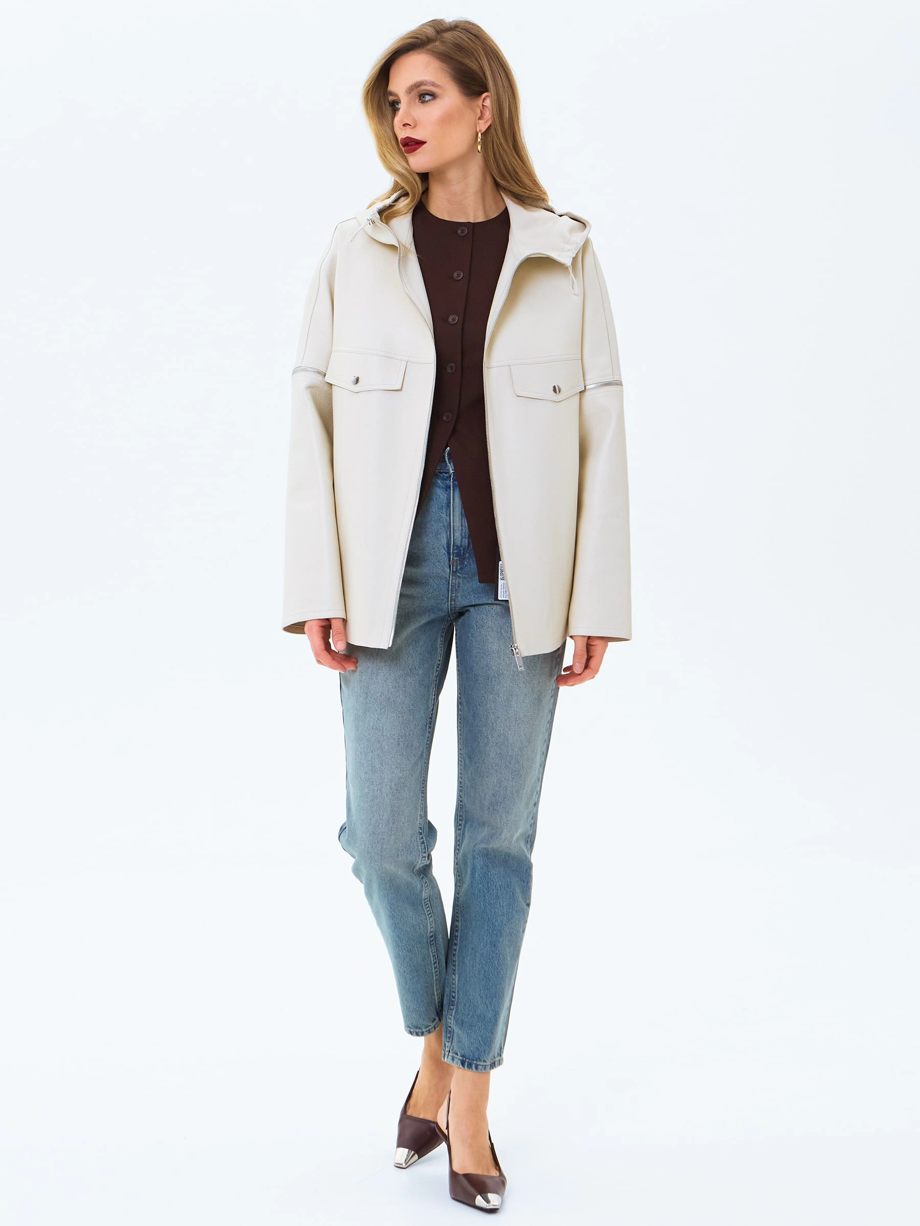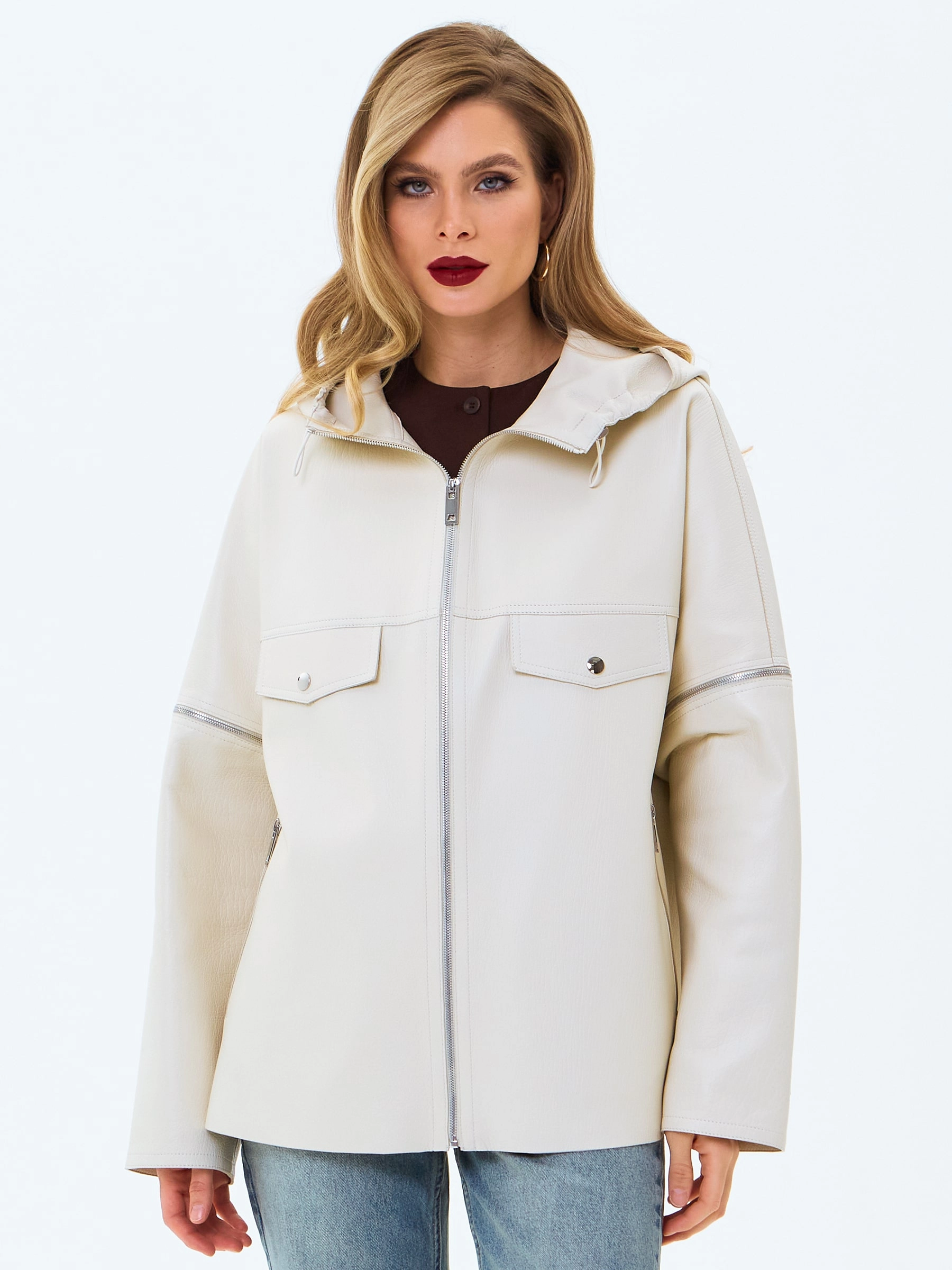 Товар женская кожаная куртка премиум класса 3086, бежевая, размер 46, артикул 24470 выполнен из натуральной кожи с застежкой молния. Рассчитан на сезон: весна-лето. Длина изделия 68 см, силуэт свободный.
