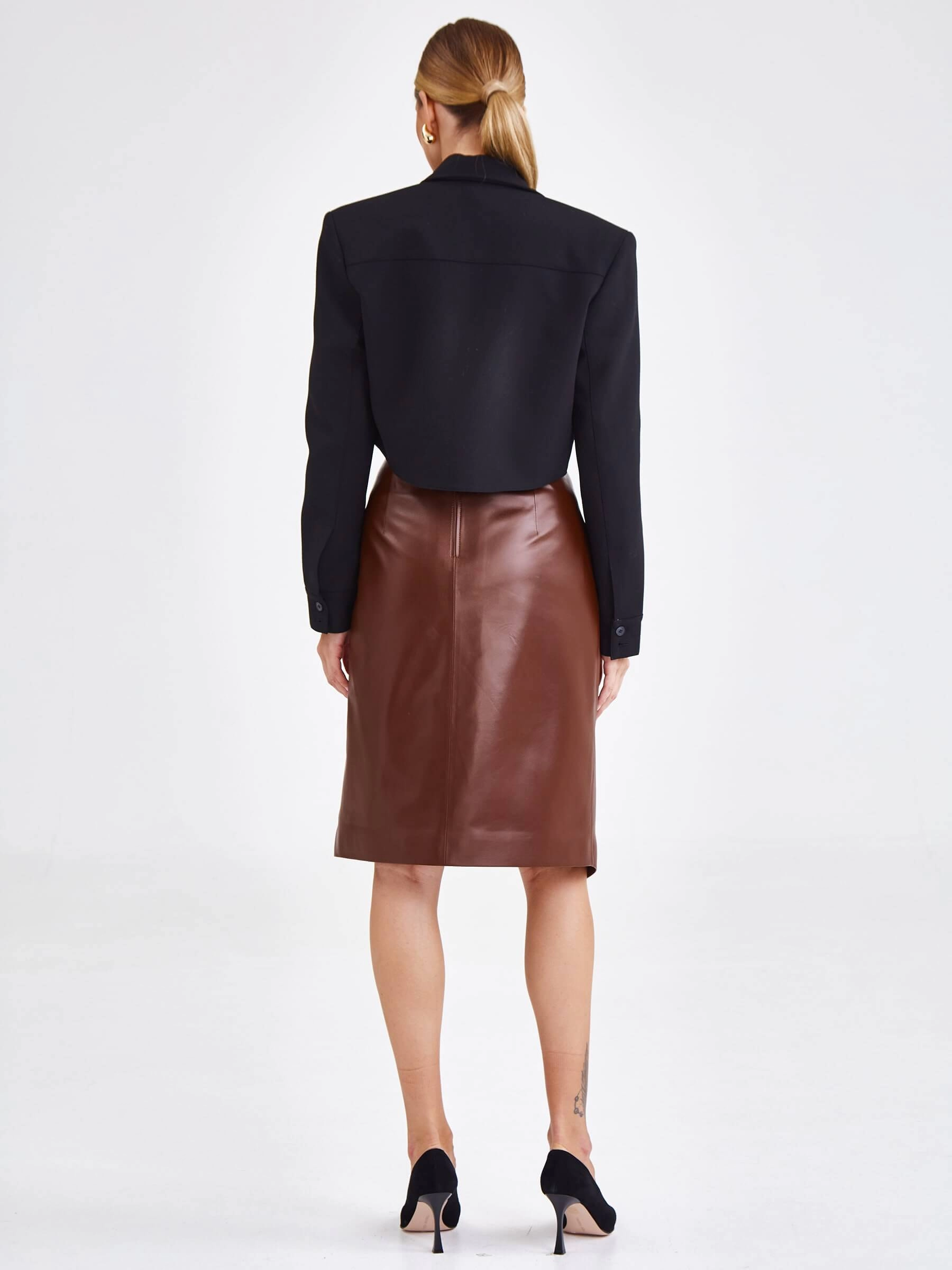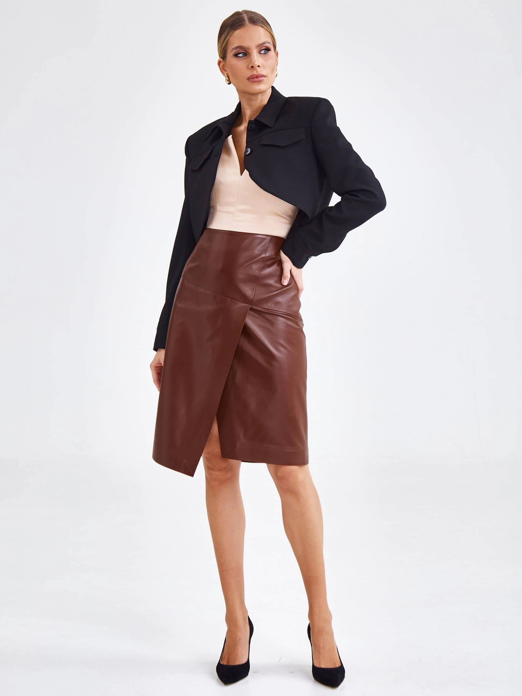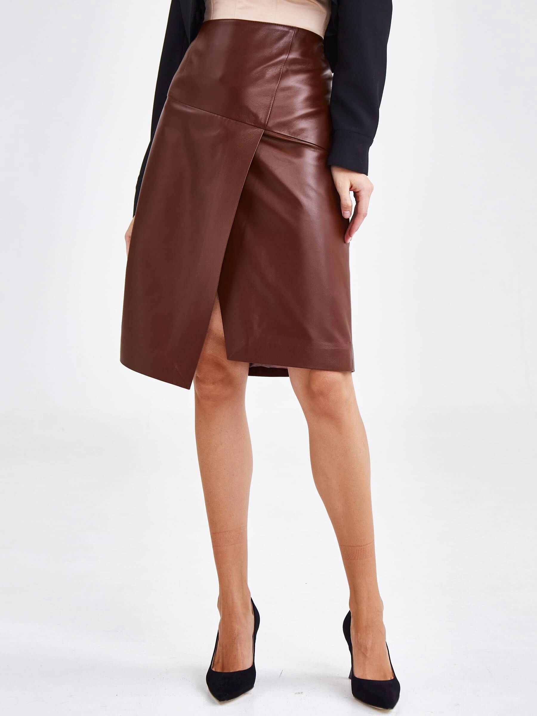 Юбка миди из натуральной кожи 15, табачная, размер 44, артикул 85890