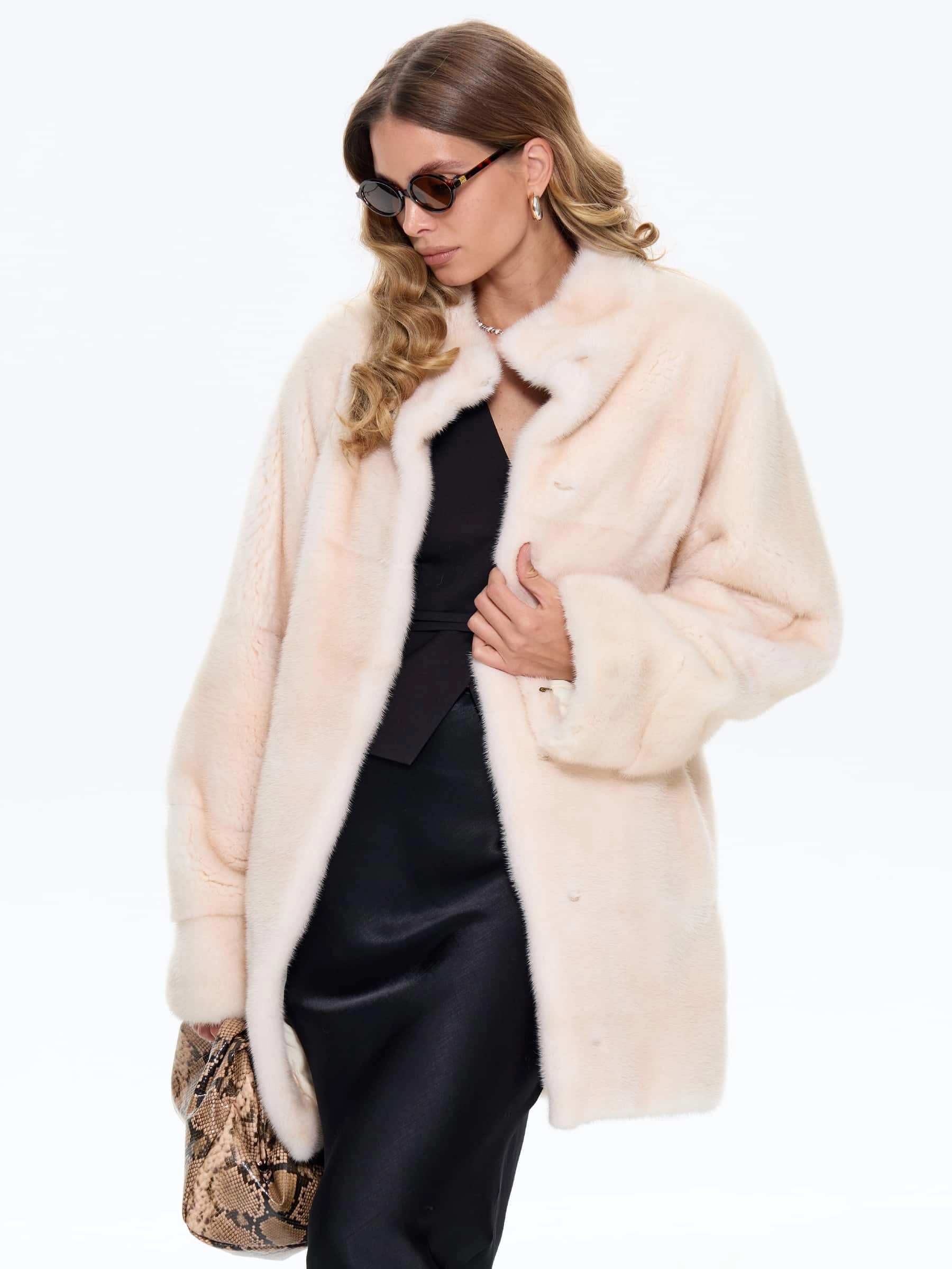 Товар женская поперечная норковая шуба braschi le88, бежевая, размер 40, артикул 34330 выполнен из норка с застежкой клипсы. Рассчитан на сезон: зима. Длина изделия 81 см, силуэт прямой.
