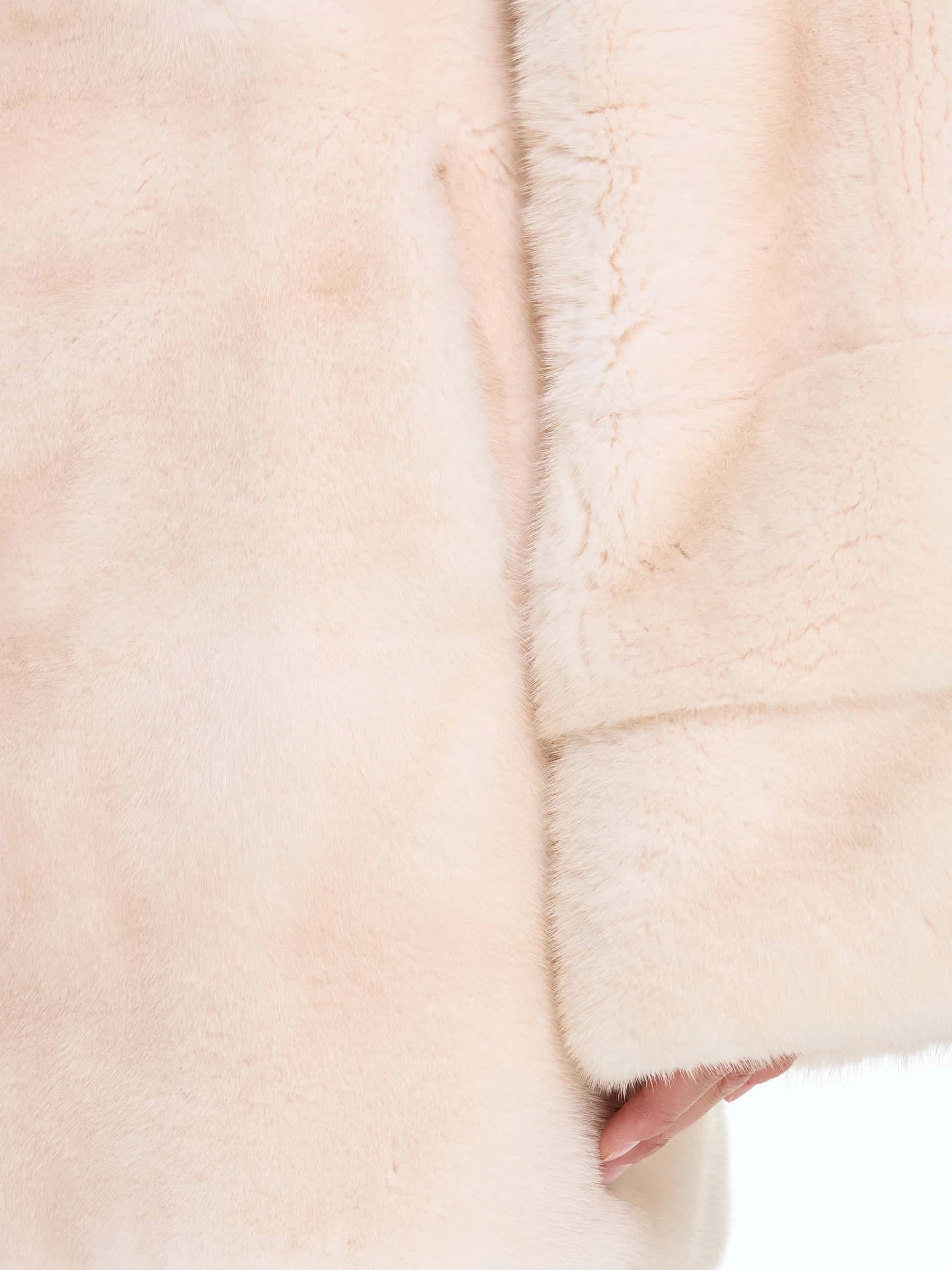Женская поперечная норковая шуба BRASCHI LE88, бежевая, размер 40, артикул 34330