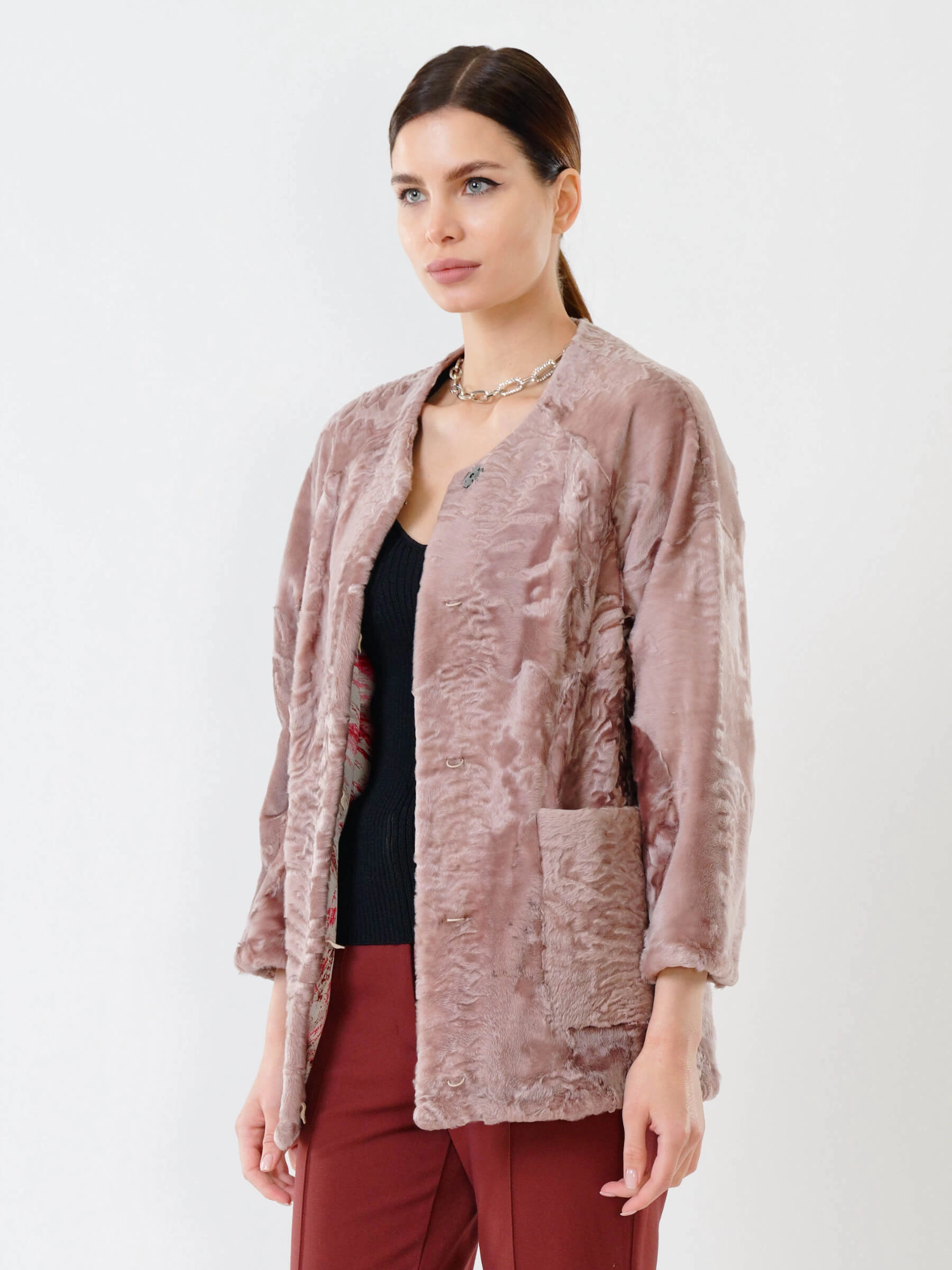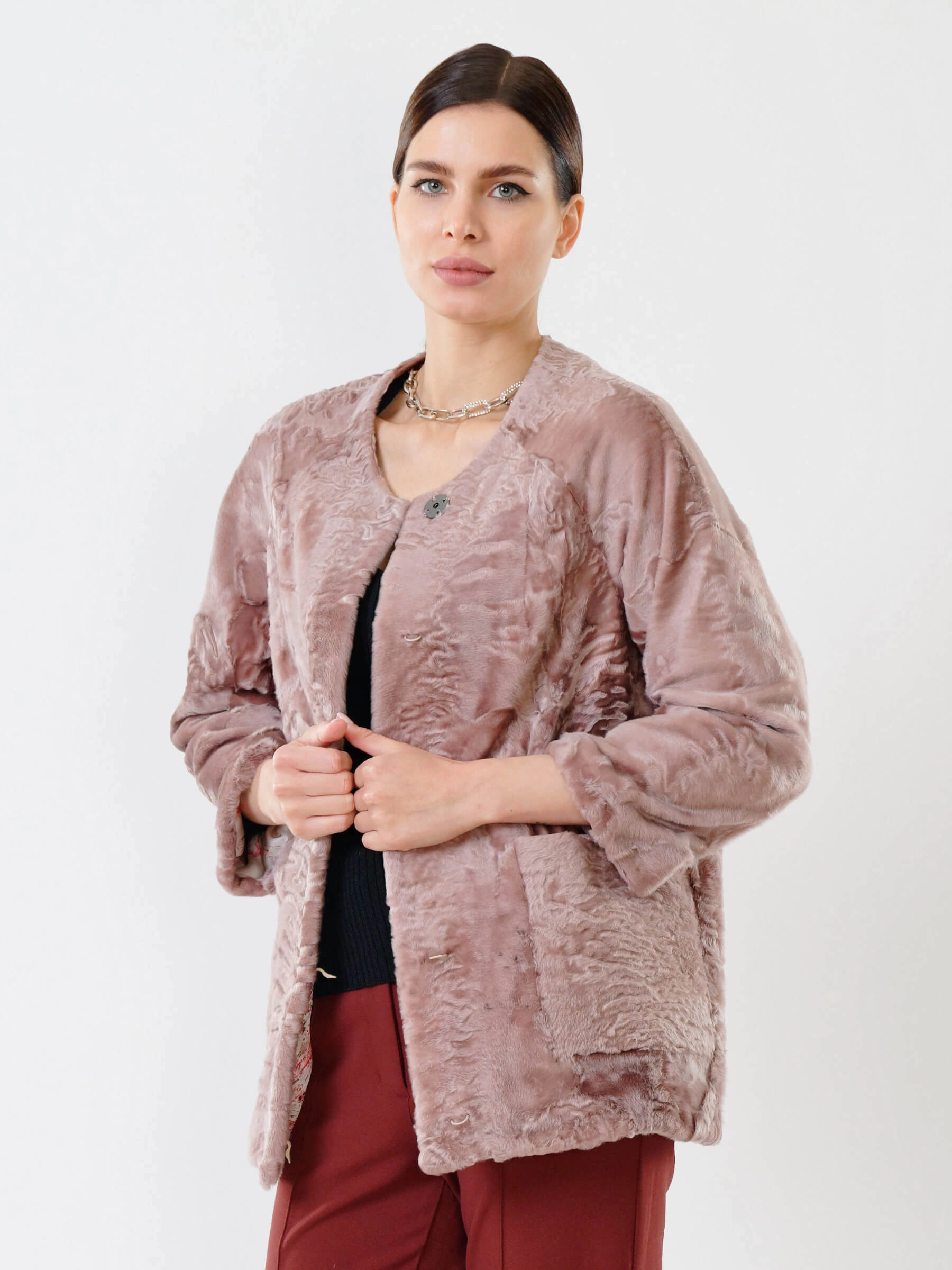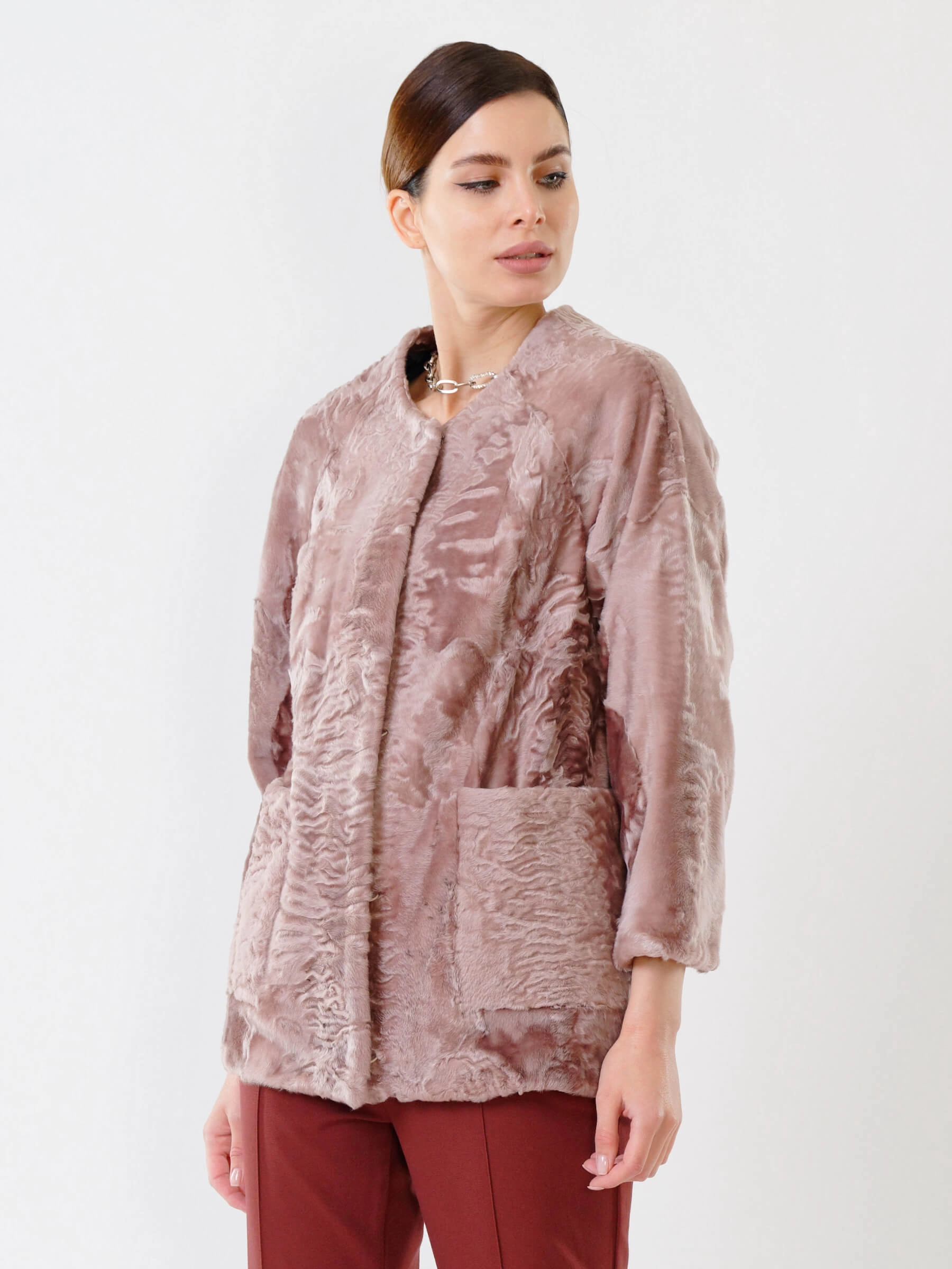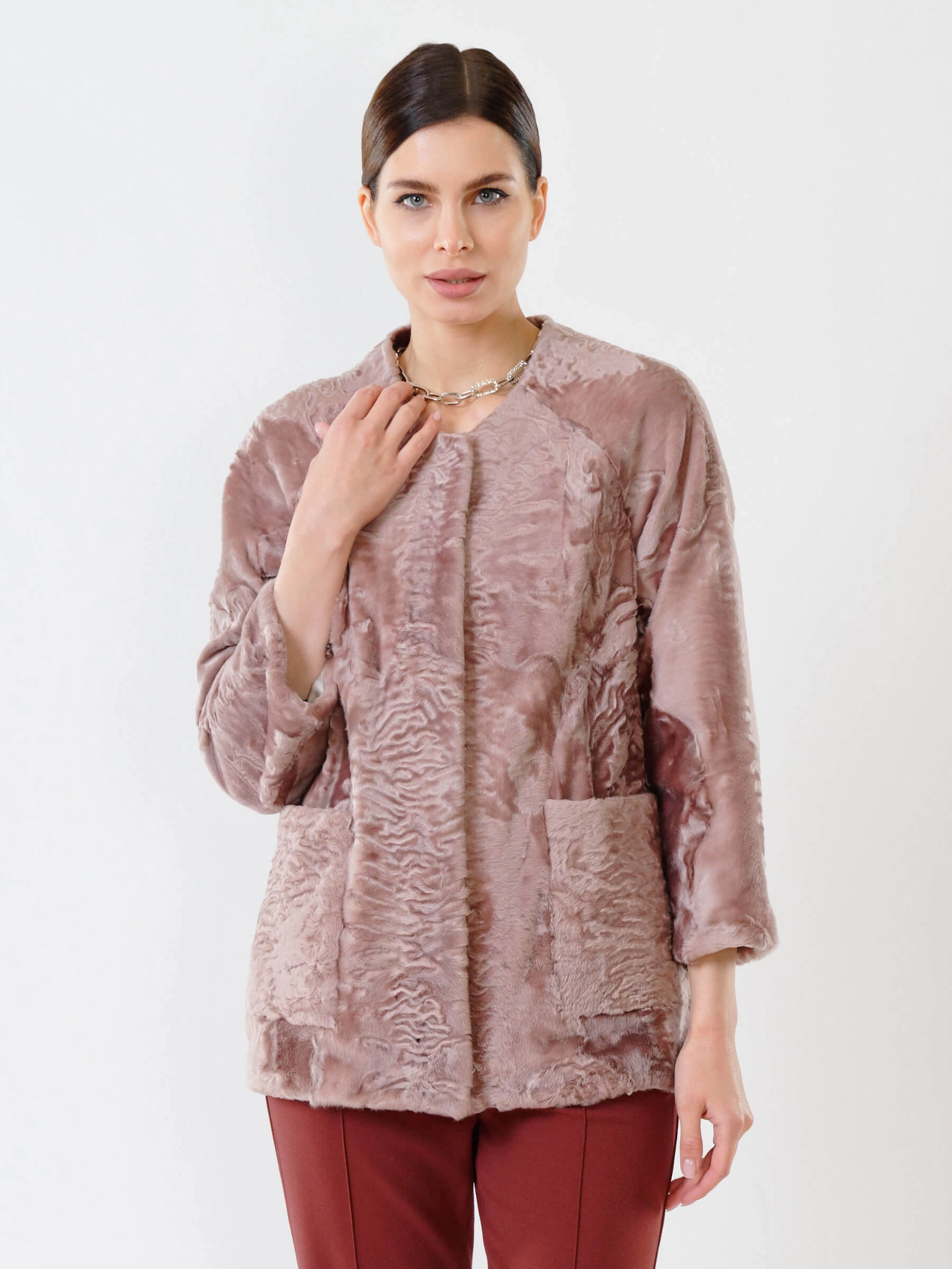 Куртка из каракуля женская 17309, розовая, размер 48, артикул 22530