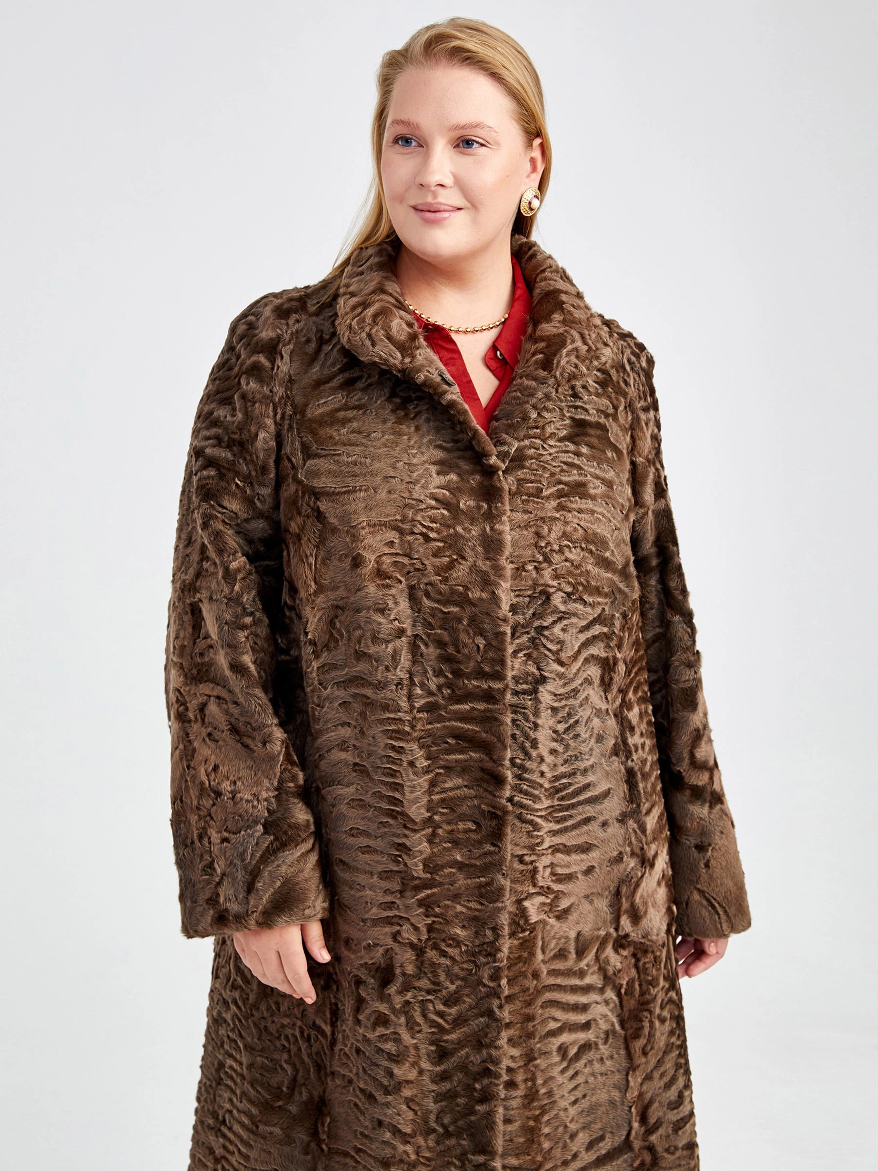 Шуба из меха каракуля женская Елизавета(в), коричневая, размер 56, артикул 22750