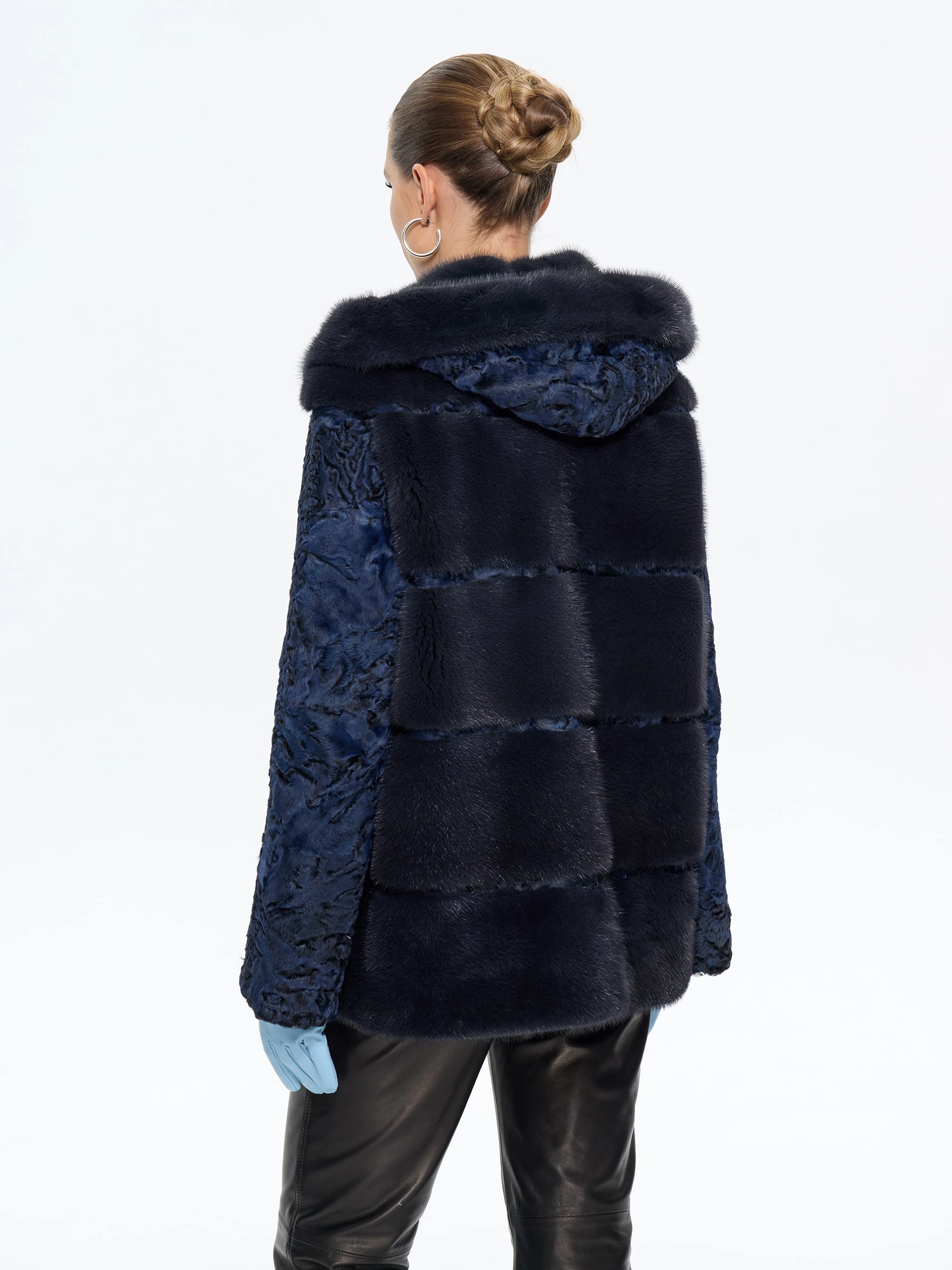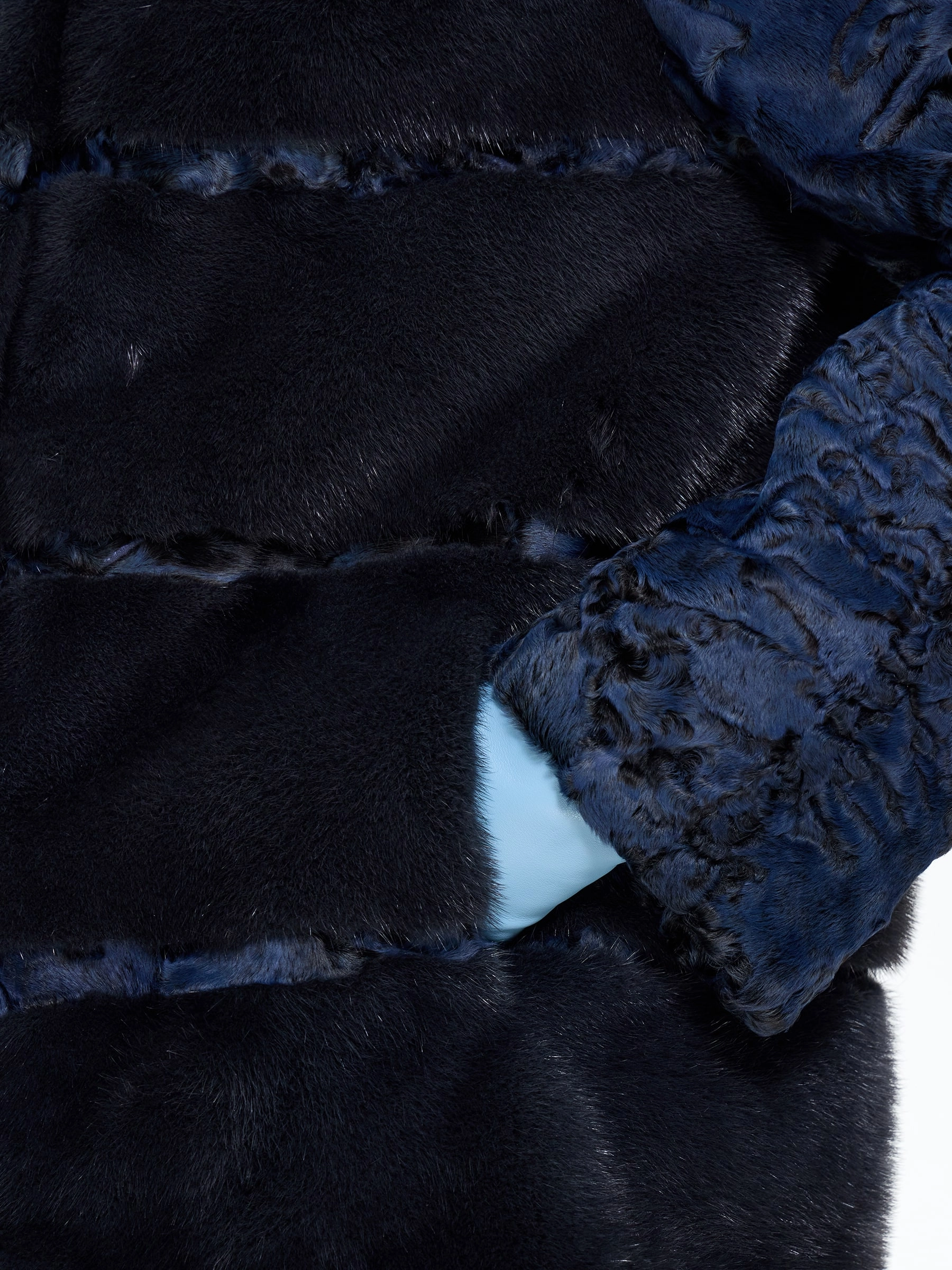 Элегантная шуба из меха каракульчи премиум-класса с элегантным капюшоном и отделкой из нежной норки. Классический прямой силуэт длиной 70 см создает утонченную элегантность, а практичный капюшон добавляет функциональности. Стилисты рекомендуют носить эту модель в насыщенном синем цвете с кожаными ботильонами и узкими джинсами для повседневного образа или с платьем-миди и сапогами-оверсайз для вечернего выхода. Идеальное сочетание неповторимого шарма, классических линий и современного комфорта.