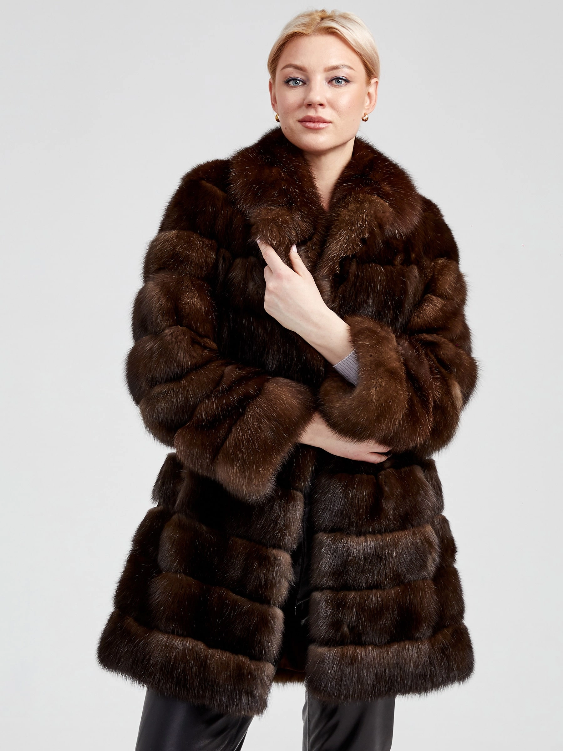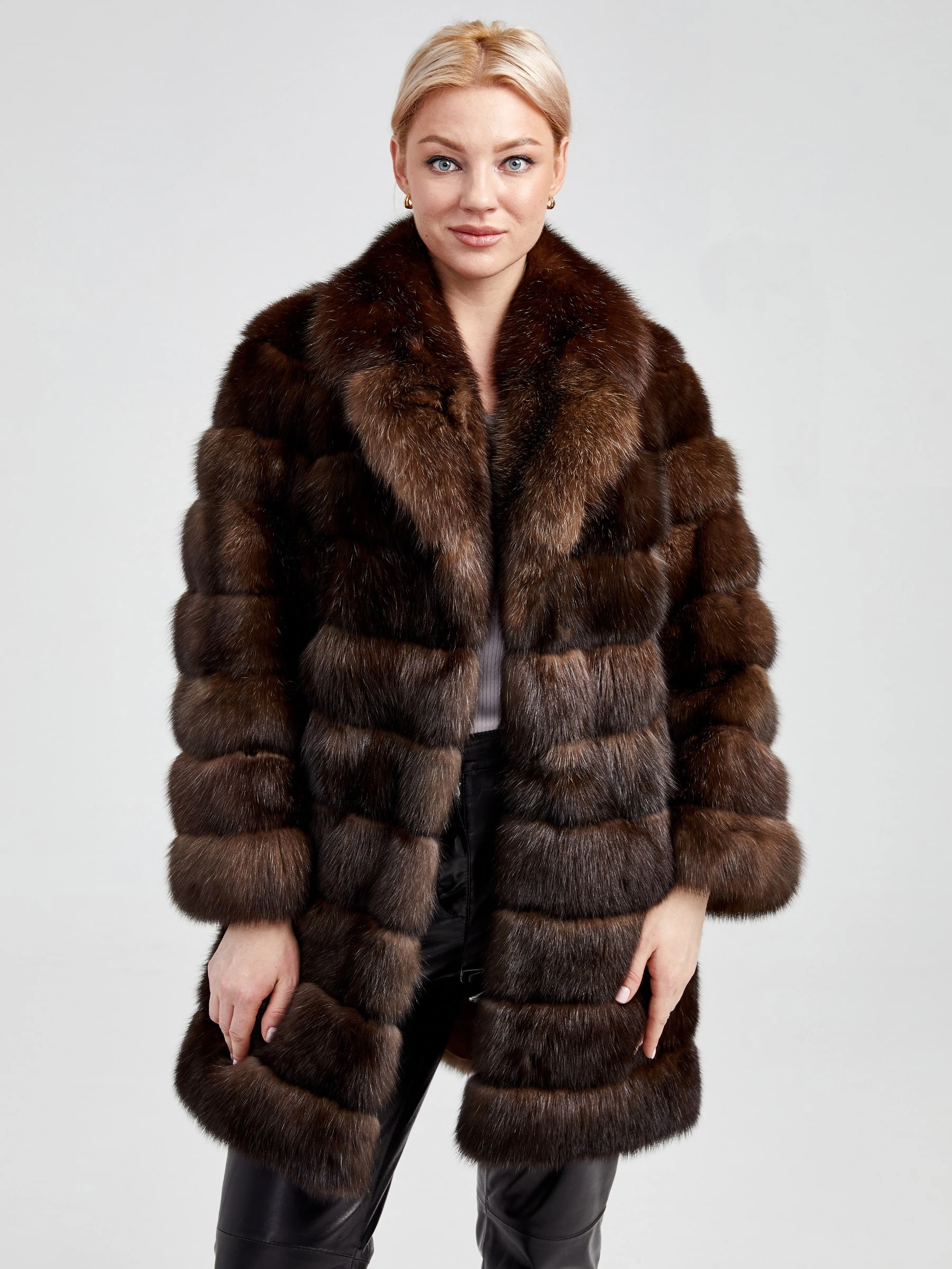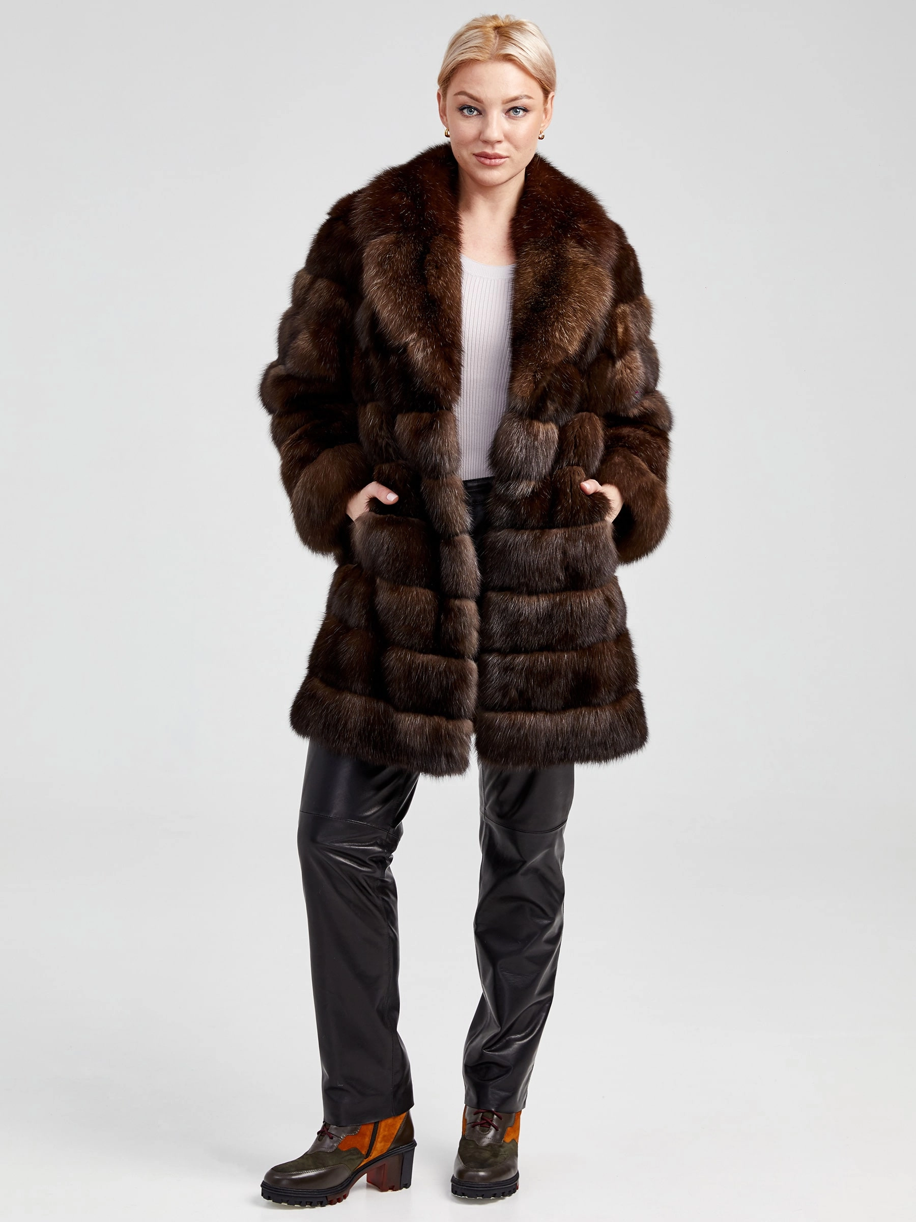 Женская шуба из меха соболя 2а(ав), коричневая, размер 44, артикул 19200