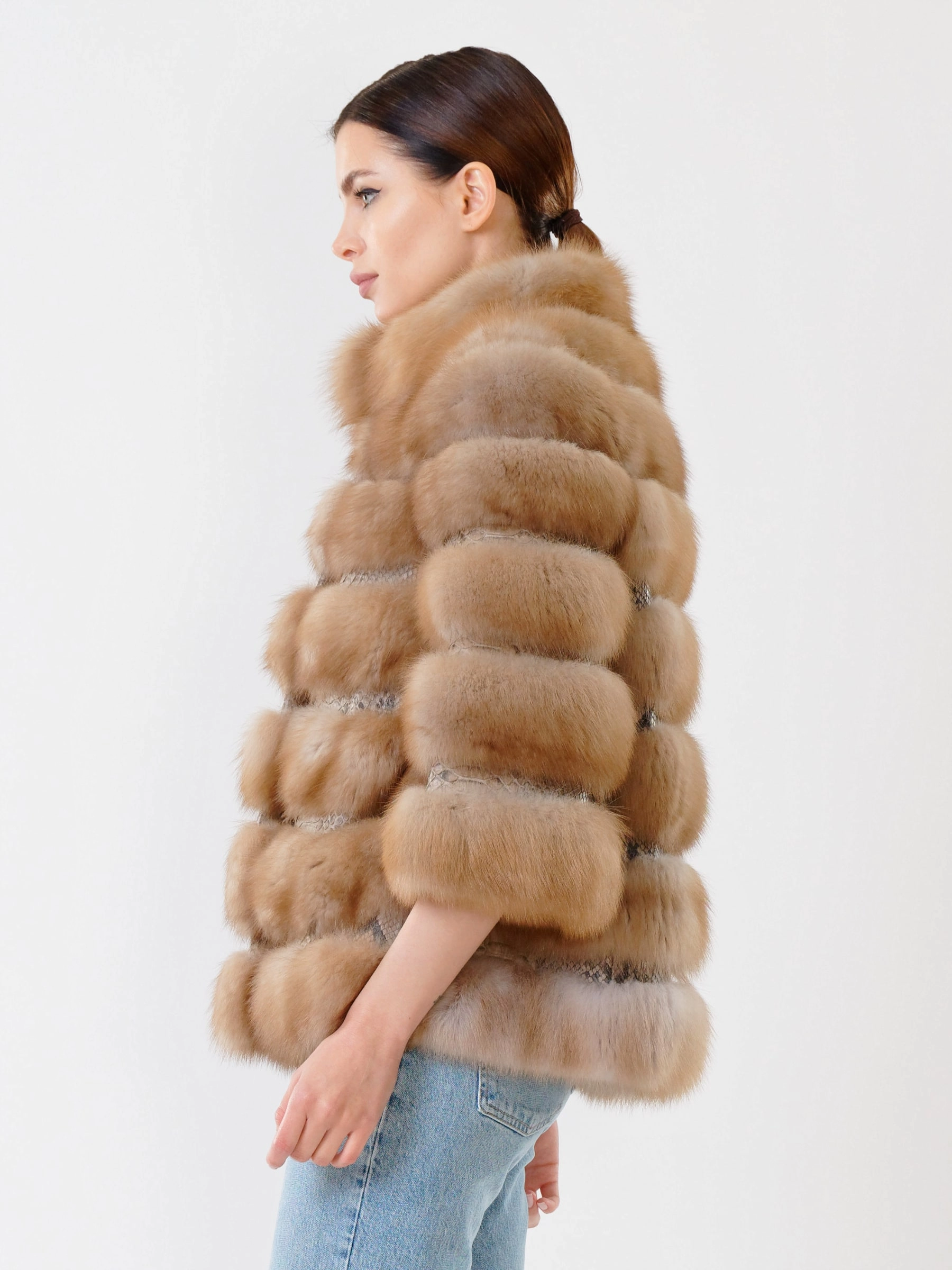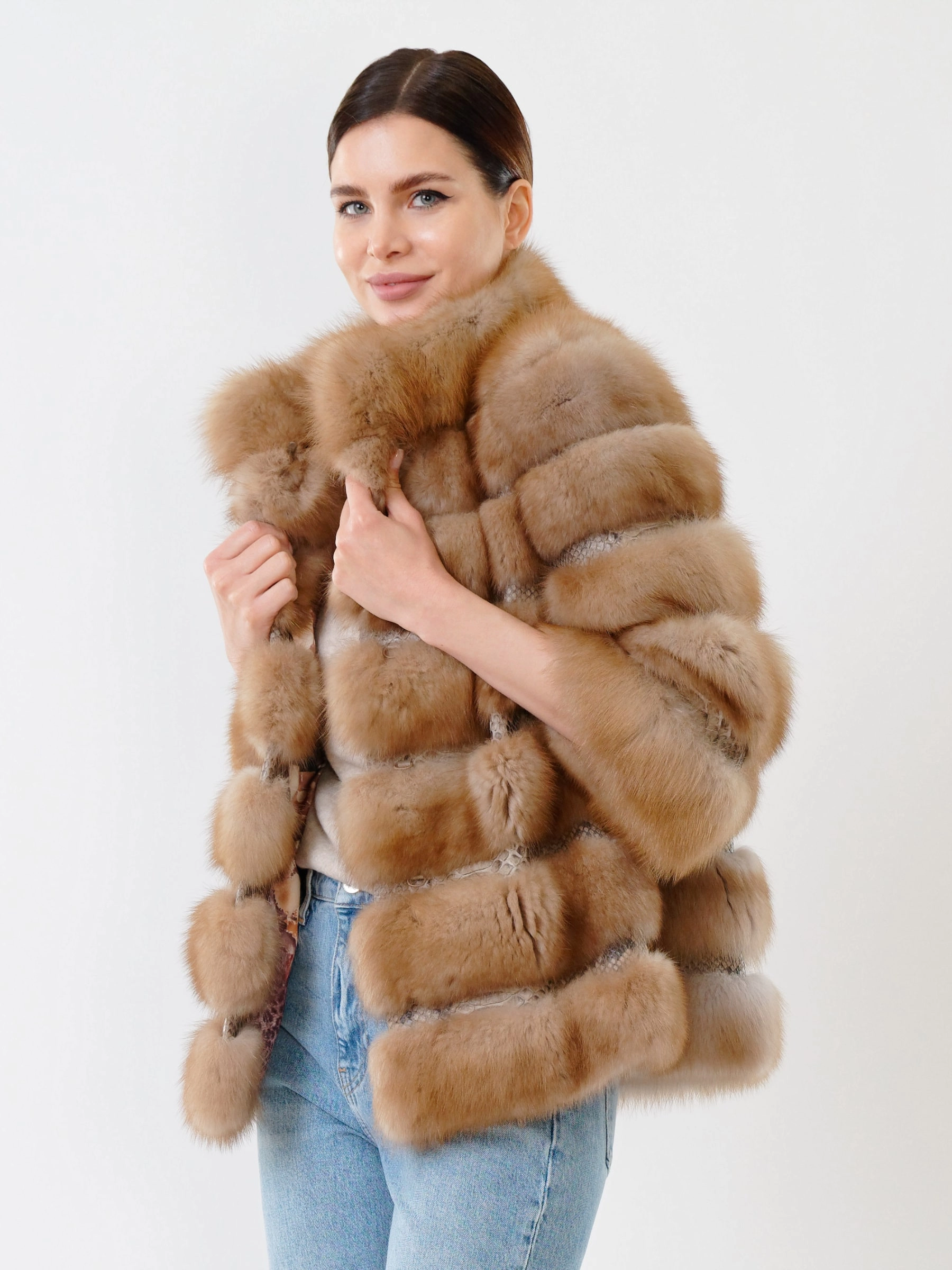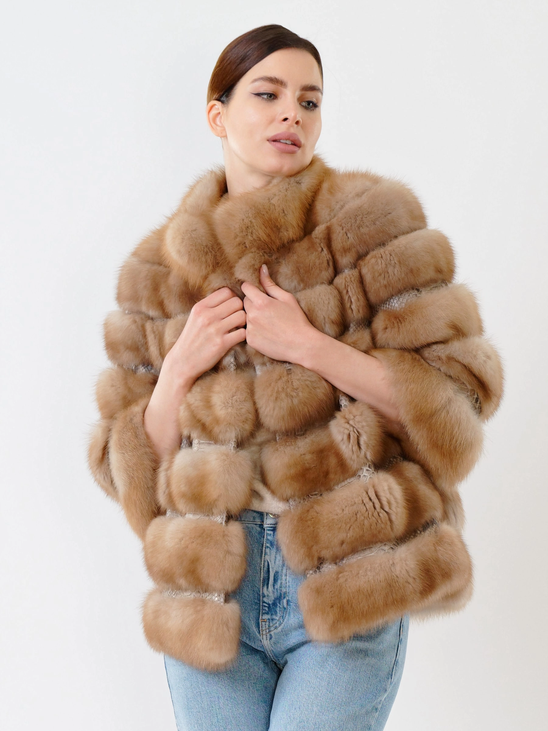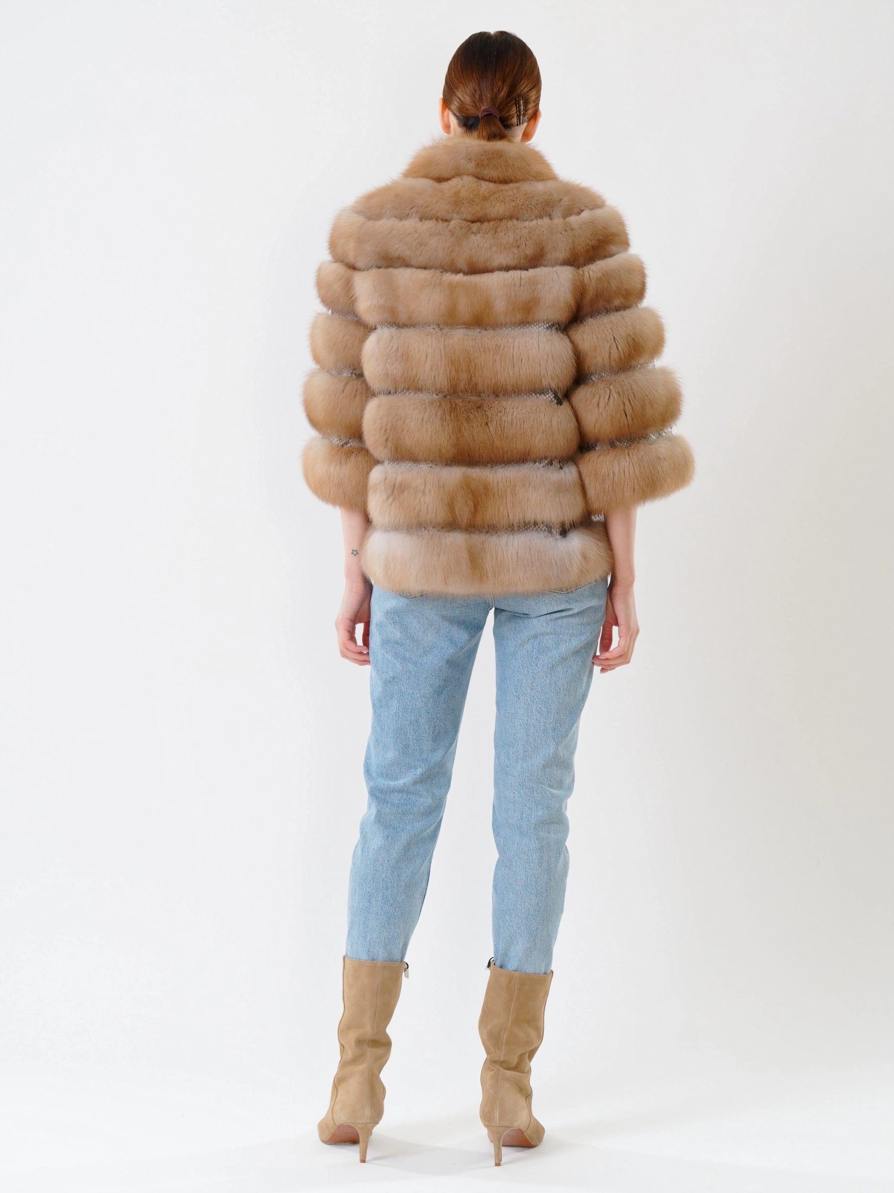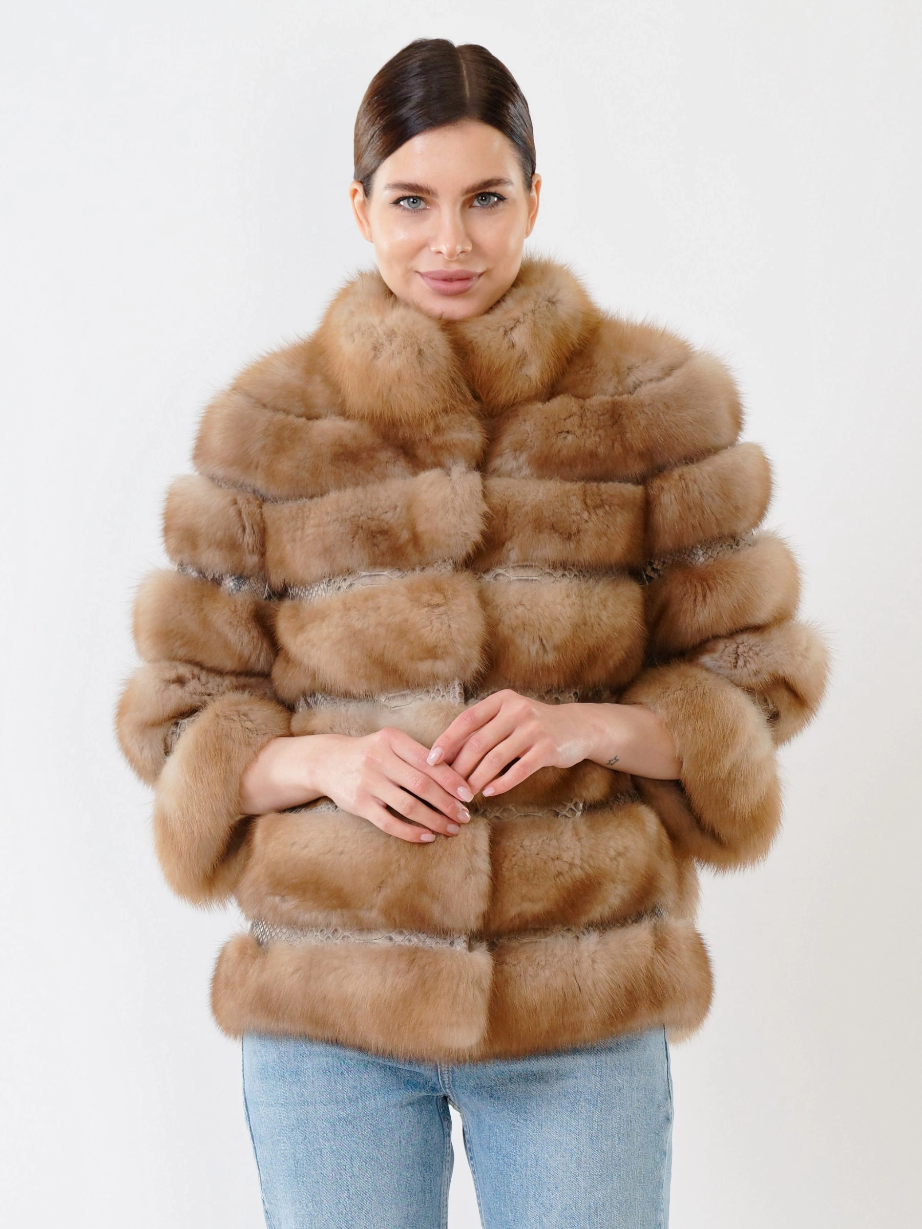 Женская шуба из меха куницы премиум класса 315, светло-коричневая, размер 44, артикул 19100