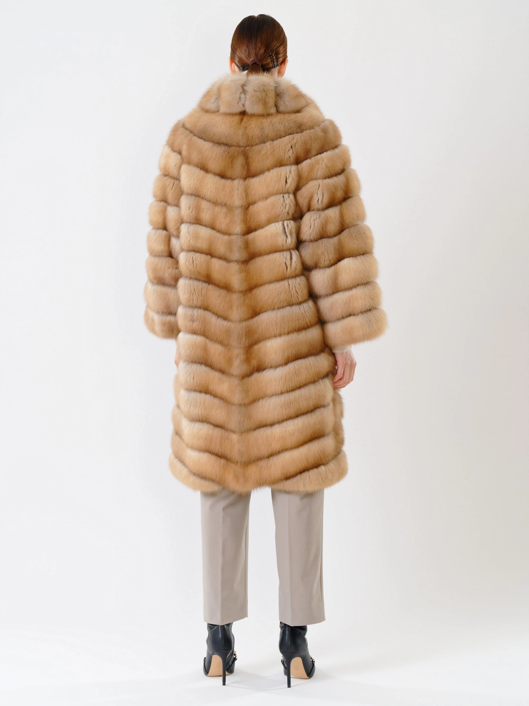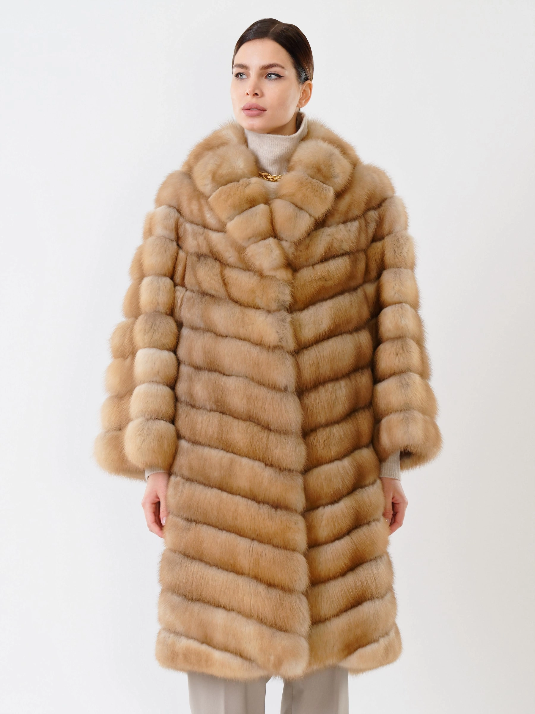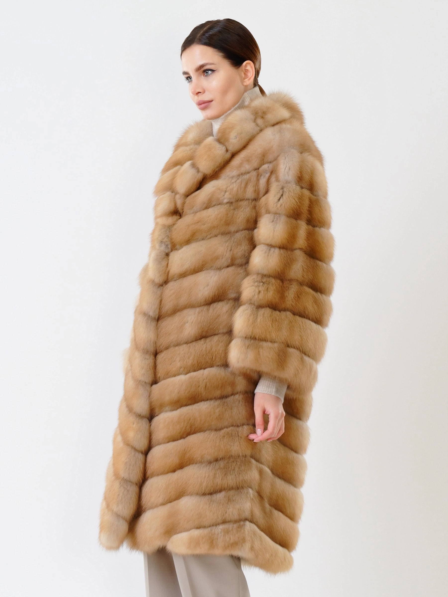Длинная женская шуба из меха куницы премиум класса 318, светло-коричневая, размер 48, артикул 19040