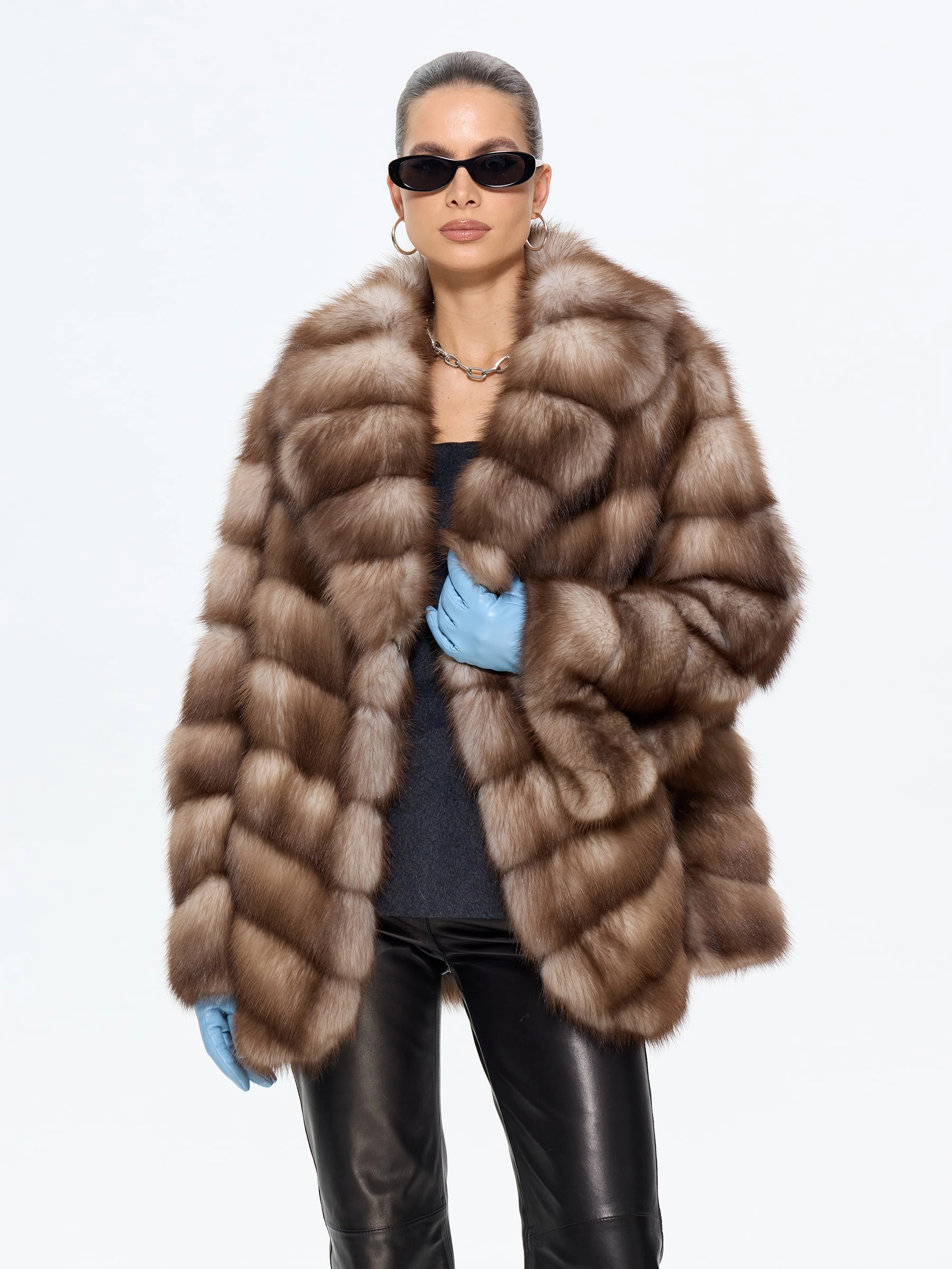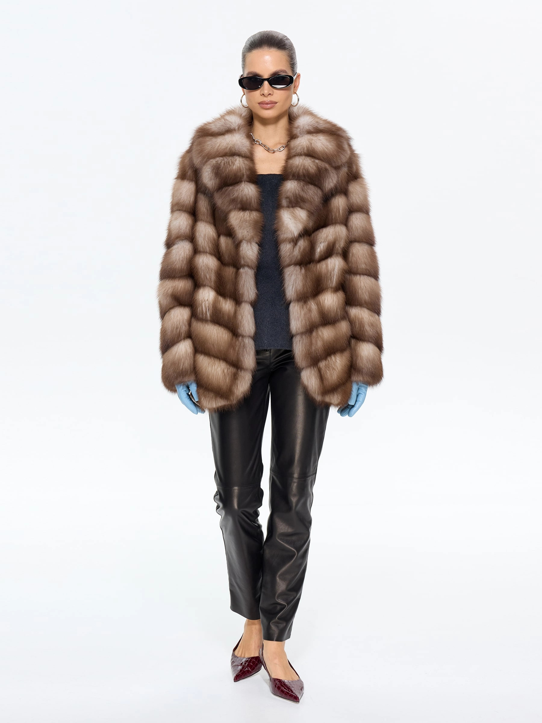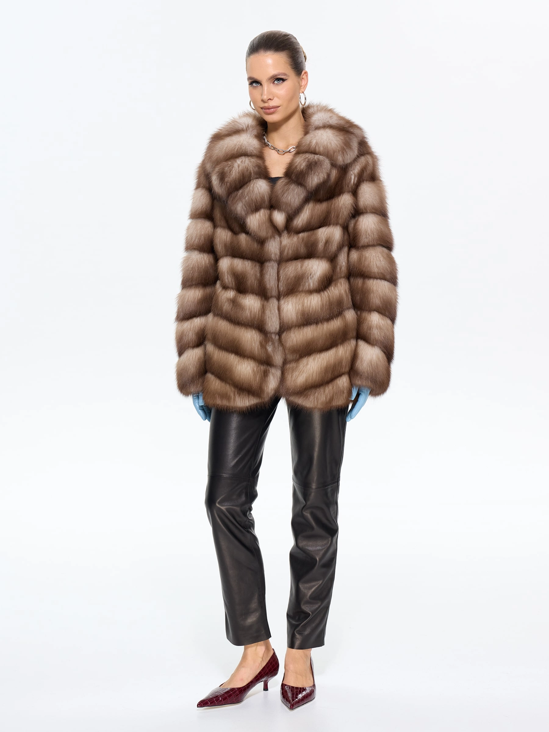 Элегантная шуба из меха куницы-каменки прямого силуэта длиной 70 см — это воплощение классического стиля и роскоши. Модель с изысканным английским воротником и втачными рукавами на удобных клипсах идеально сохраняет тепло и подчеркивает достоинства фигуры. Стилисты рекомендуют носить эту шубу из меха куницы с воротником, повязавшим шею шелковым платком, с кожаными перчатками и классическими сапогами-челси для безупречного городского образа.