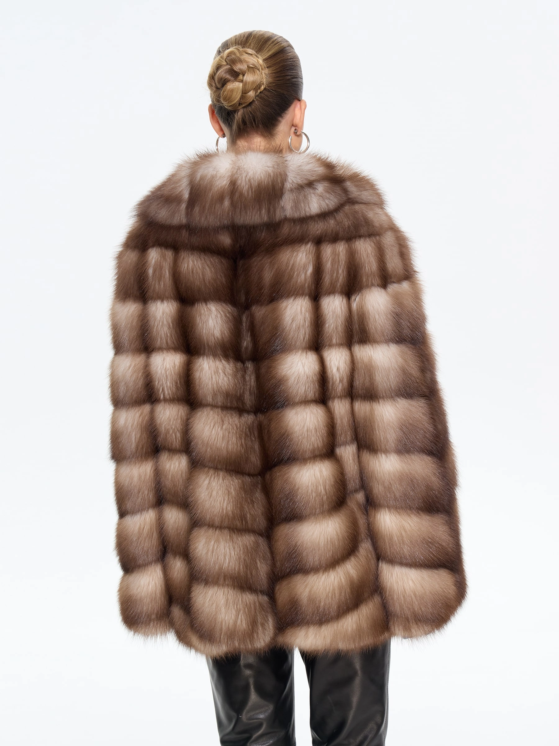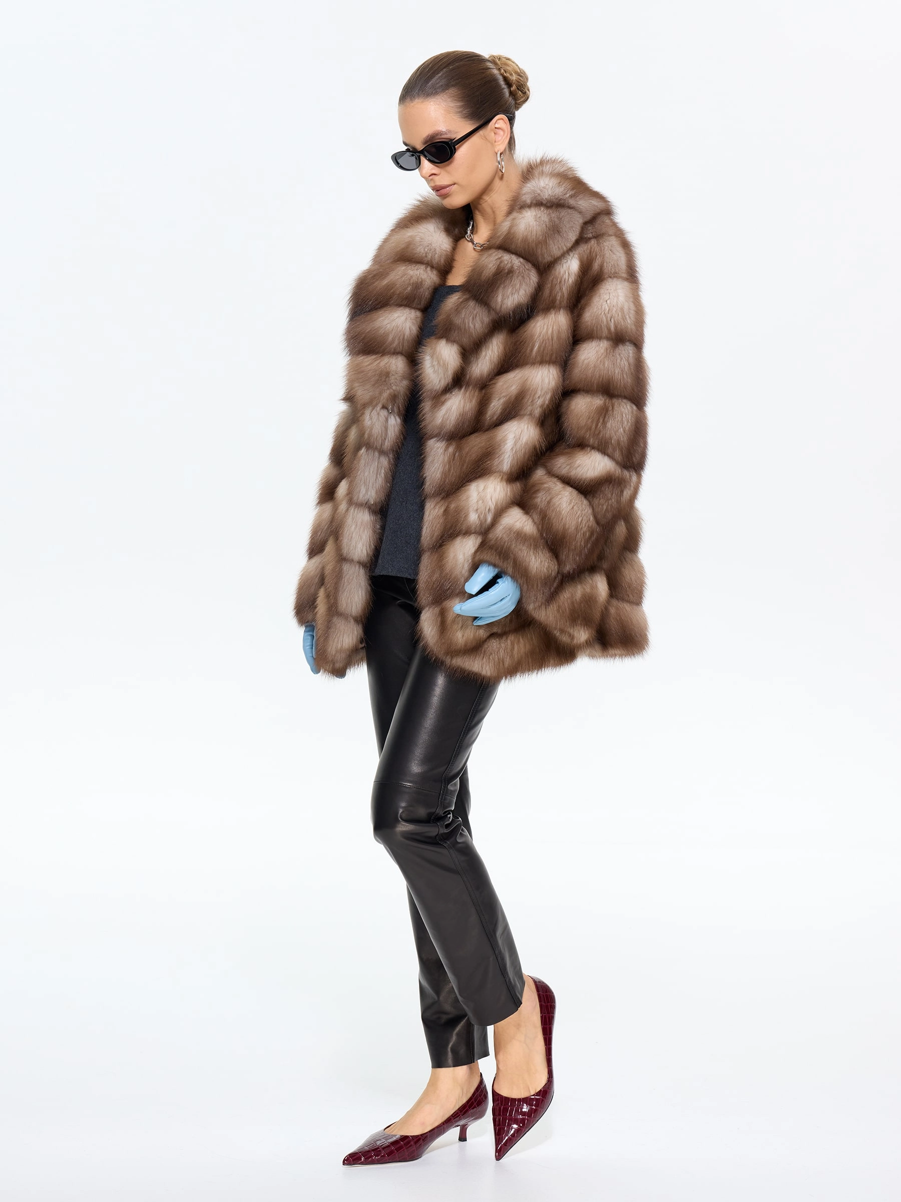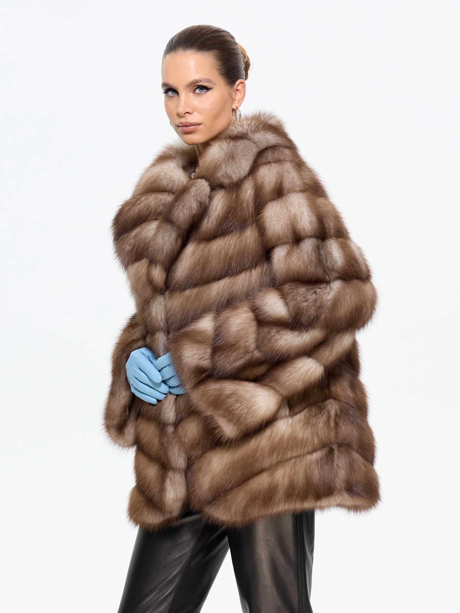 Элегантная шуба из меха куницы-каменки прямого силуэта длиной 70 см — это воплощение классического стиля и роскоши. Модель с изысканным английским воротником и втачными рукавами на удобных клипсах идеально сохраняет тепло и подчеркивает достоинства фигуры. Стилисты рекомендуют носить эту шубу из меха куницы с воротником, повязавшим шею шелковым платком, с кожаными перчатками и классическими сапогами-челси для безупречного городского образа.