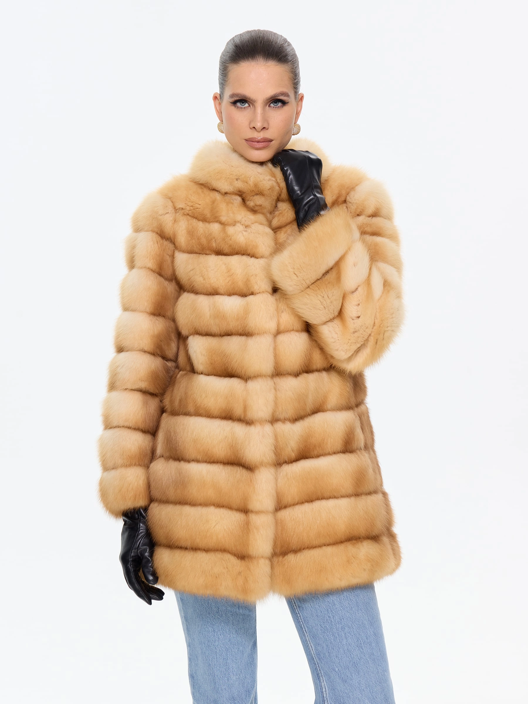 Элегантная шуба из меха куницы премиум-класса прямого силуэта, длиной 75 см, с изысканным воротником-стойкой и втачными рукавами на удобных клипсах. Эта модель станет жемчужиной вашего гардероба, даря ощущение роскоши и утонченного стиля. Стилисты рекомендуют носить эту шубу из меха куницы с воротником-стойкой в паре с кожаными леггинсами и сапогами-ботфортами для безупречного образа, а для вечернего выхода дополнить ее платьем-миди и лакированными лодочками.