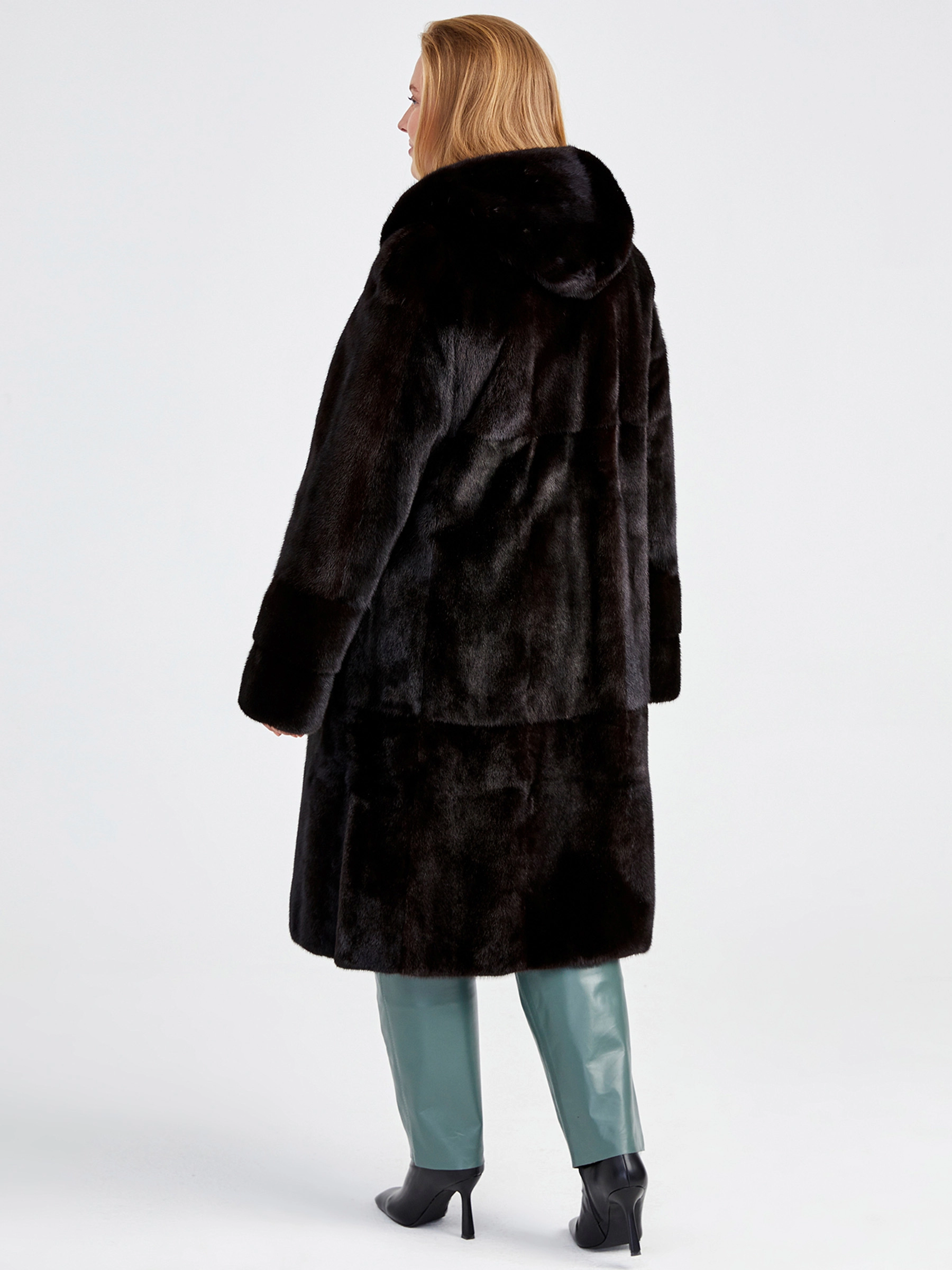 Удлиненная женская норковая шуба с капюшоном Мишель(к), черная, размер 52, артикул 32920